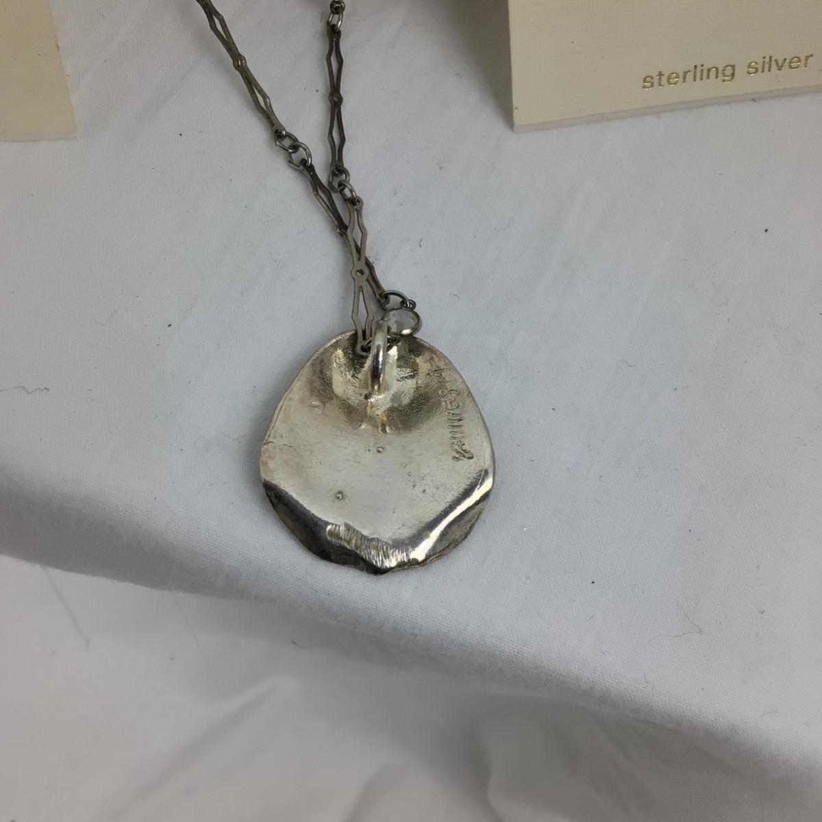 Necklace is 18” long and has a signed silver pendant, both pairs of sterling earrings are pierced