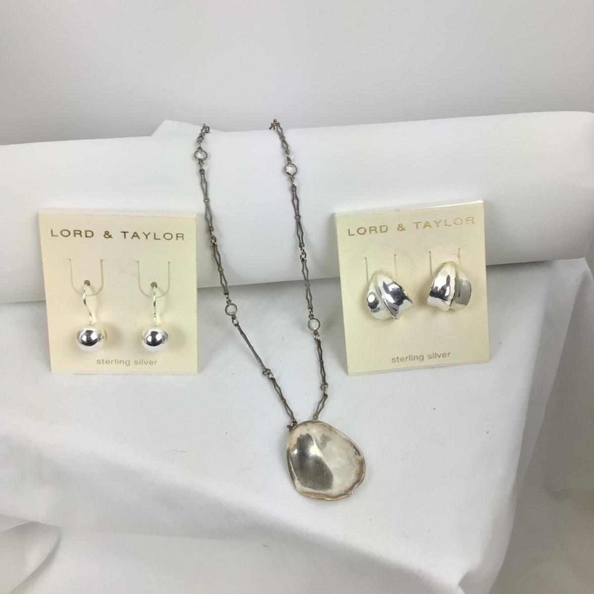 1139 Sterling Silver Pierced Lord & Taylor Earrings with Necklace