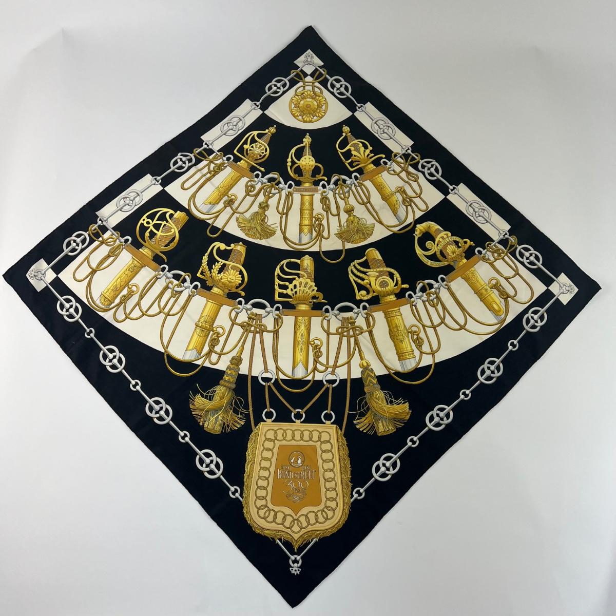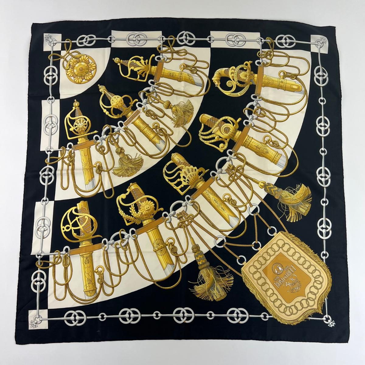 114 Authentic HERMÉS Carre 90 Silk Scarf Cliquetis by Julia Abadie Original Release Black & Gold Special Edition 1972