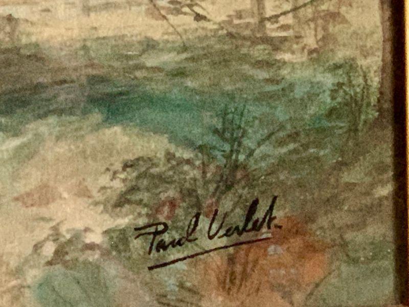 #114 ANTIQUE FRAMED WATERCOLOR SIGNED PAUL VERLET COUNTRY ROAD
