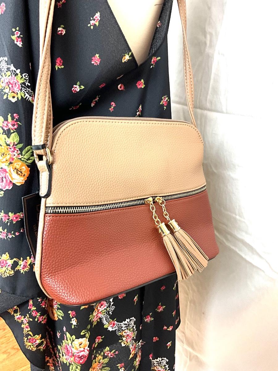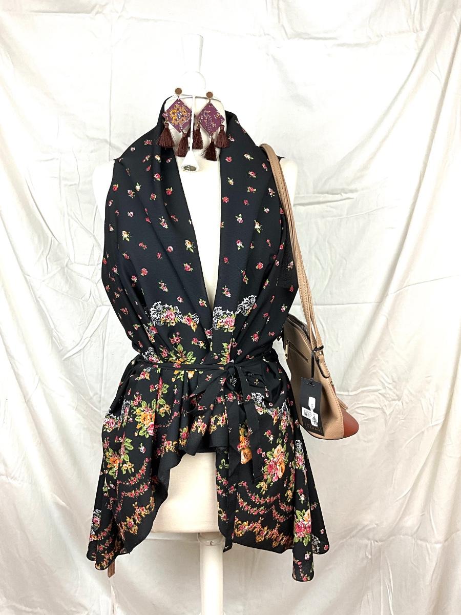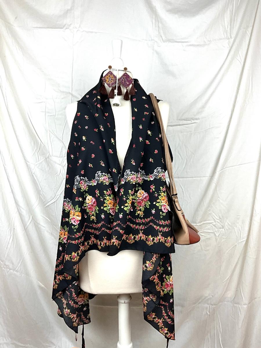 114 BOHO Floral Shawl/ Wrap Coverup with Fringe Earrings, Tan Vegan Purse