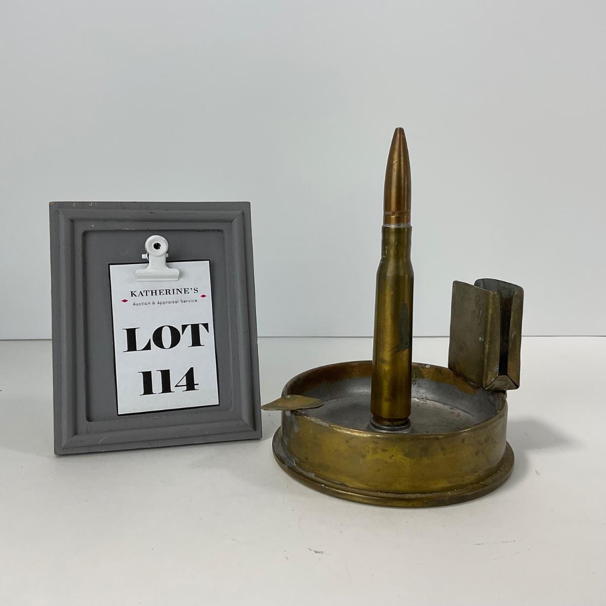 One vintage World War 2 trench art ash tray. Please see photos for details and condition. ::: Shipping is available on this lot. If you require shipping you must let us know at the close of the auction. We will coordinate with you after the item has been won. Shipping fees will include insurance up to or exceeding the value of all items being mailed. If you have any questions regarding this lot please contact the auctioneer either via this website, by direct email or by phone. PICK UP TIMES and other important information can be found in the TERMS and DESCRIPTION of the auction. Please take a look for pertinent information. Thanks!