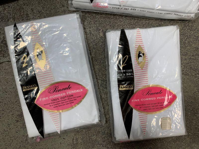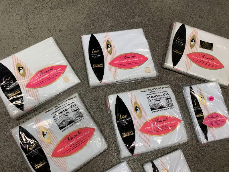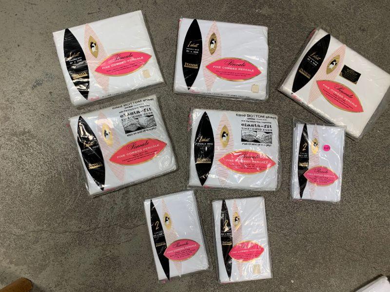 6 pillowcases, 2 fitted bottom & 3 top sheets.