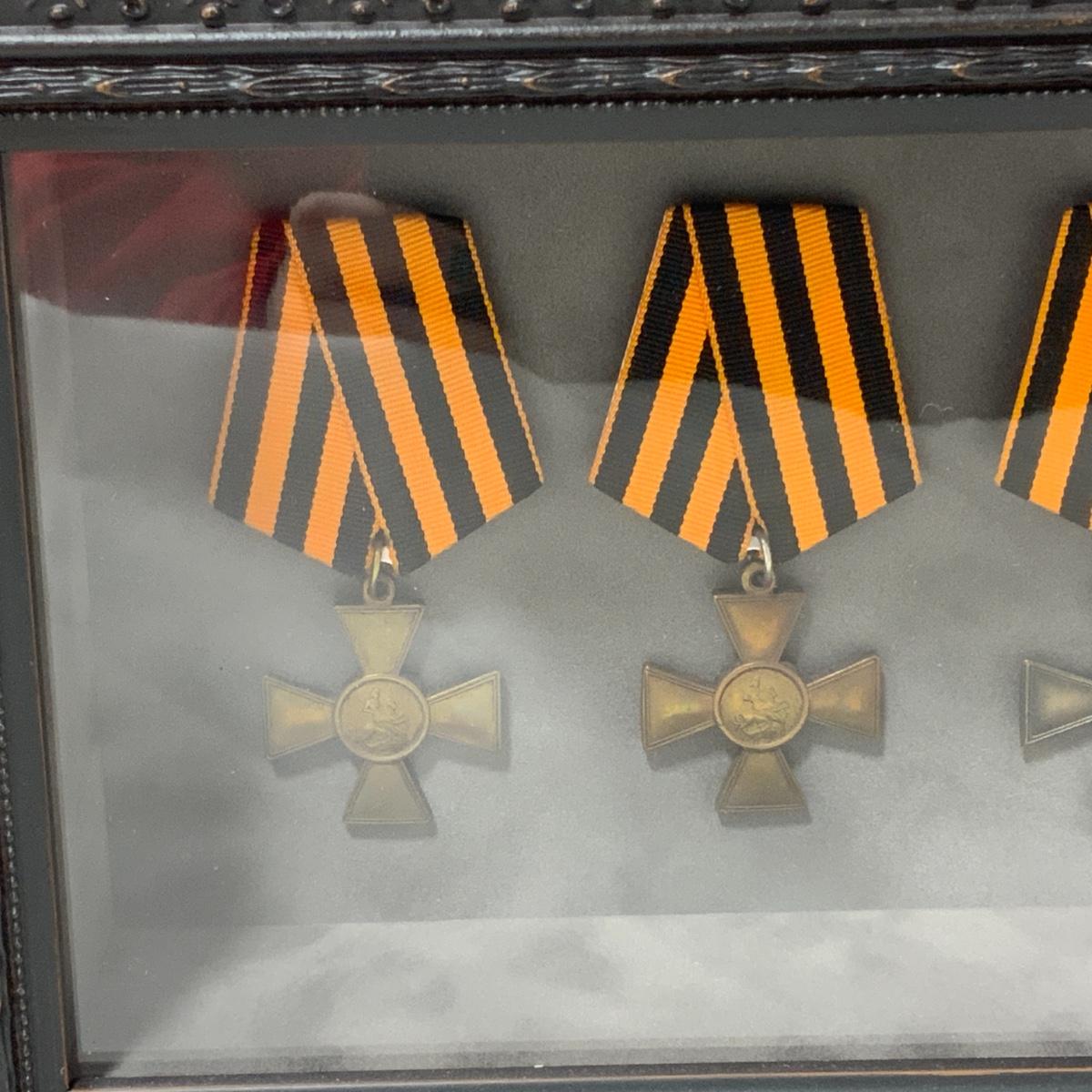 From the Estate of Peter and Alice Radovanovich: Four Elegantly Framed St George Cross Medals. The medals are awarded for “undaunted courage”. The medals are assumed to be reproductions, please use your best judgement. Framed behind conservation glass by a reputable local frame shop. Please see photos for details and condition. ::: Shipping is available on this lot. If you require shipping you must let us know at the close of the auction. We will coordinate with you after the item has been won. Shipping fees will include insurance up to or exceeding the value of all items being mailed. If you have any questions regarding this lot please contact the auctioneer either via this website, by direct email or by phone. PICK UP TIMES and other important information can be found in the TERMS and DESCRIPTION of the auction. Please take a look for pertinent information. Thanks!