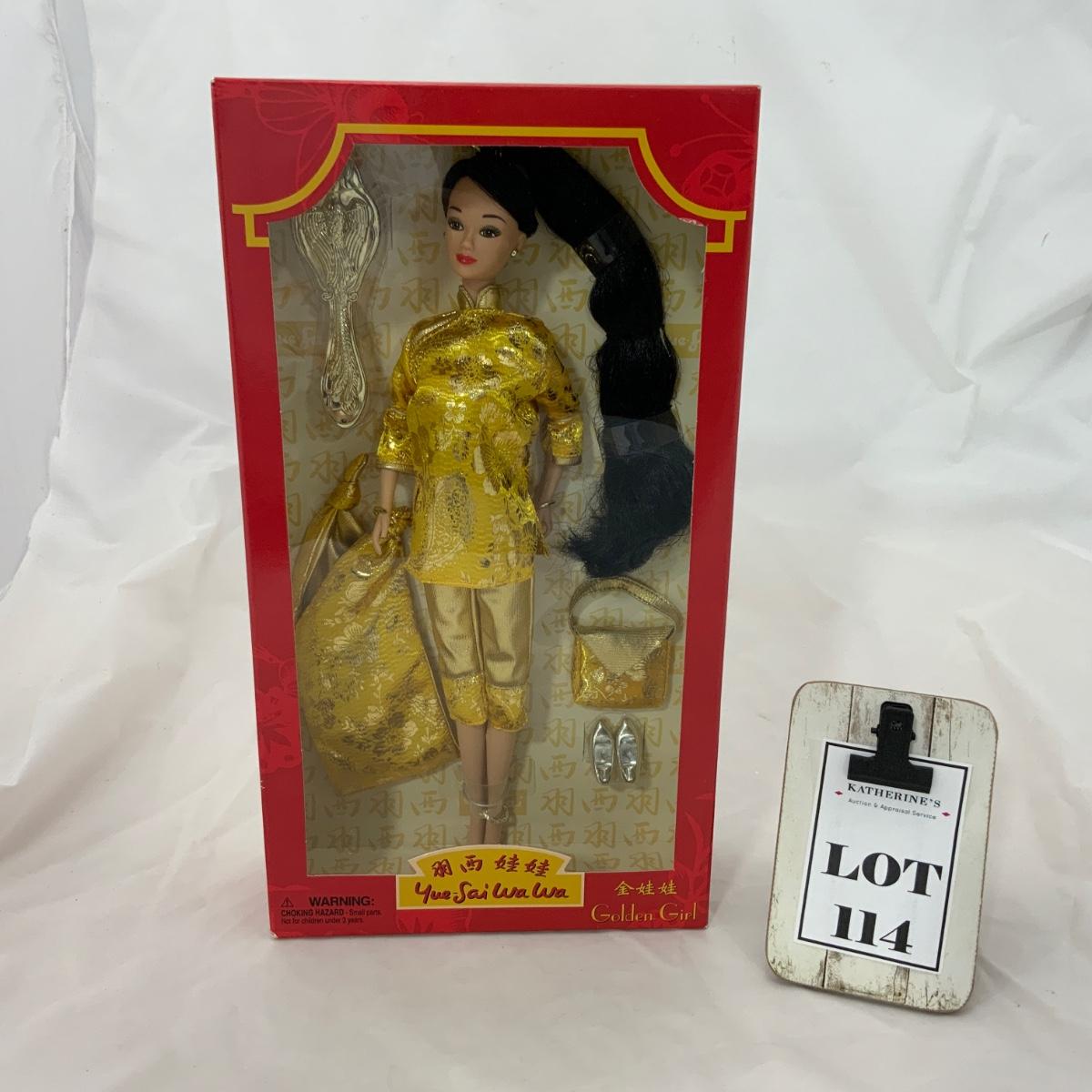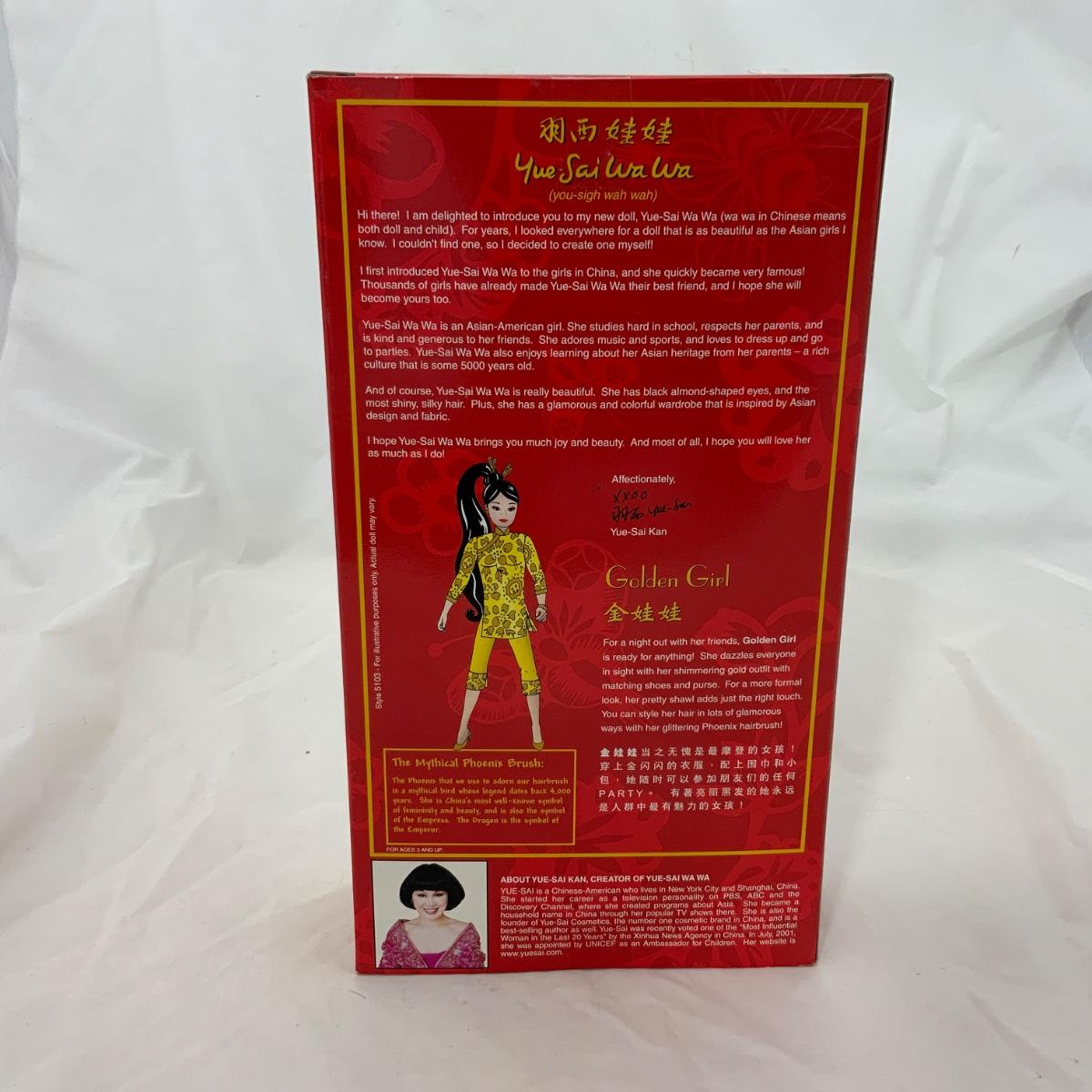 Golden Girl Yue-Sai Wa Wa Doll, produced in 2001. Yue-Sai is a Chinese American who, in addition to being a television personality and best-selling author was appointed by UNICEF as an Ambassador for Children. She created these dolls for other Chinese-Americans to connect to - so that they could see themselves on the shelves of stores like all the other girls. Doll is new, in Box. Please see photos for details and condition. !!! Proceeds from this auction will be donated to the NEW COMMUNITY SHELTER in Green Bay, Wisconsin. Please see Sale Description to the Left for more information. !!! ::: Shipping is available on this lot. If you require shipping you must let us know at the close of the auction. We will coordinate with you after the item has been won. Shipping fees will include insurance up to or exceeding the value of all items being mailed. If you have any questions regarding this lot please contact the auctioneer either via this website, by direct email or by phone. PICK UP TIMES and other important information can be found in the TERMS and DESCRIPTION of the auction. Please take a look for pertinent information. Thanks!