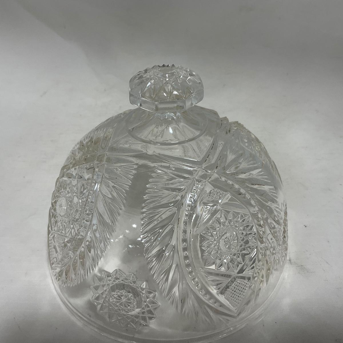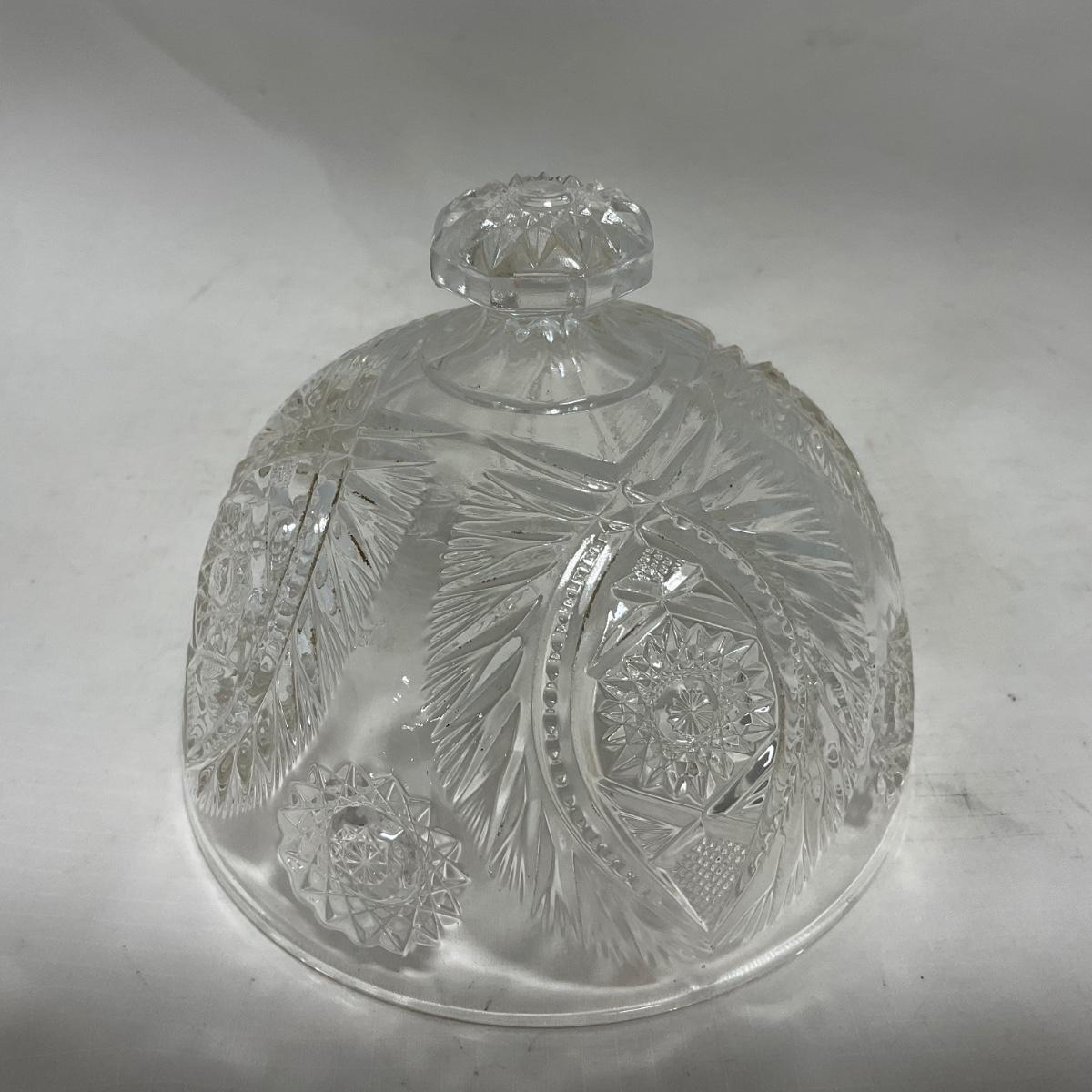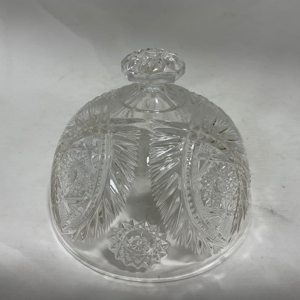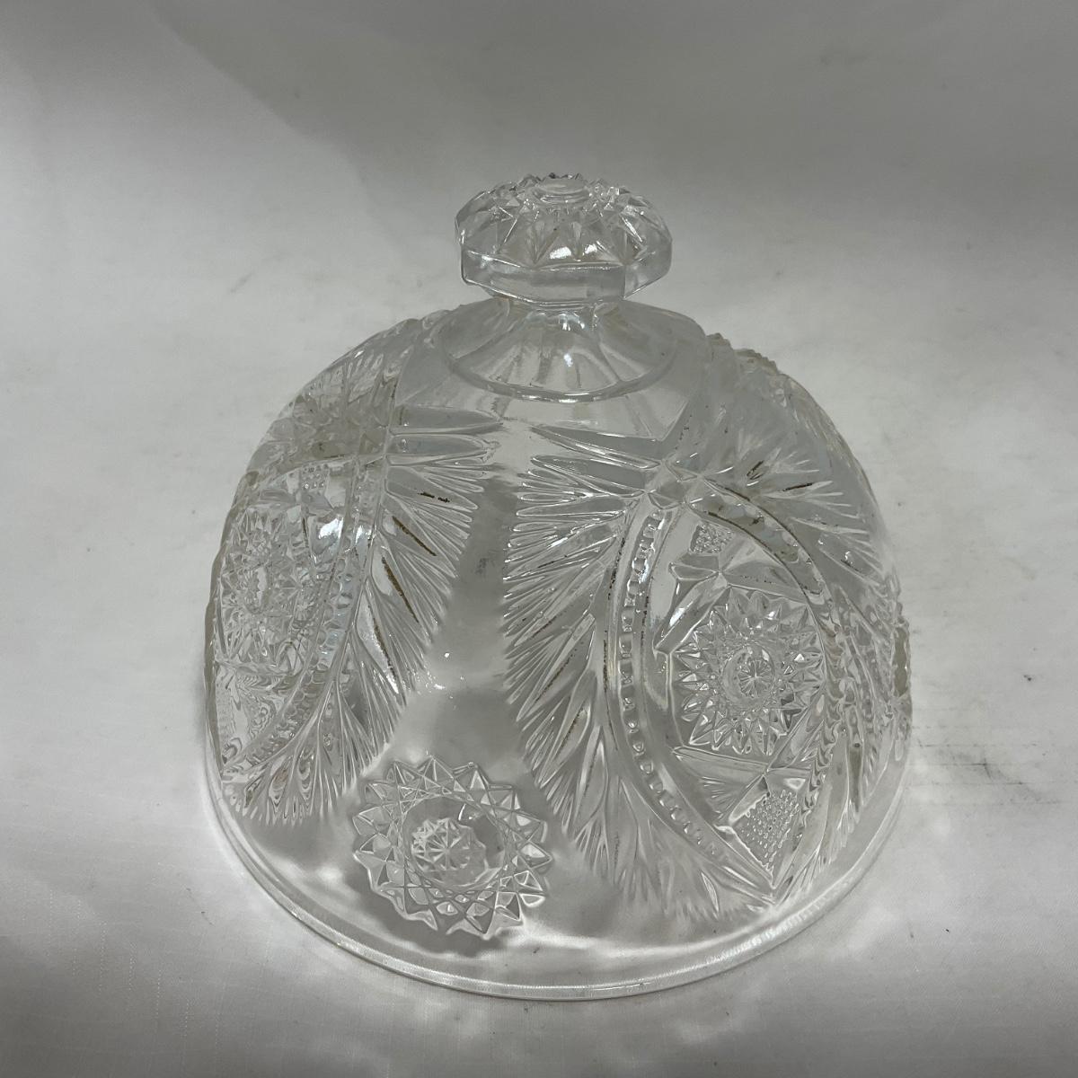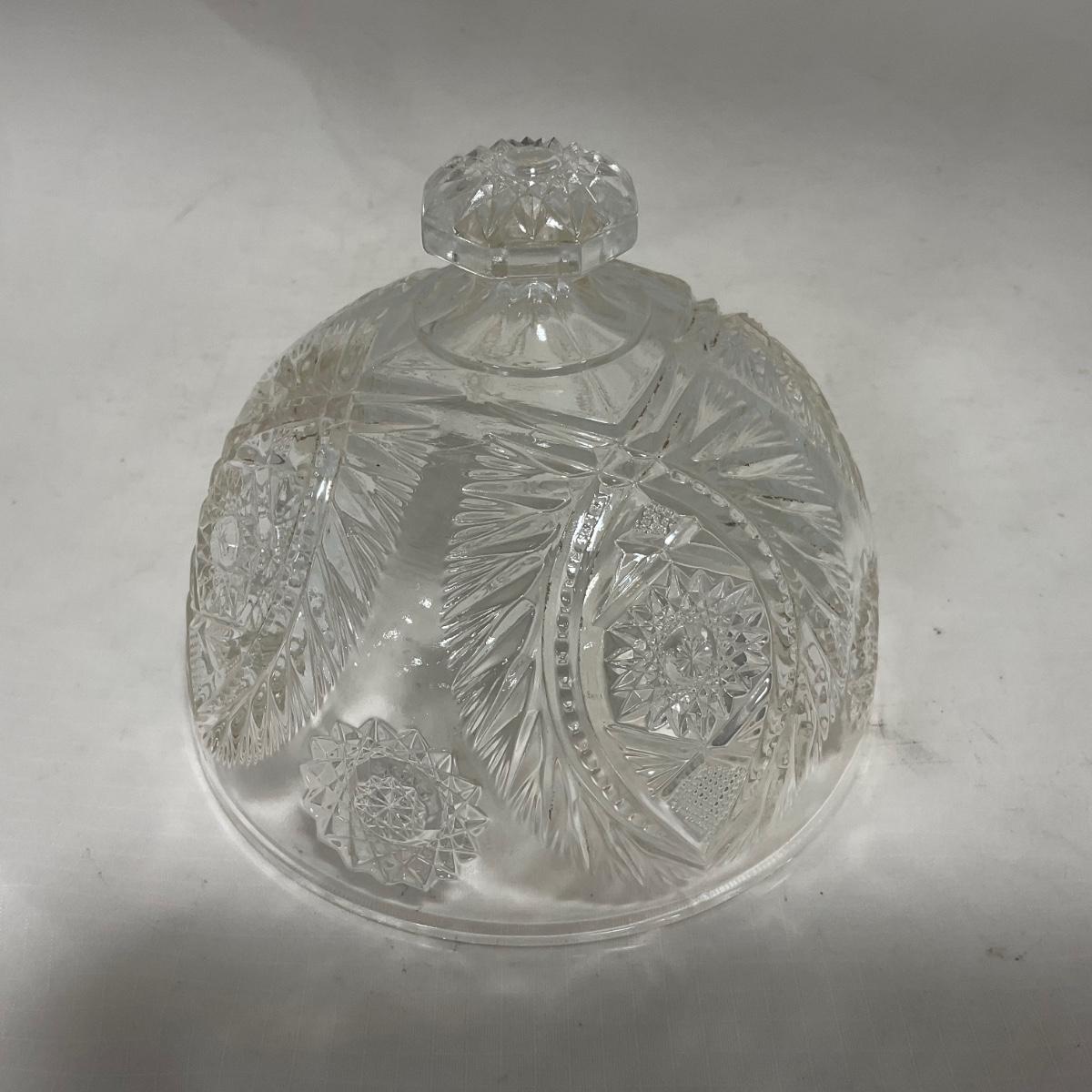 One medium sized clear glass covered butter dish. With intricate design. Please see photos for details and condition. ::: Shipping is available on this lot. If you require shipping you must let us know at the close of the auction. We will coordinate with you after the item has been won. Shipping fees will include insurance up to or exceeding the value of all items being mailed. If you have any questions regarding this lot please contact the auctioneer either via this website, by direct email or by phone. PICK UP TIMES and other important information can be found in the TERMS and DESCRIPTION of the auction. Please take a look for pertinent information. Thanks!