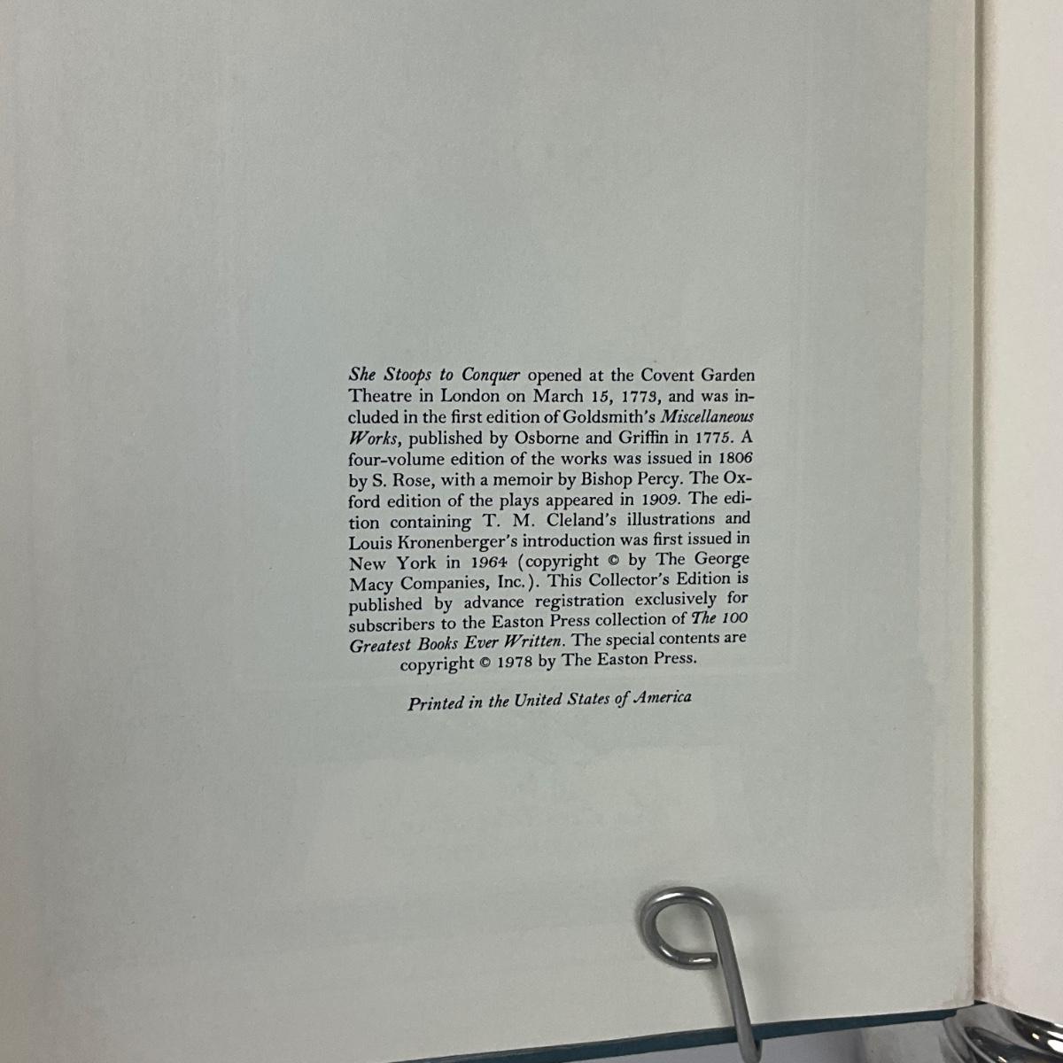 114 "She Stoops to Conquer" by OLIVER GOLDSMITH. 1978; The Easton Press "Collection's Edition"