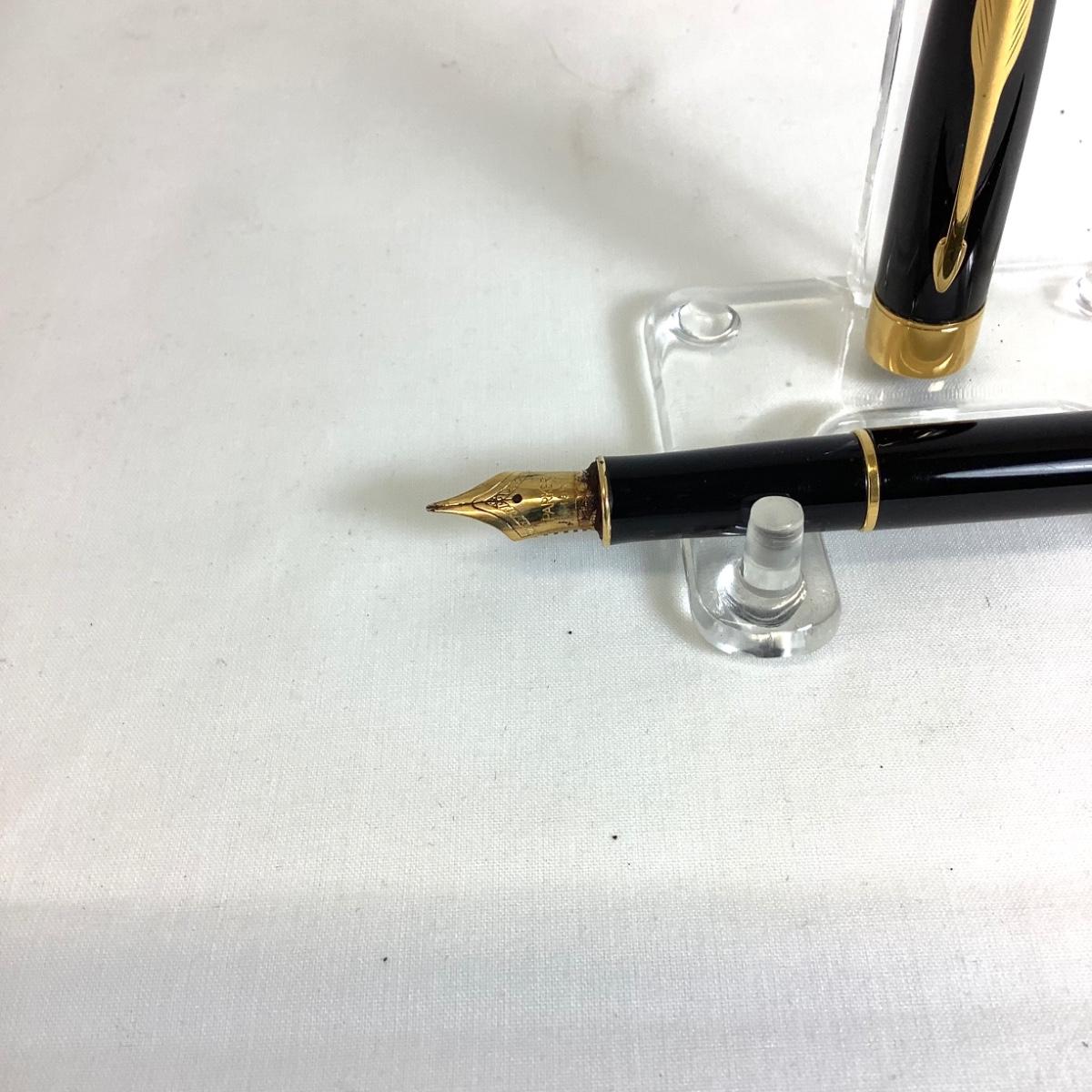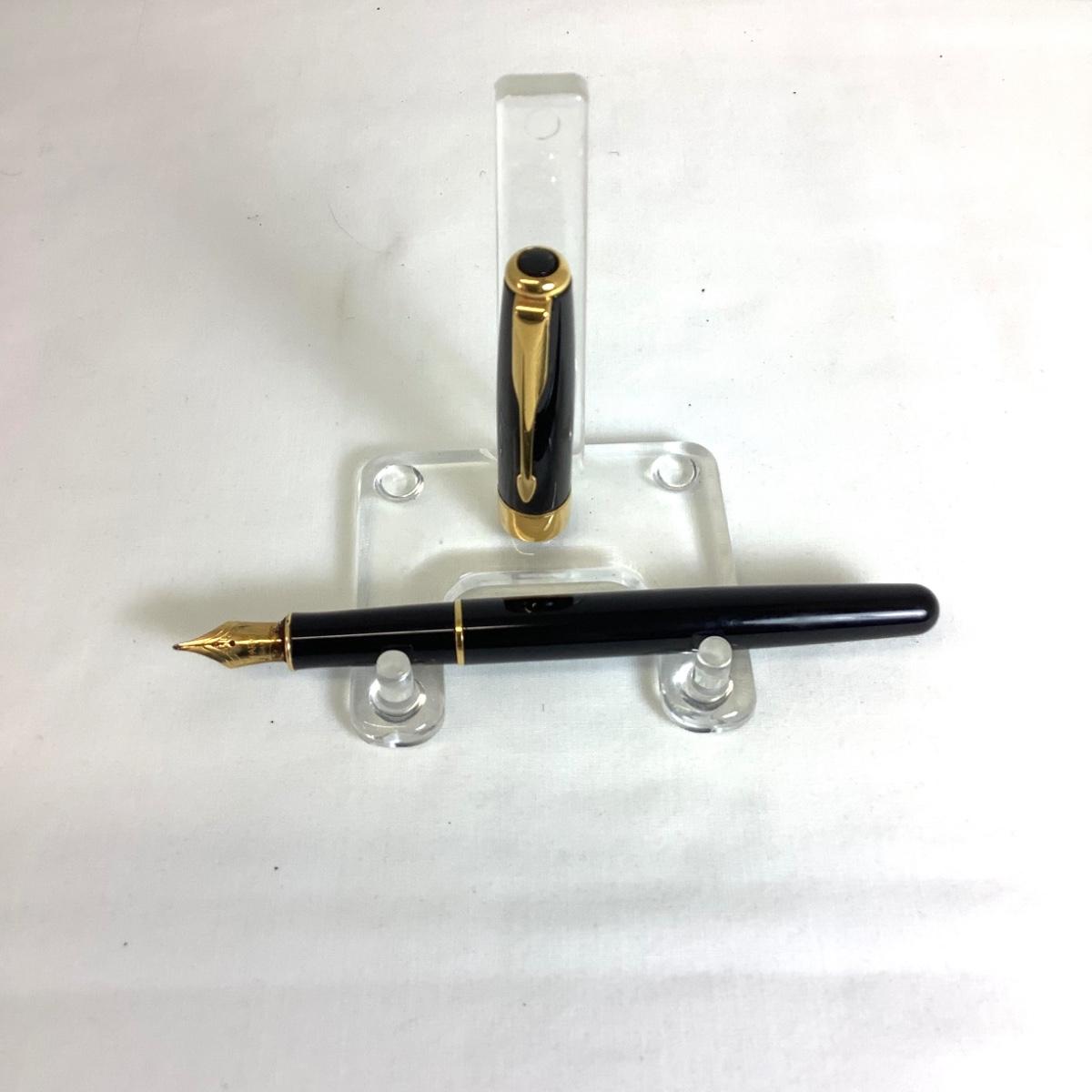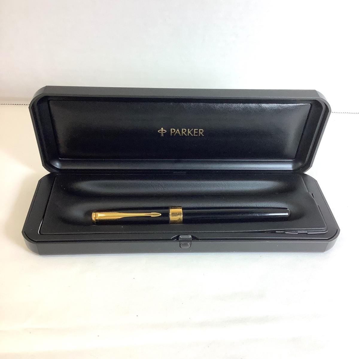The pen has an 18k gold nib, it is black and gold, made in France, model Q.1. Fantastic condition, with a Parker box, not the original box.