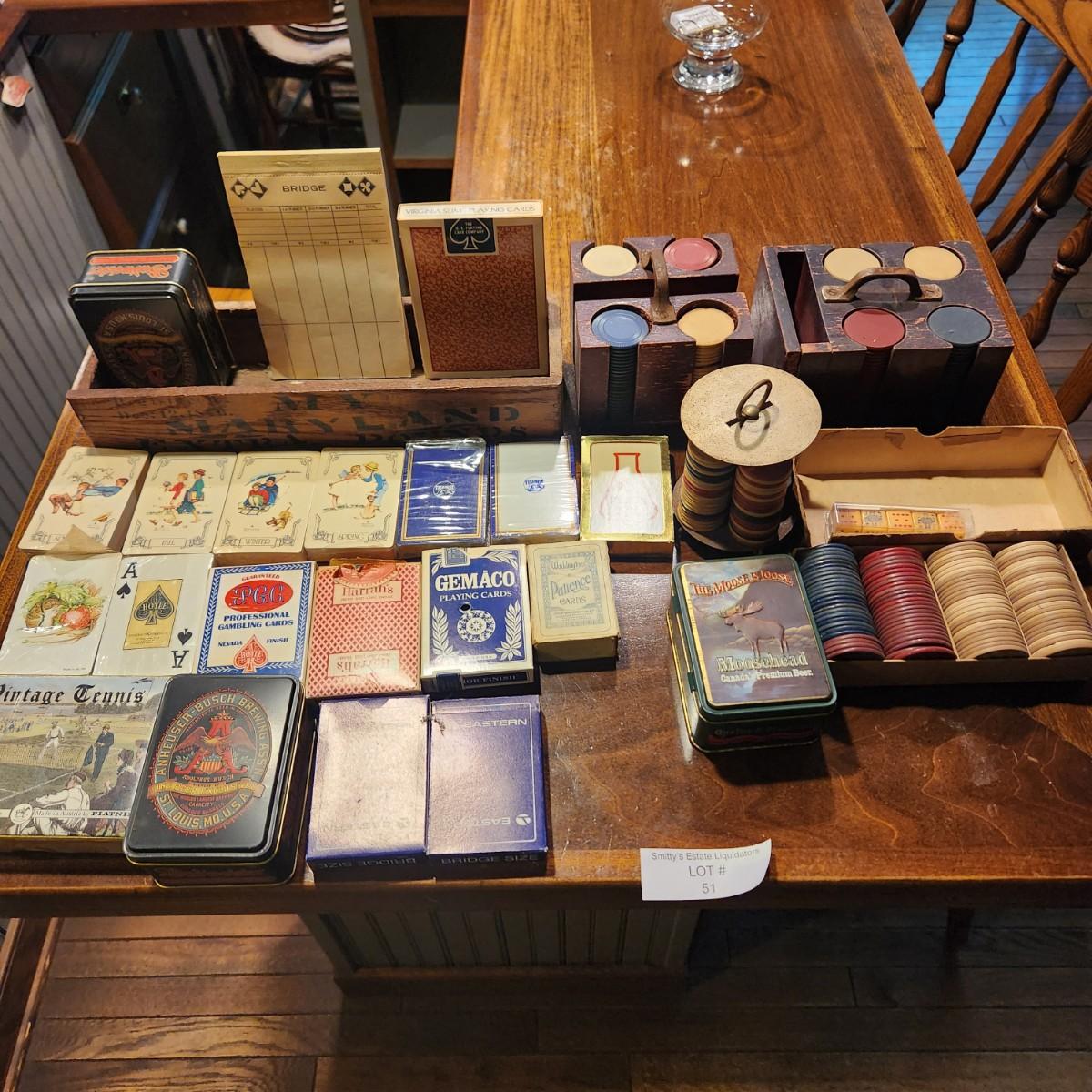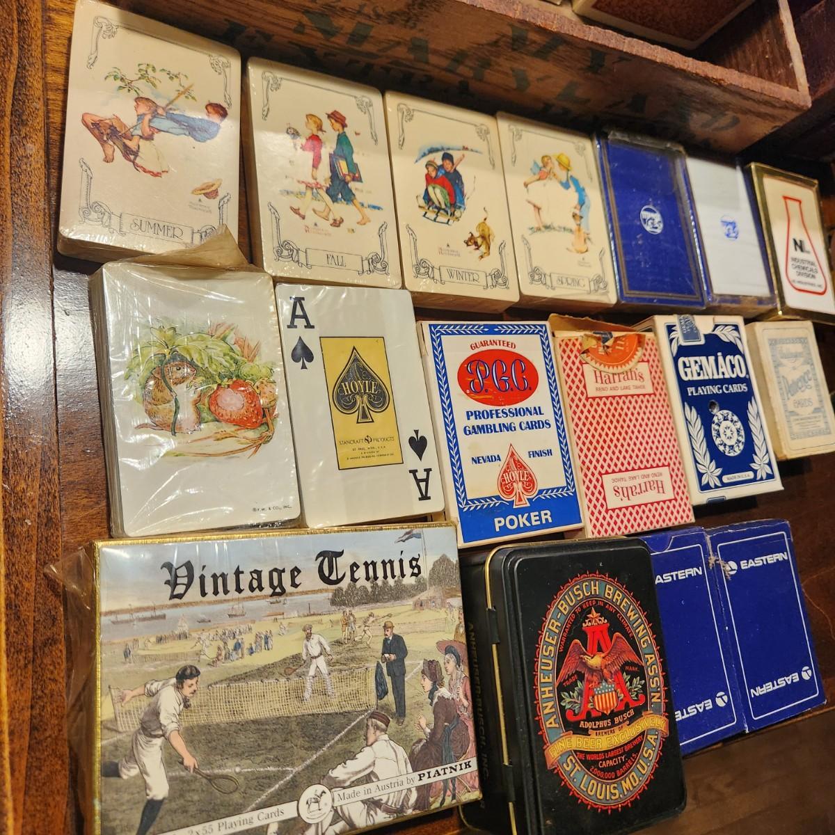 Lot of Vintage Playing Cards and Poker Chips Norman Rockwell , Eastern Airlines , Piatnik Vintage Tennis