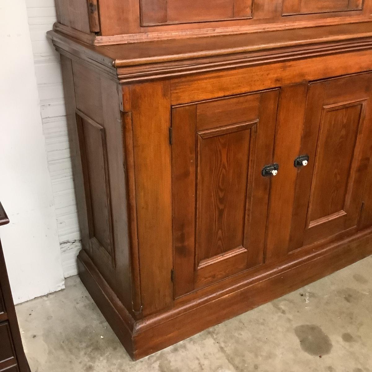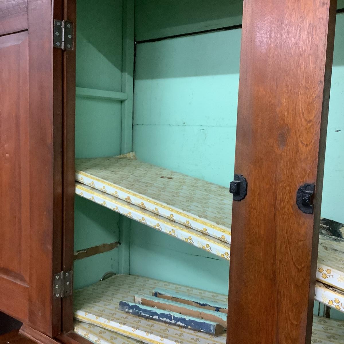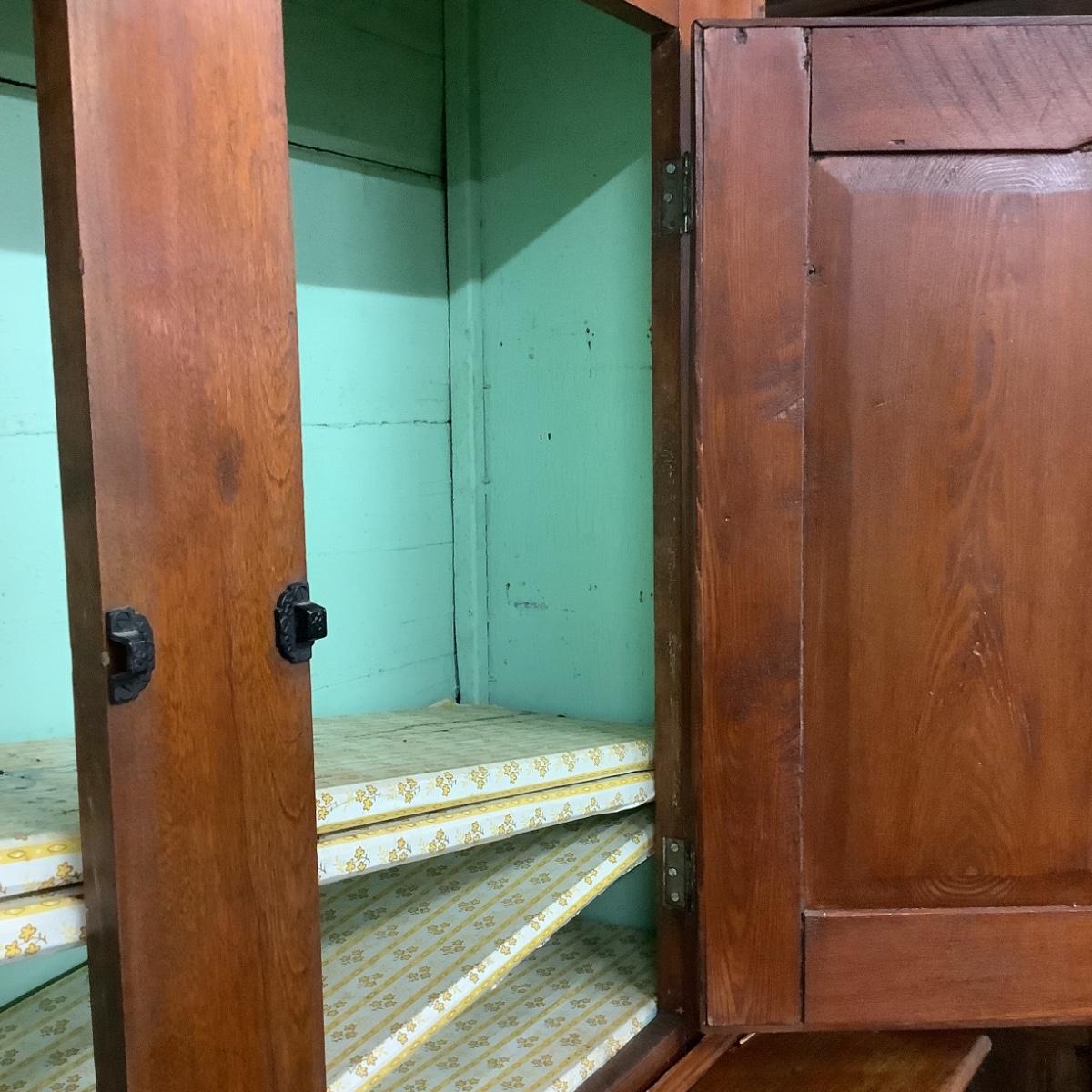 1147 Antique Country Chestnut Stepback Cabinet w/ Victorian Handles (Latch)