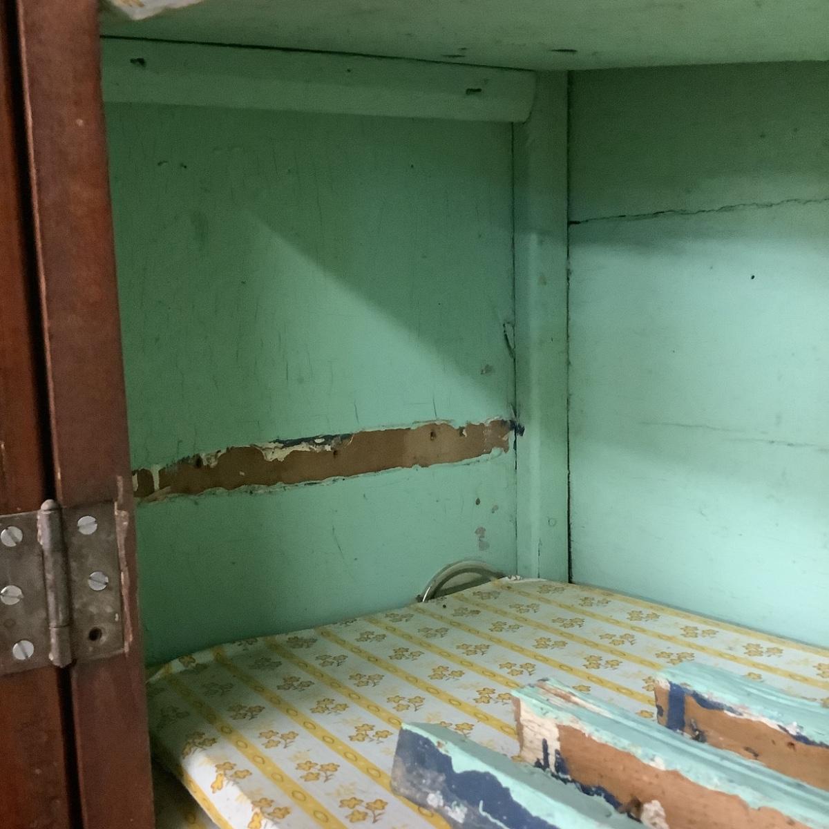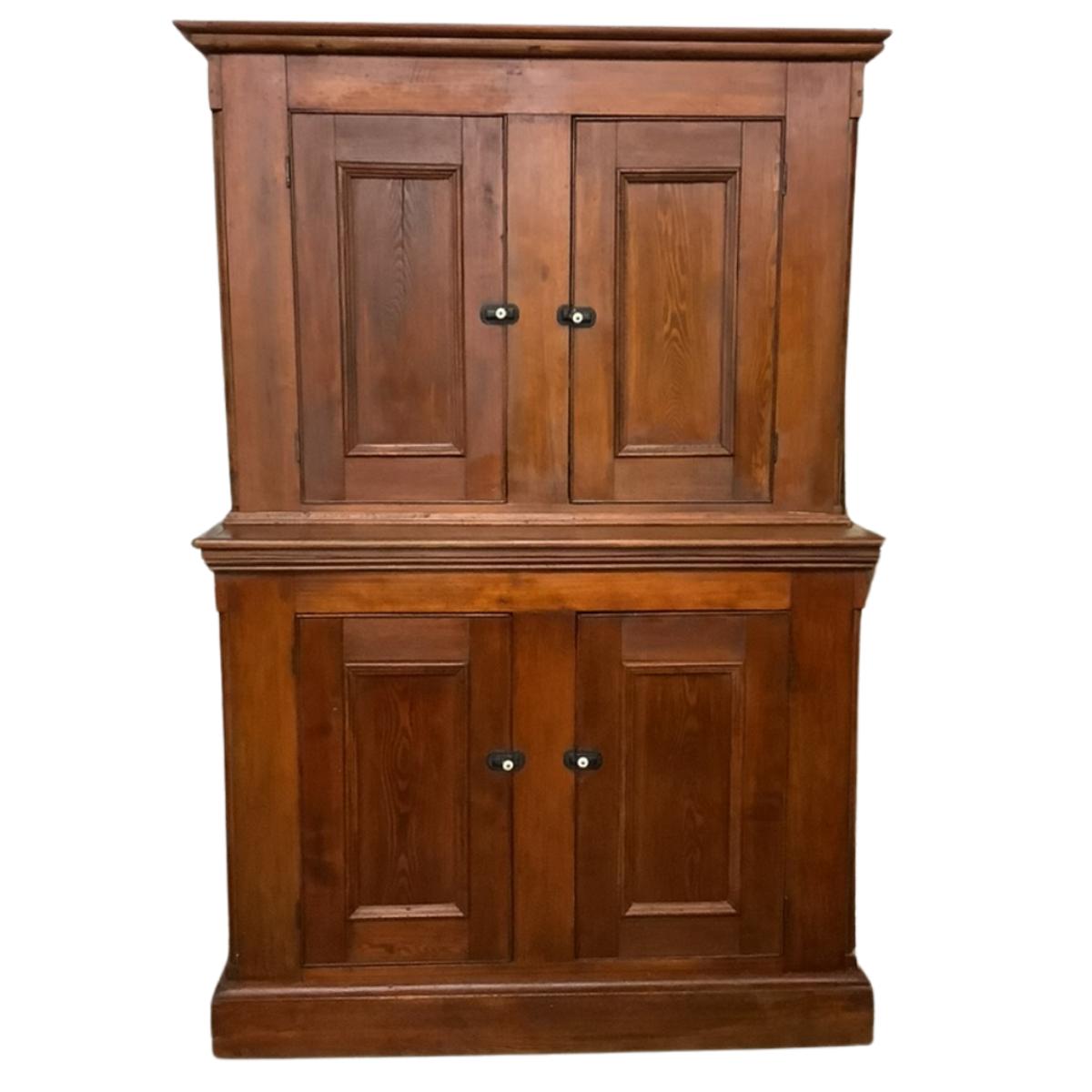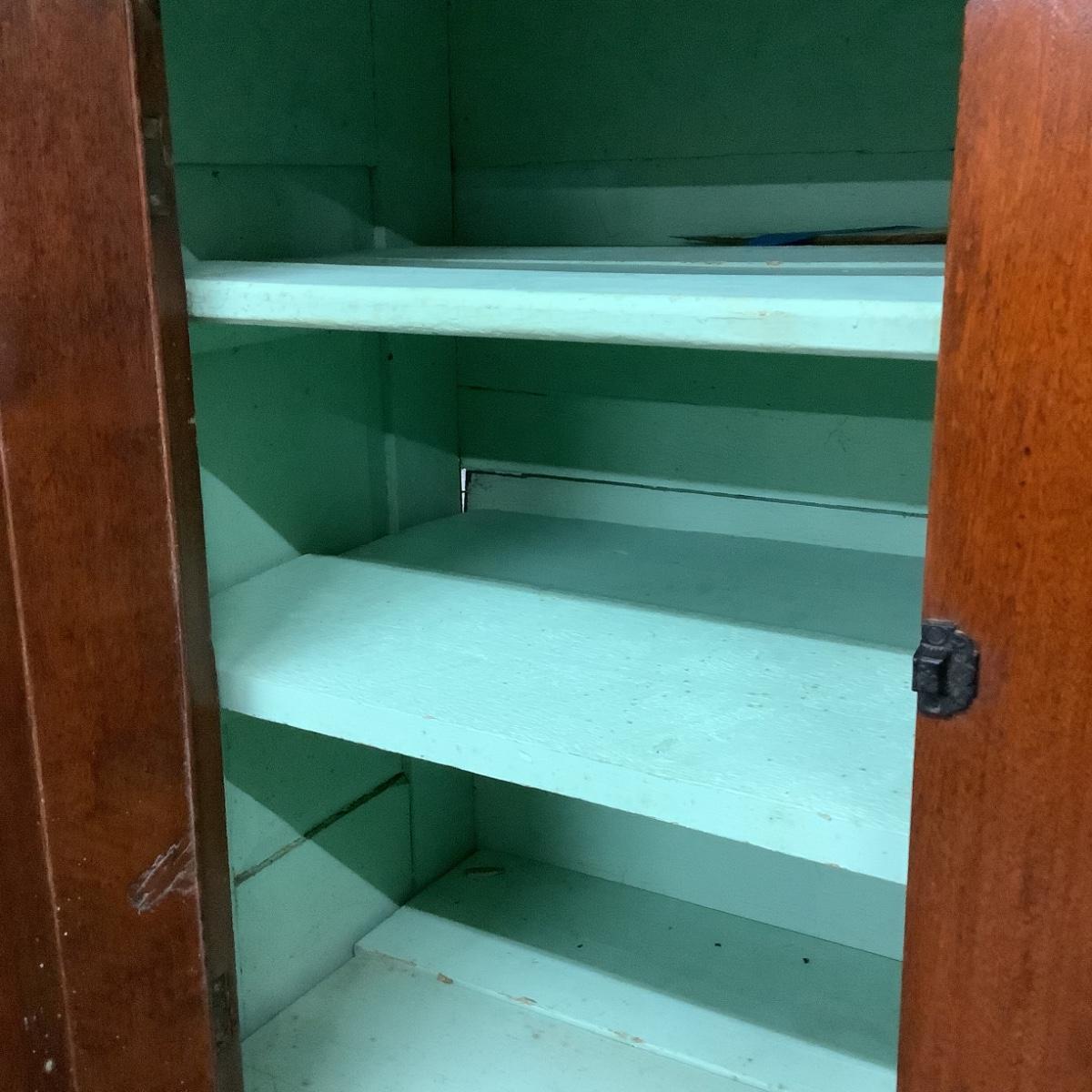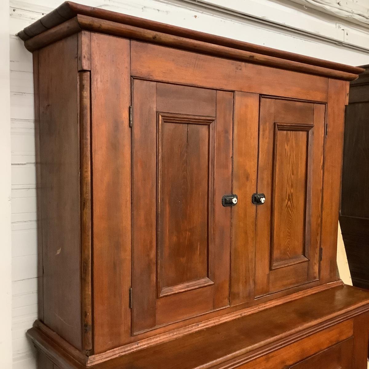 1147 Antique Country Chestnut Stepback Cabinet w/ Victorian Handles (Latch)