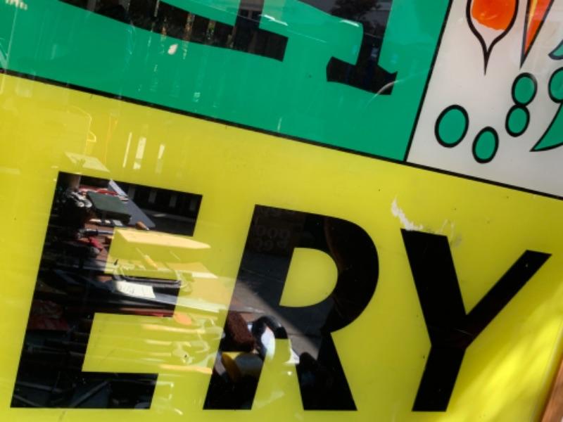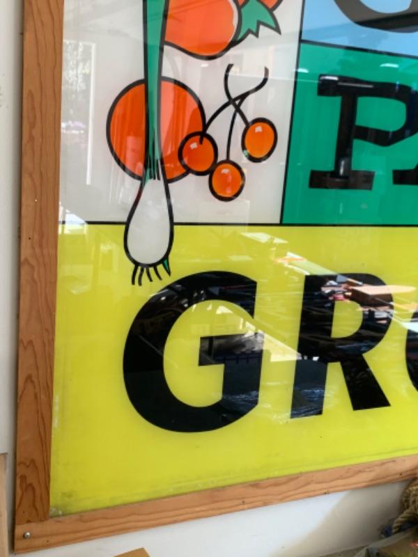 115. Framed vintage plastic grocery store sign (75”x50”)