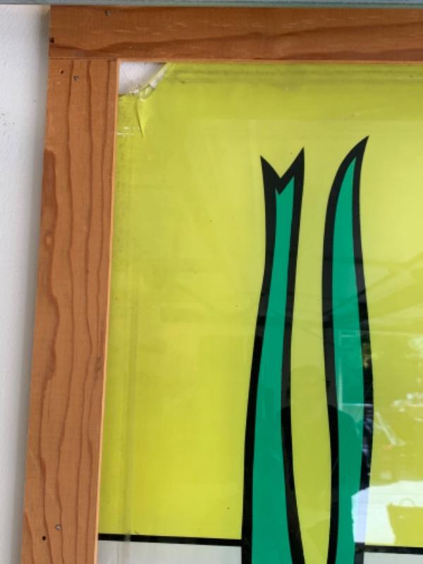 115. Framed vintage plastic grocery store sign (75”x50”)