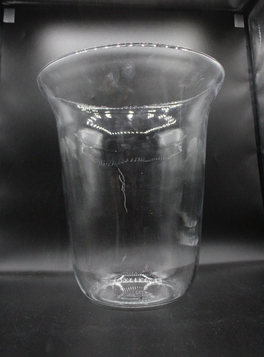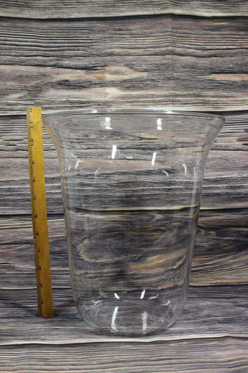 Glass vase stands at 11.5" tall, there are no scratches or chips.