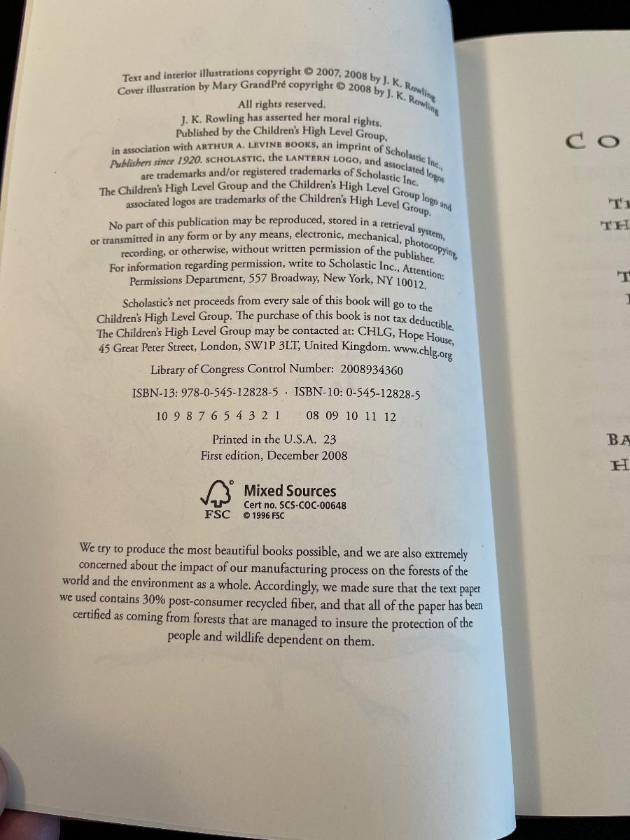 #115 Harry Potter " The Tales of Beedle the Bard" Signed 1st