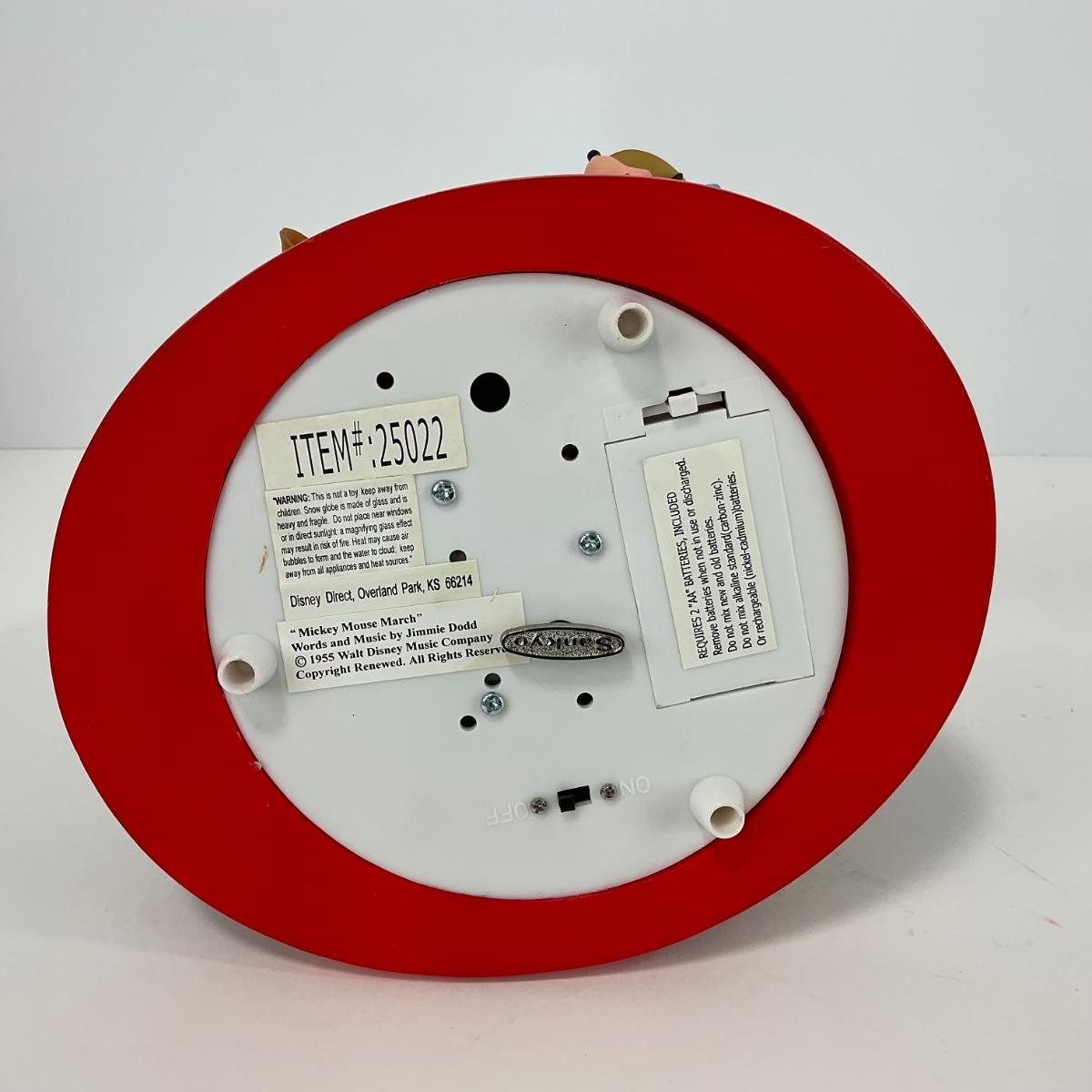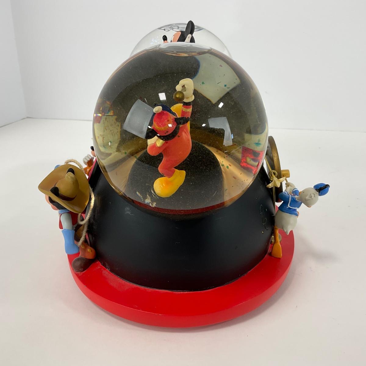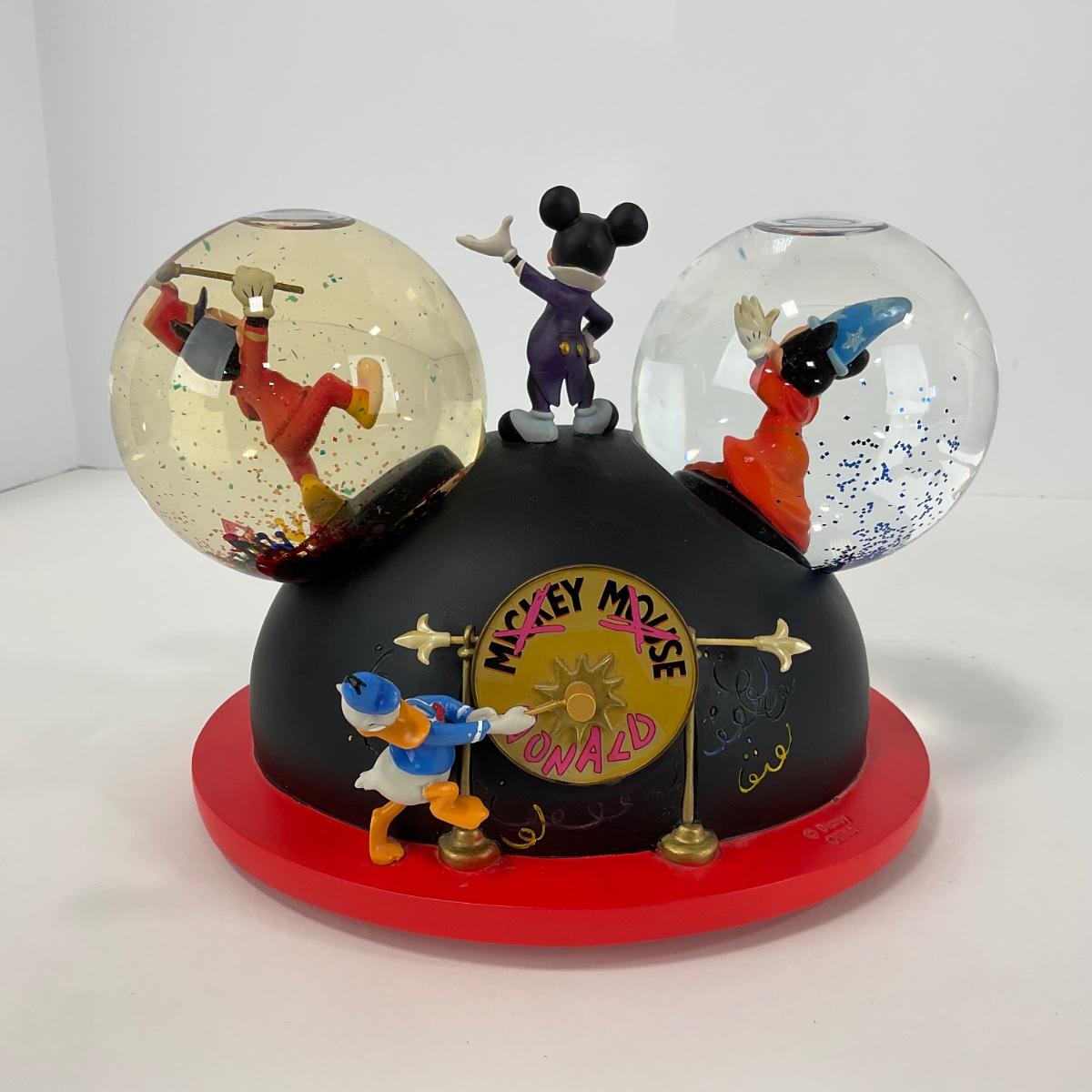 One Mickey Mouse March ears club Musical water snow globe. Donald Duck on the back appears to have been broken and re attached at one point. There is also water discoloring in one of the globes. Appears to have slight scuffs and marks. Please see photos for details and condition. Any condition statement is given as a courtesy to a client, is an opinion, and should not be treated as a statement of fact. Reference to condition written, oral or within a condition report shall not be regarded as a full account of condition and may not include all defects, alterations, or restorations. Absence of a condition report does not imply a lot is flawless or lacking imperfections or damage. Katherine’s Auction & Appraisal Service shall have no responsibility for any error or omission. Returns shall not be accepted on the basis of condition. ::: Shipping is NOT available on this lot. If you have any questions regarding this lot please contact the auctioneer either via this website, by direct email or by phone. PICK UP TIMES and other important information can be found in the TERMS and DESCRIPTION of the auction. Please take a look for pertinent information. Thanks!