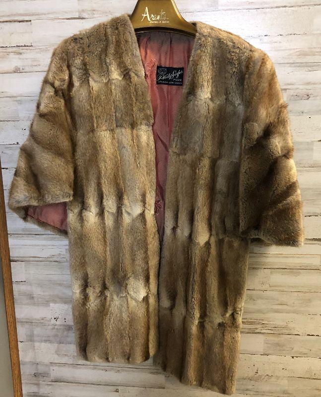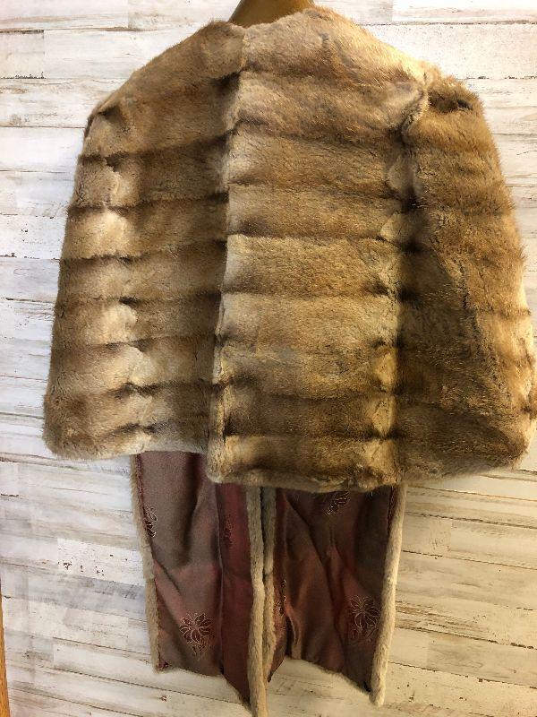 Appears to be Mink? Not totally sure - Very Soft. Collar to hem 30" Shoulders 16" Collar to hem 19"