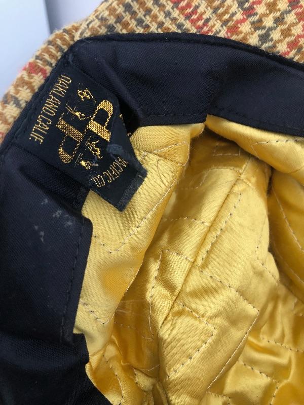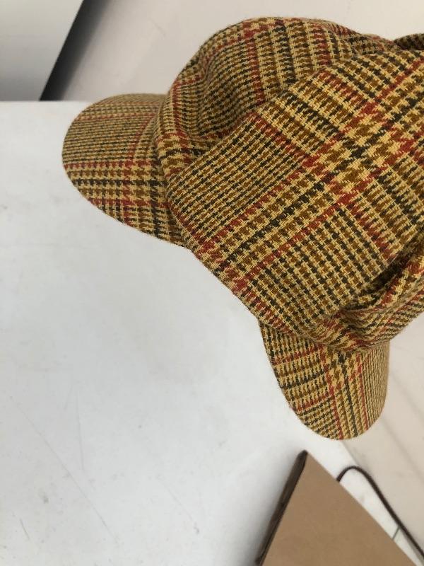 Mustard yellow plaid hat. Good vintage condition. This is an ONSITE Auction all items will need to be picked up on location. Please see auction description for pick up procedures