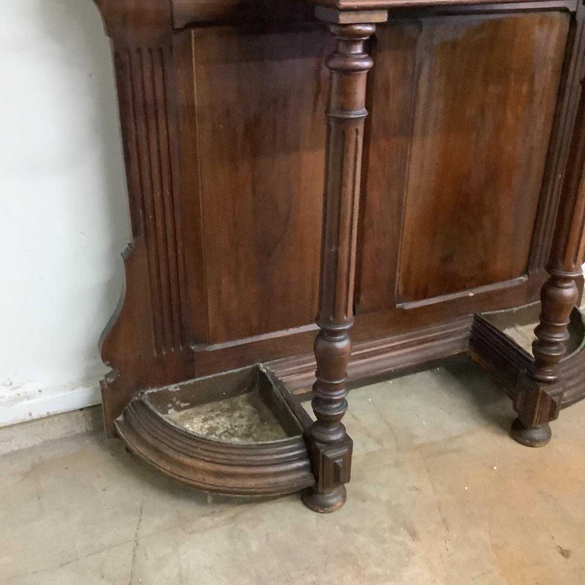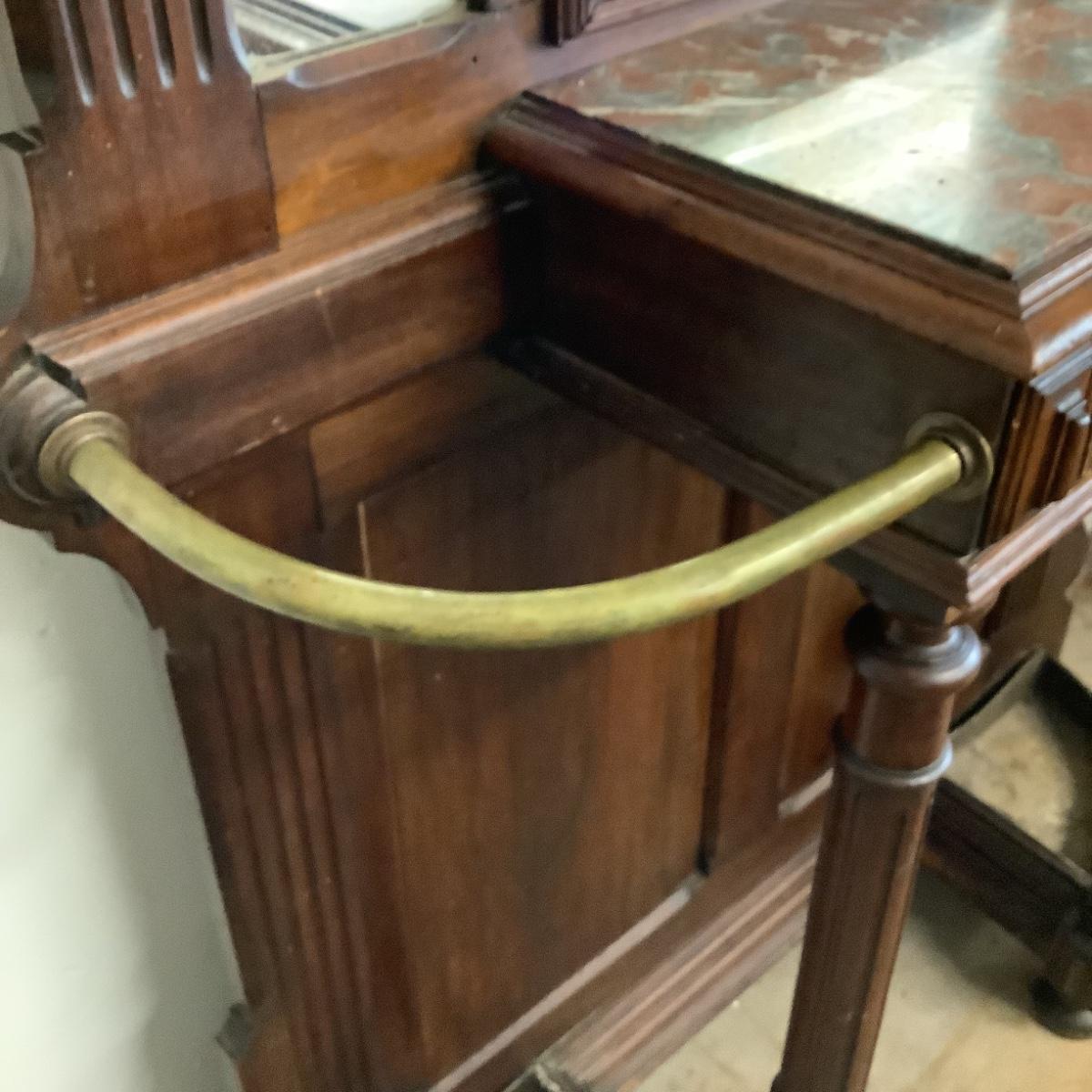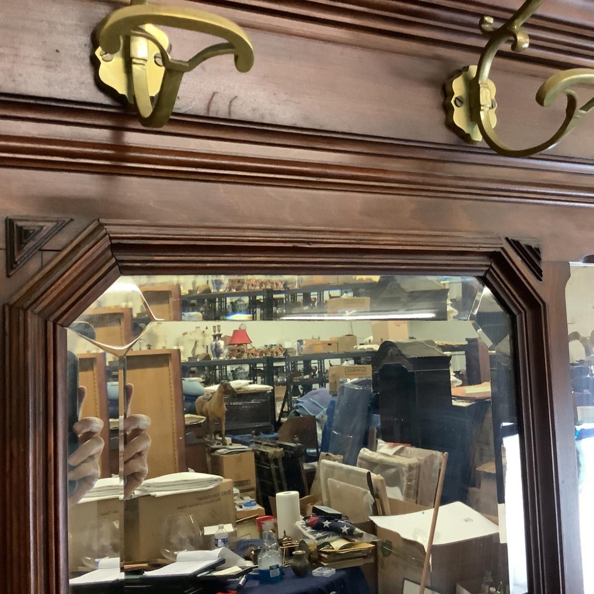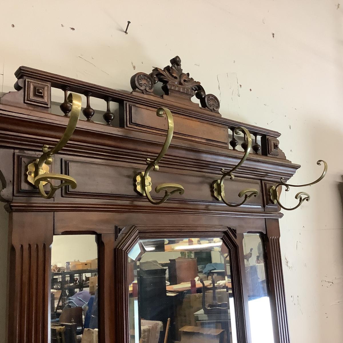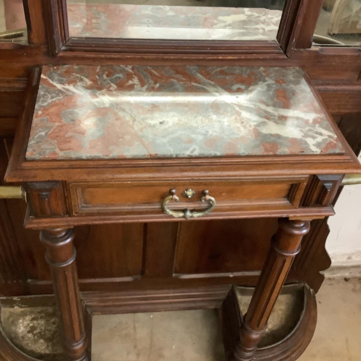1150 Antique Edwardian Marble Top Hall Tree With Mirror & Brass Hooks