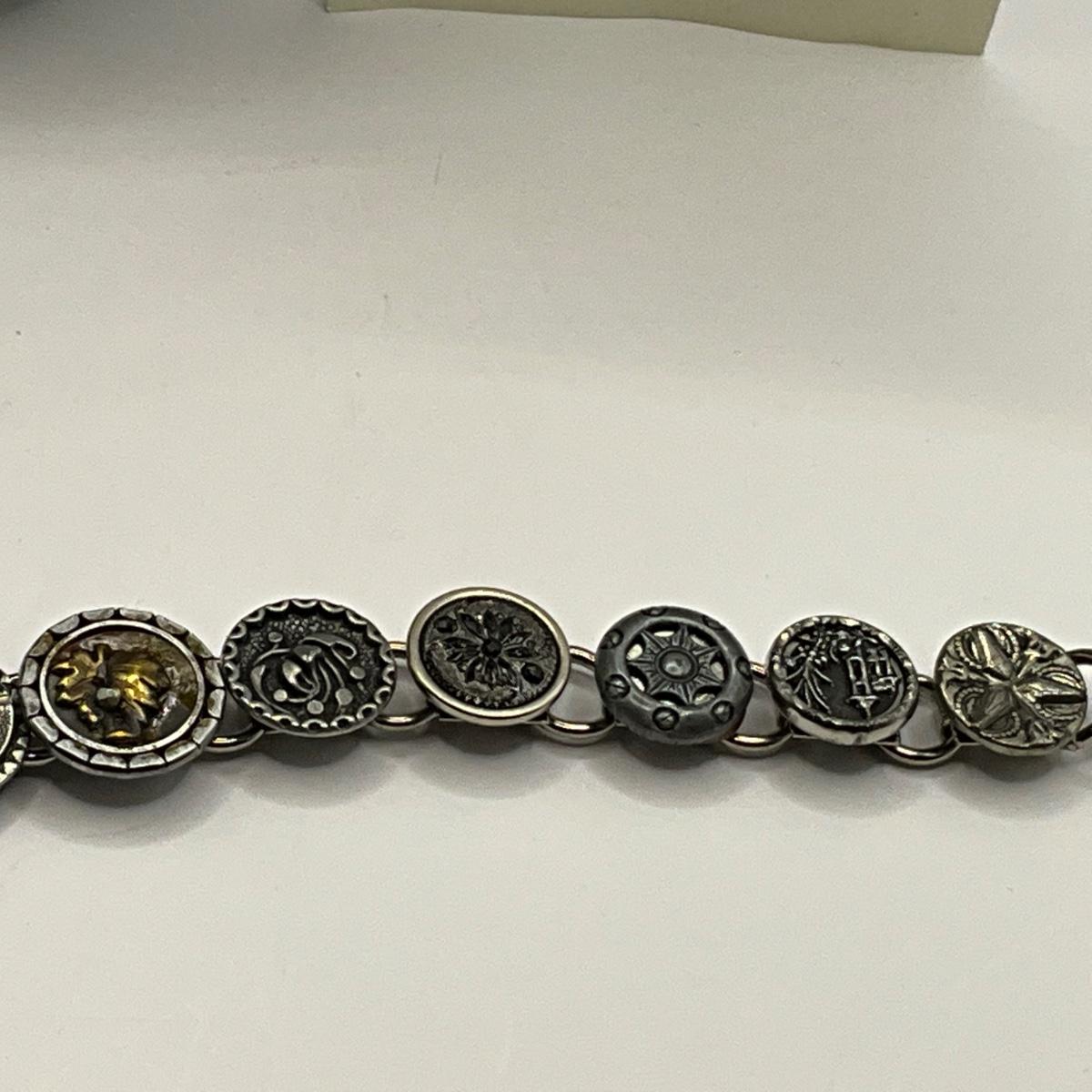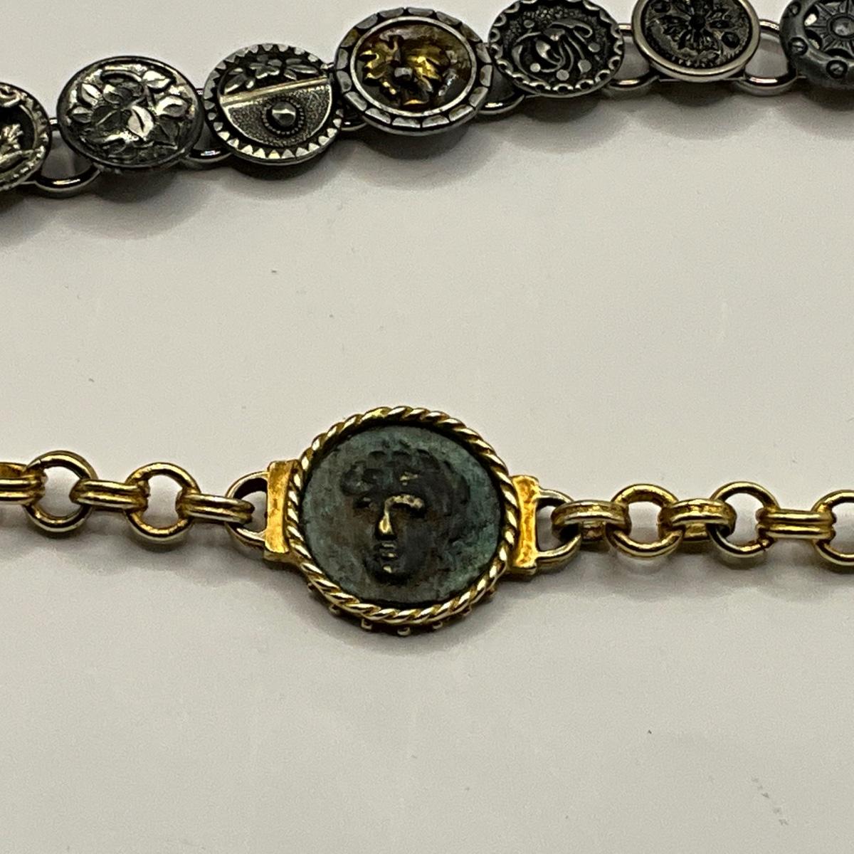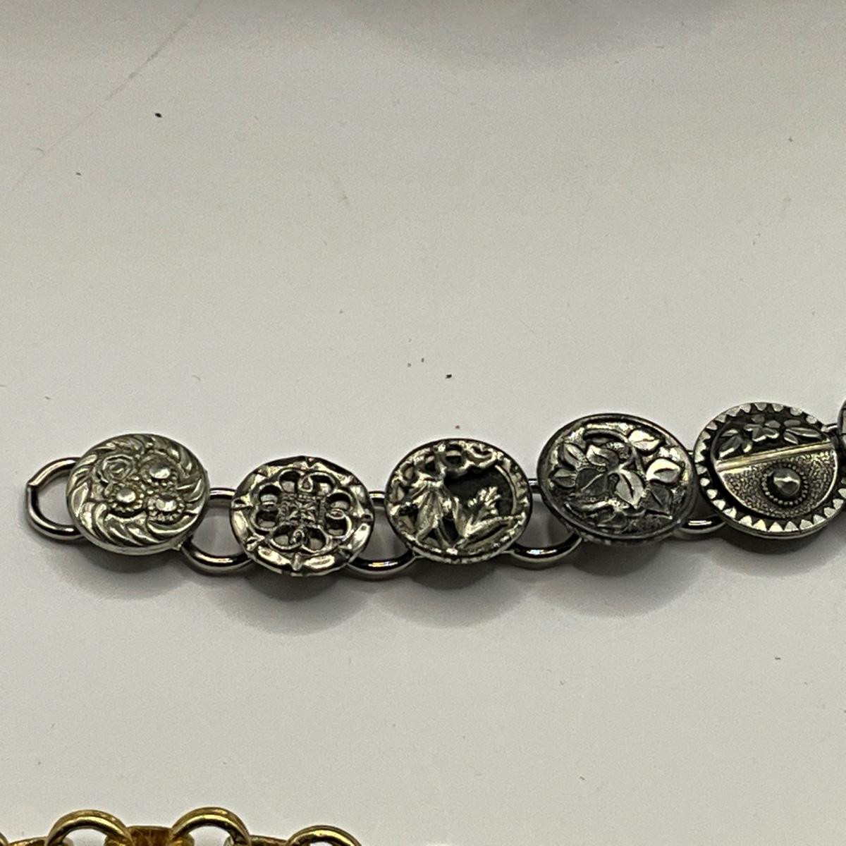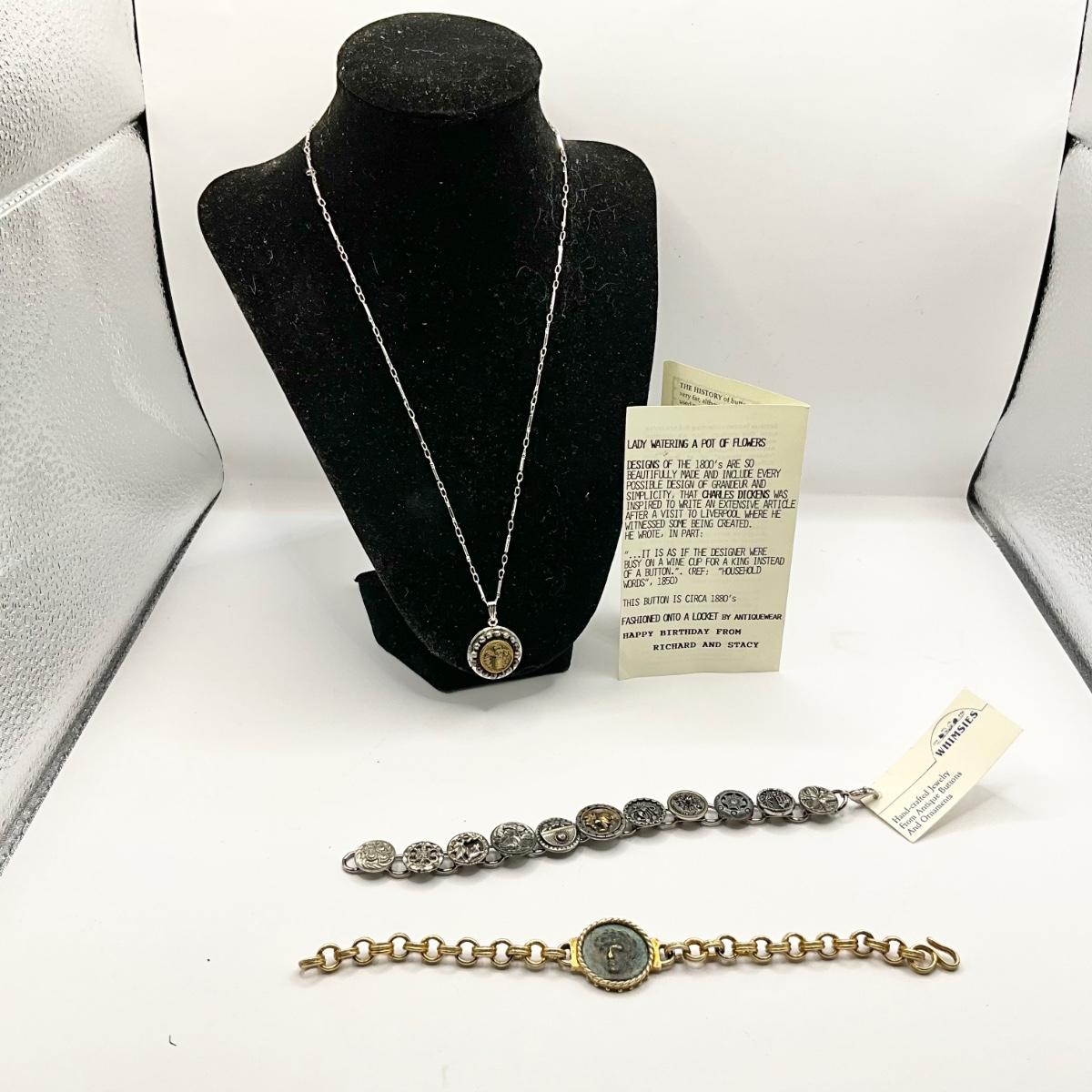 1152 Antique Circa 1880 Button Necklace with Button Bracelet and Roman Gold Tone Bracelet