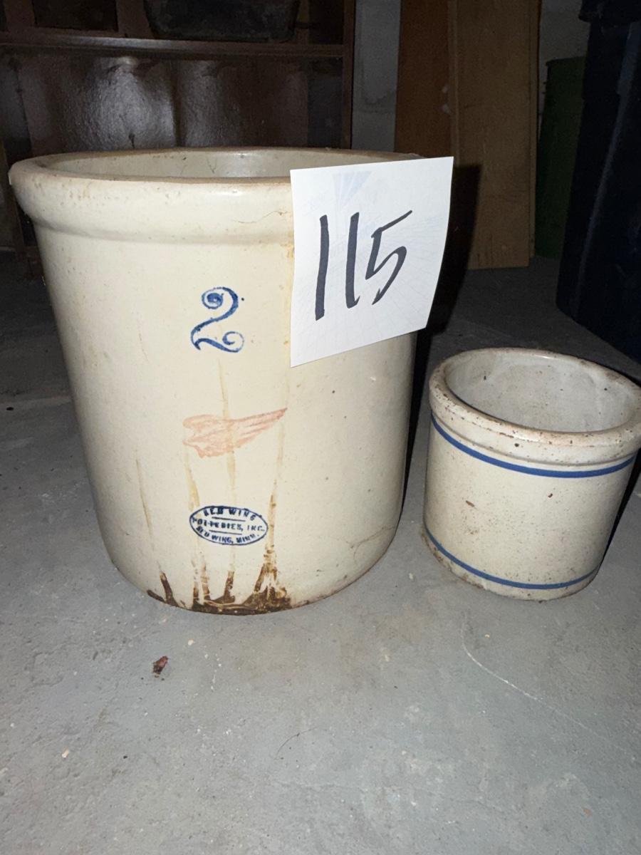 115-2 gallon Red Wing crock and Red Wing beater jar