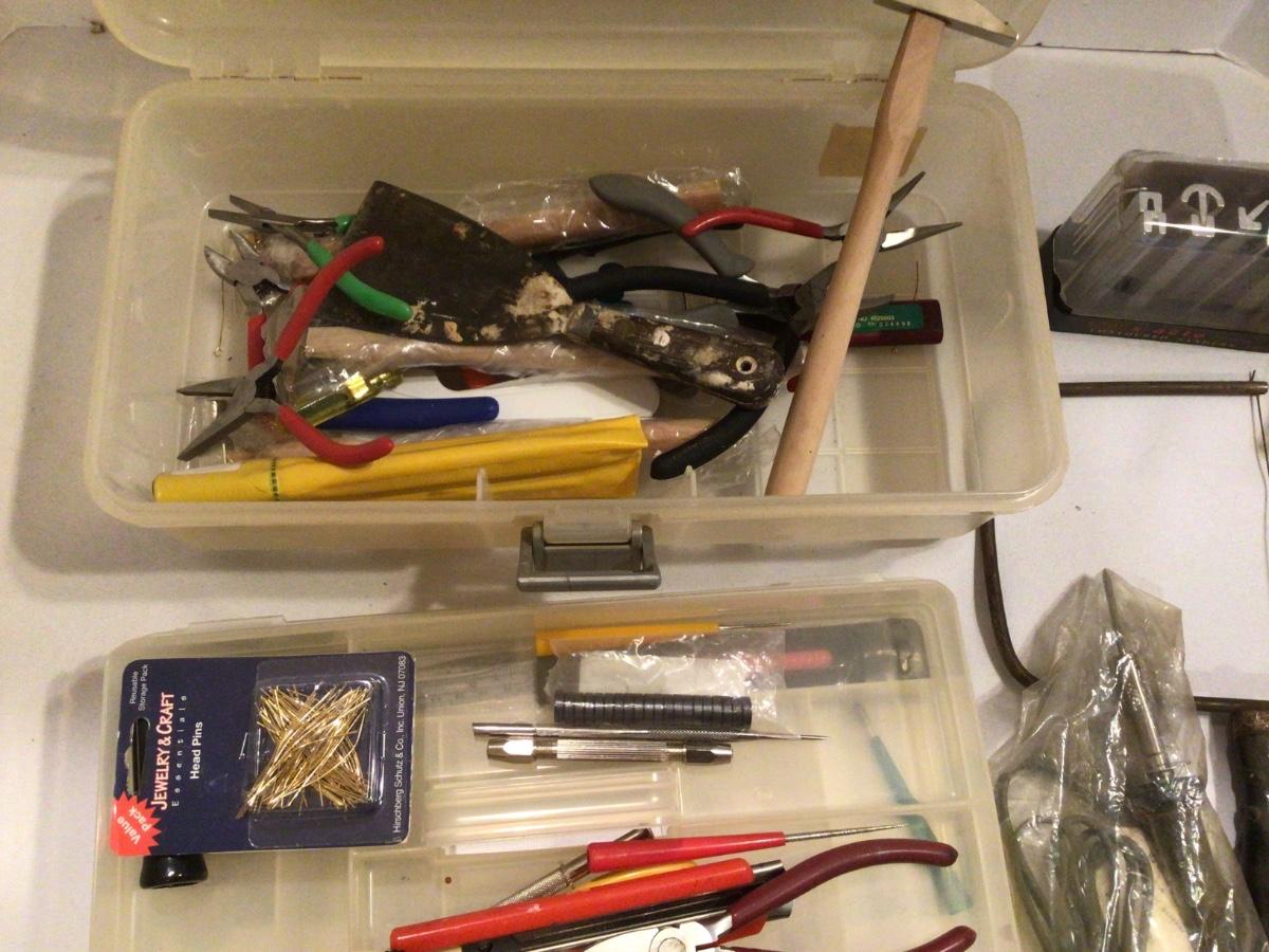 Assorted tools, saws, pliers, wire cutters, small hammers, etc.