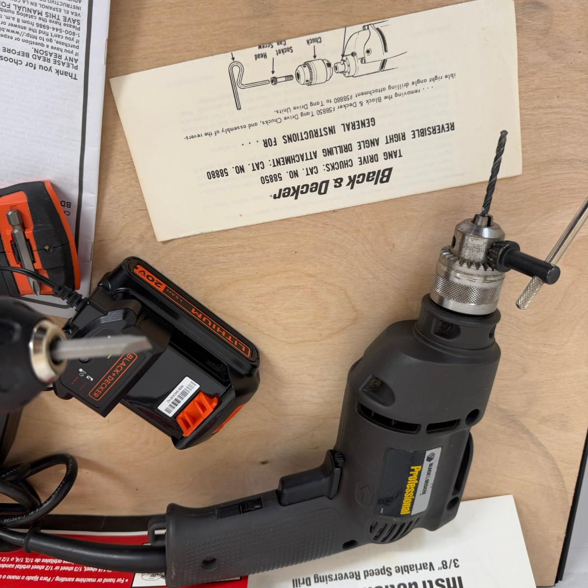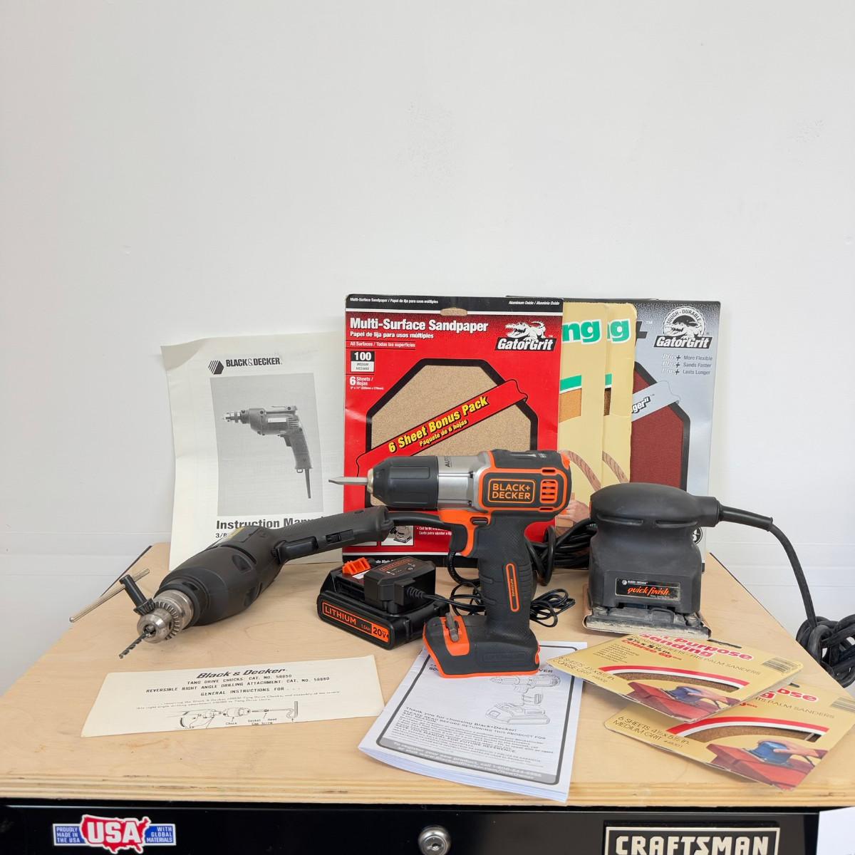 1153 Black & Decker Plug Variable Speed Reversing Drill, Palm Sander, Black & Decker Cordless Drill