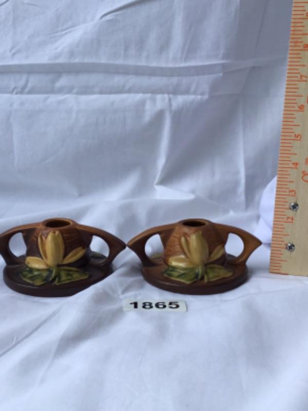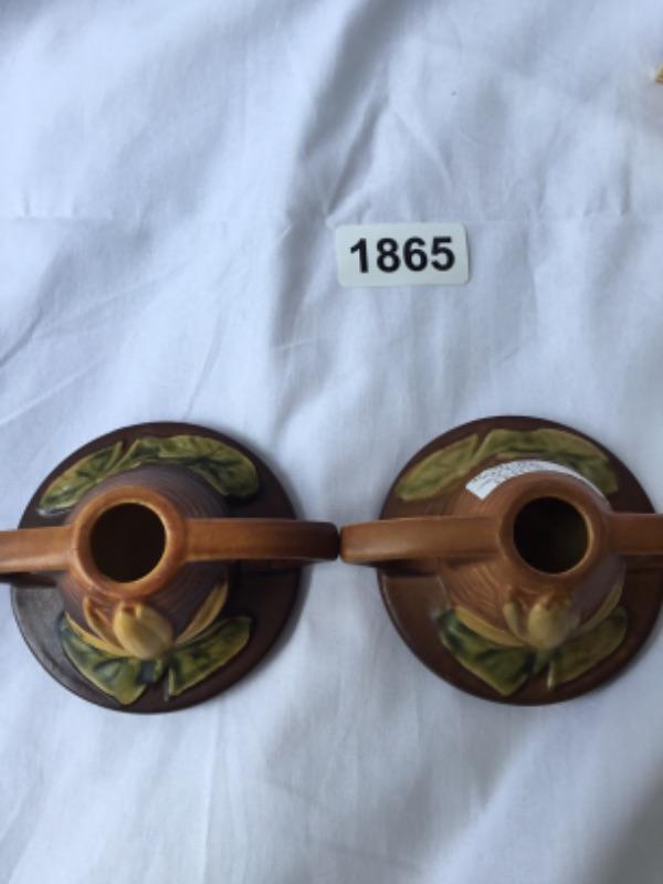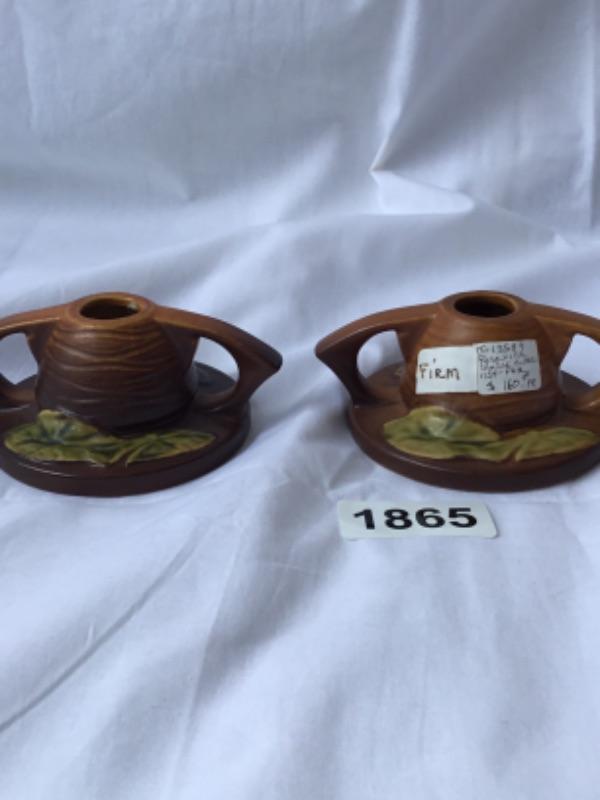 1154-2 vintage Roseville pottery candleholders Lot 1865