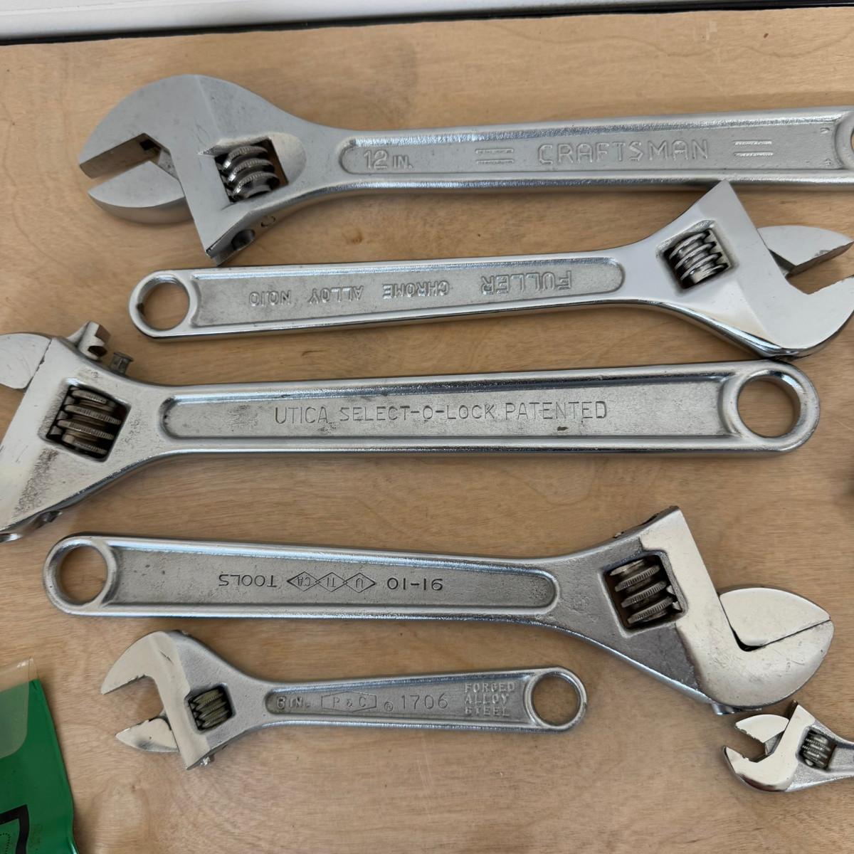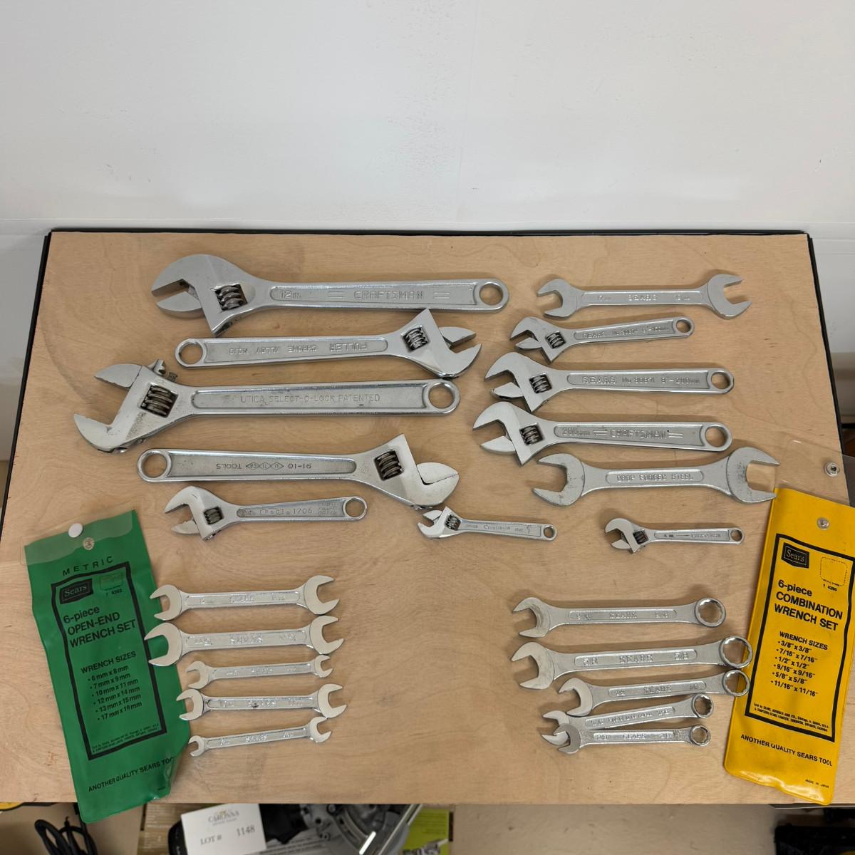 1155 Lot of Crescent Wrenches With Open End Wrench Set & Combination Wrench Set