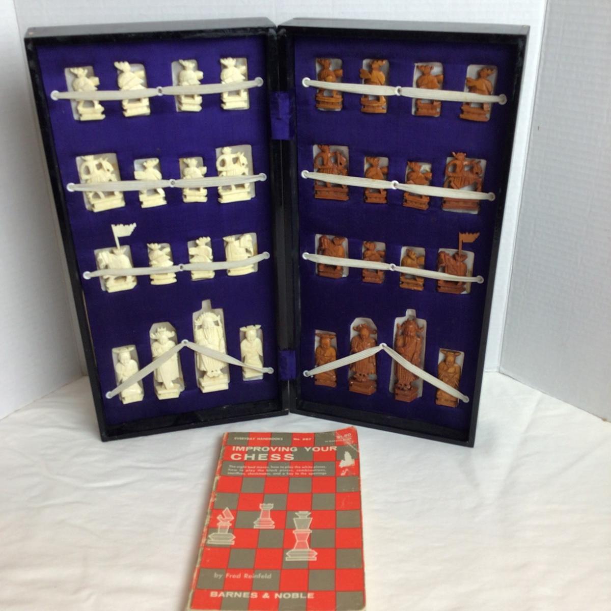 Folding chess board is also the case, made in Hong Kong along with Chess instructional book.