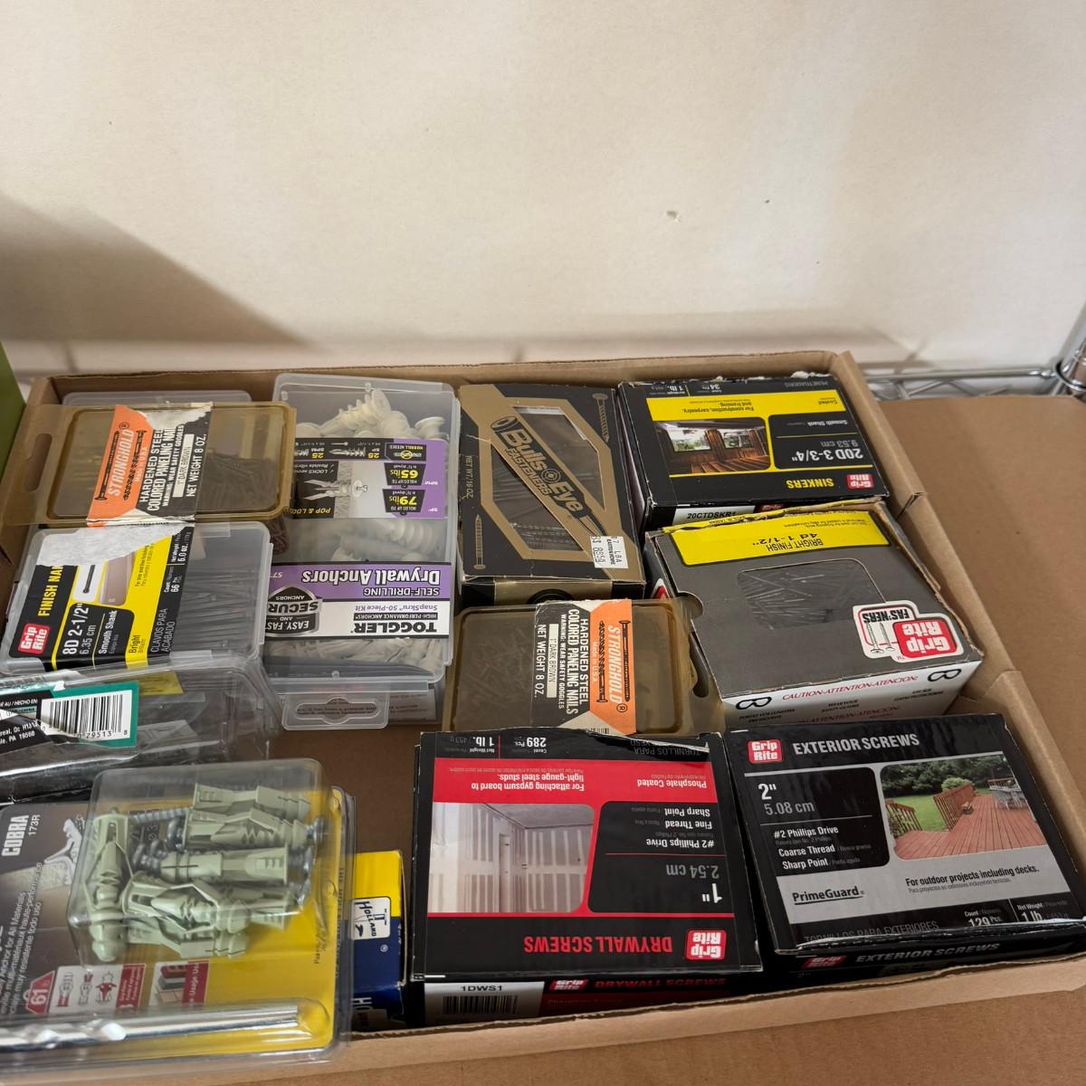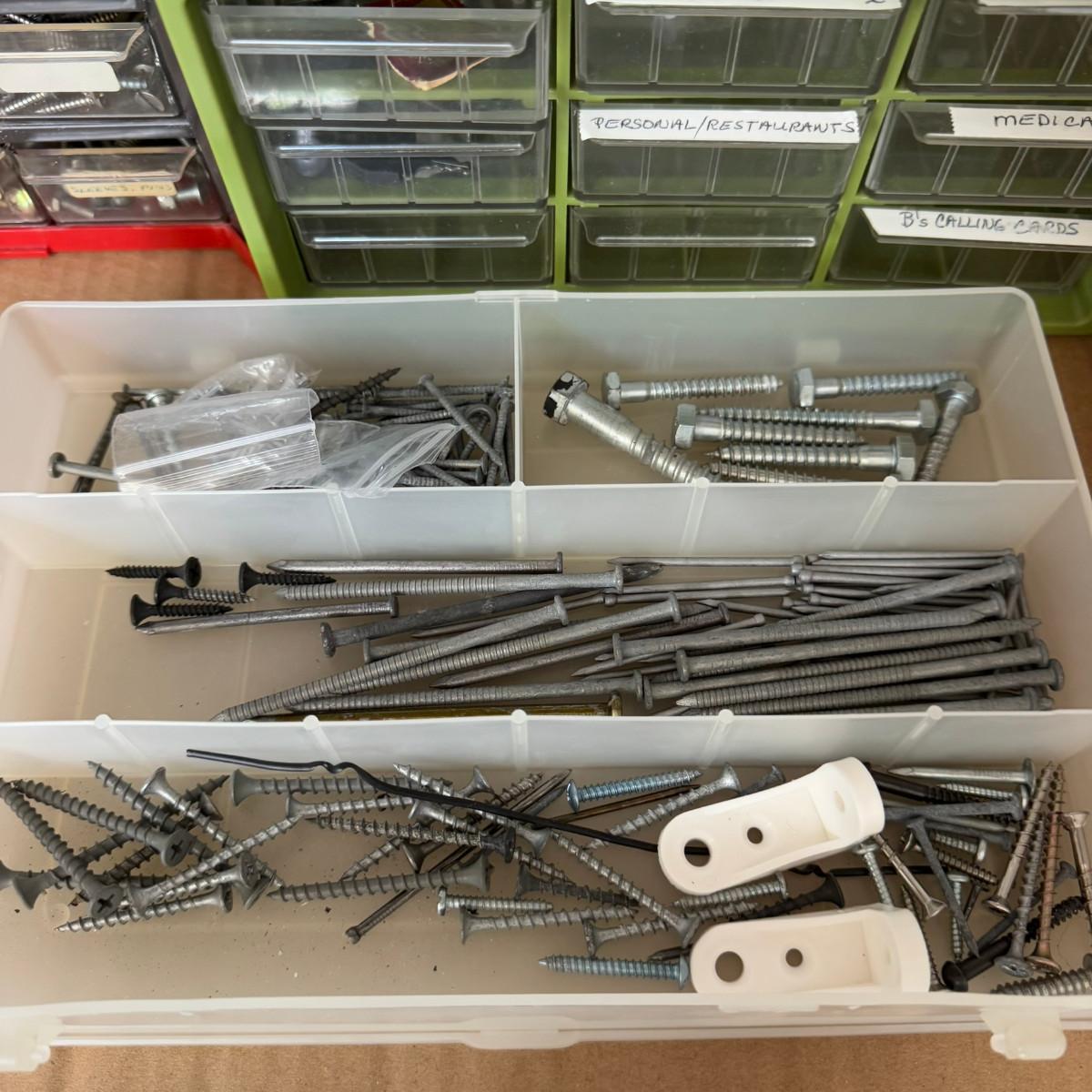 1158 Lot of Screws, Tacks, Nuts & Bolts, Bits and Nails