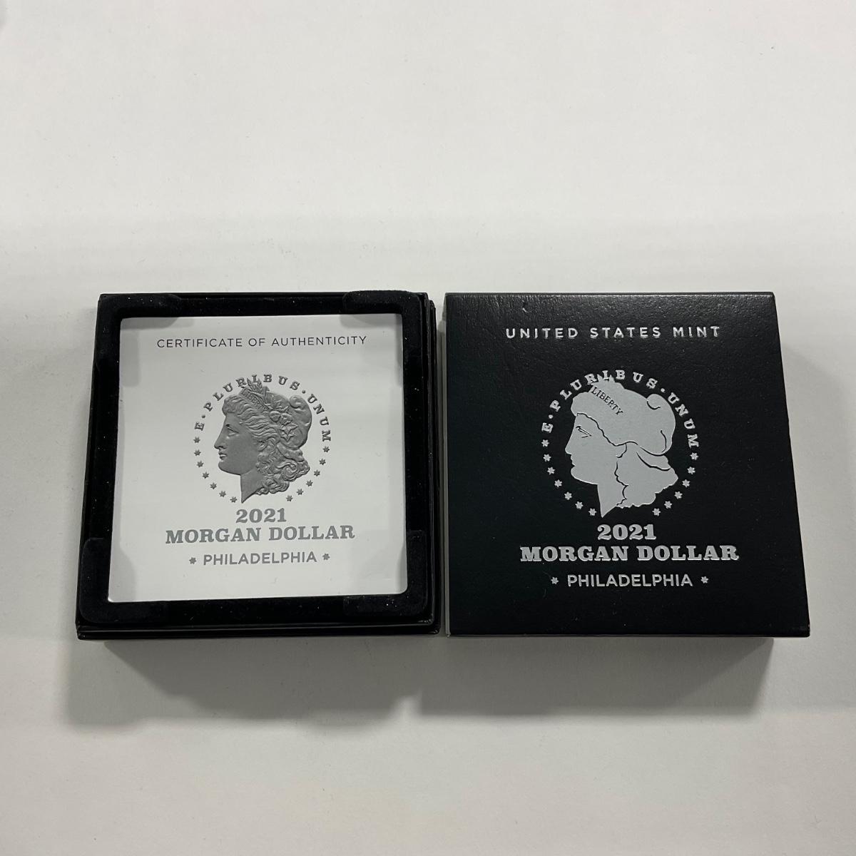 One 2021 Morgan Silver Dollar MS70 Advance Release Issue. Rare with original box and papers. Please see photos for details and condition. ::: Shipping is available on this lot. If you require shipping you must let us know at the close of the auction. We will coordinate with you after the item has been won. Shipping fees will include insurance up to or exceeding the value of all items being mailed. If you have any questions regarding this lot please contact the auctioneer either via this website, by direct email or by phone. PICK UP TIMES and other important information can be found in the TERMS and DESCRIPTION of the auction. Please take a look for pertinent information. Thanks!