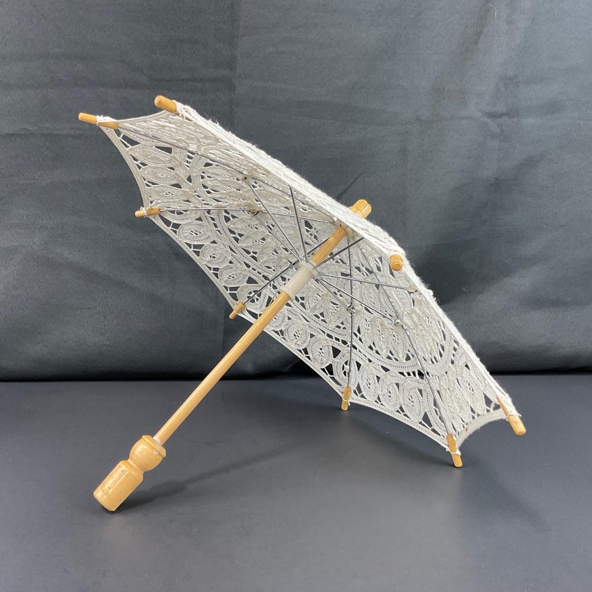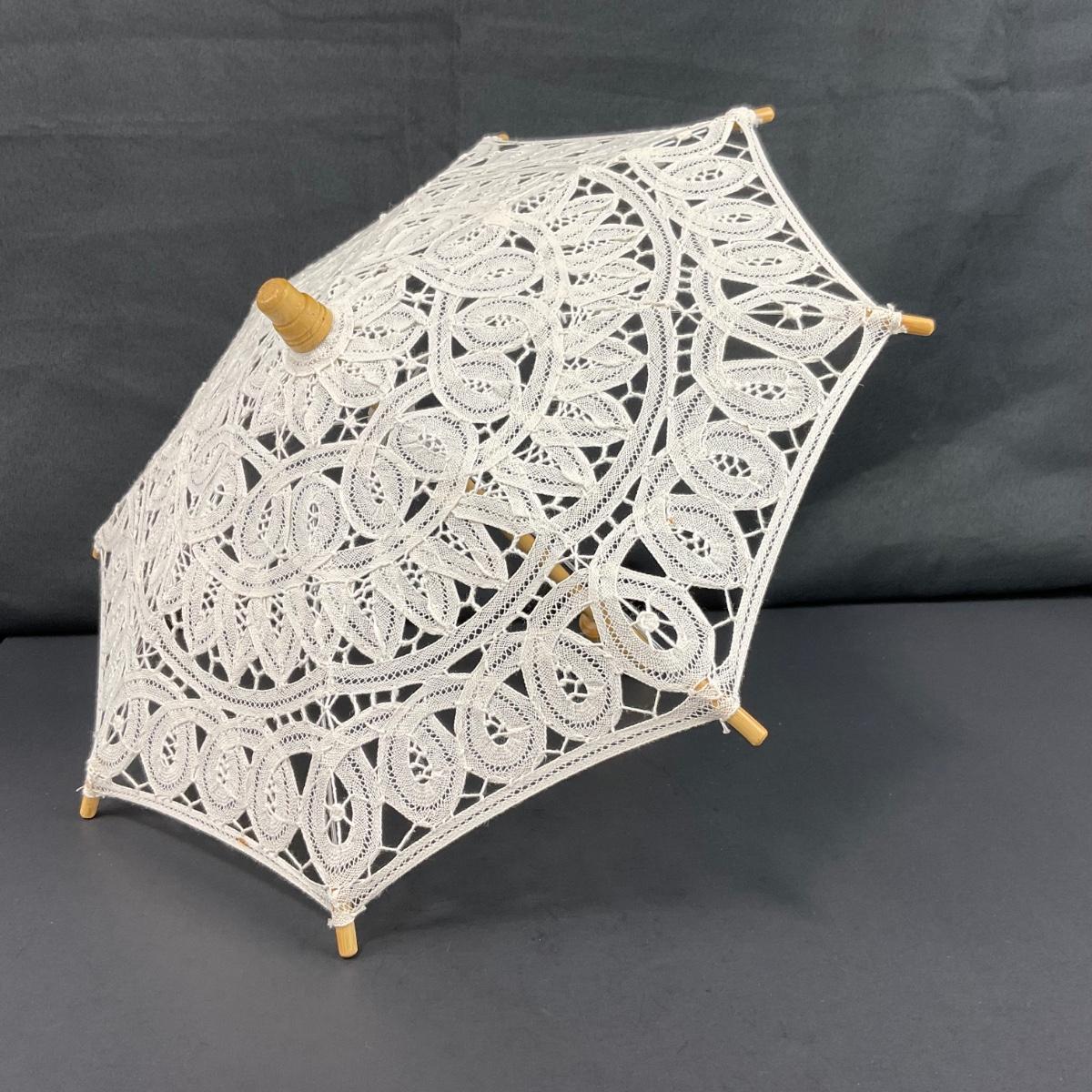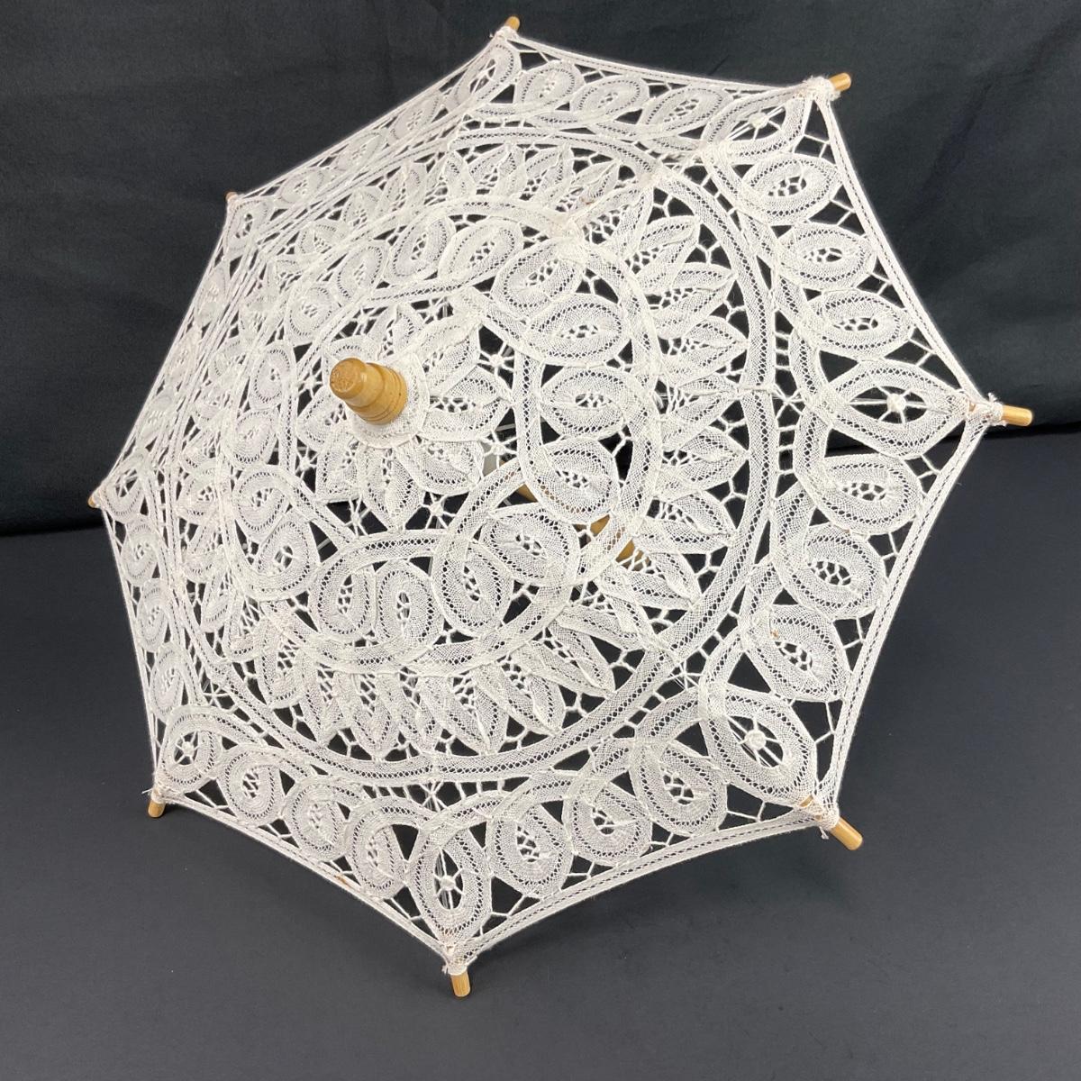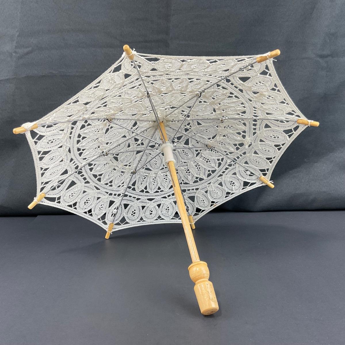 One vintage small white lace parasol. Opens and closes with ease. This piece has no damage, and appears to be in great shape with no visable chips, cracks, or broken pieces. Please see photos for details and condition. Any condition statement is given as a courtesy to a client, is an opinion, and should not be treated as a statement of fact. Reference to condition written, oral or within a condition report shall not be regarded as a full account of condition and may not include all defects, alterations, or restorations. Absence of a condition report does not imply a lot is flawless or lacking imperfections or damage. Katherine’s Auction & Appraisal Service shall have no responsibility for any error or omission. Returns shall not be accepted on the basis of condition. ::: Shipping is available on this lot. If you require shipping you must let us know at the close of the auction. We will coordinate with you after the item has been won. Shipping fees will include insurance up to or exceeding the value of all items being mailed. If you have any questions regarding this lot please contact the auctioneer either via this website, by direct email or by phone. PICK UP TIMES and other important information can be found in the TERMS and DESCRIPTION of the auction. Please take a look for pertinent information. Thanks!