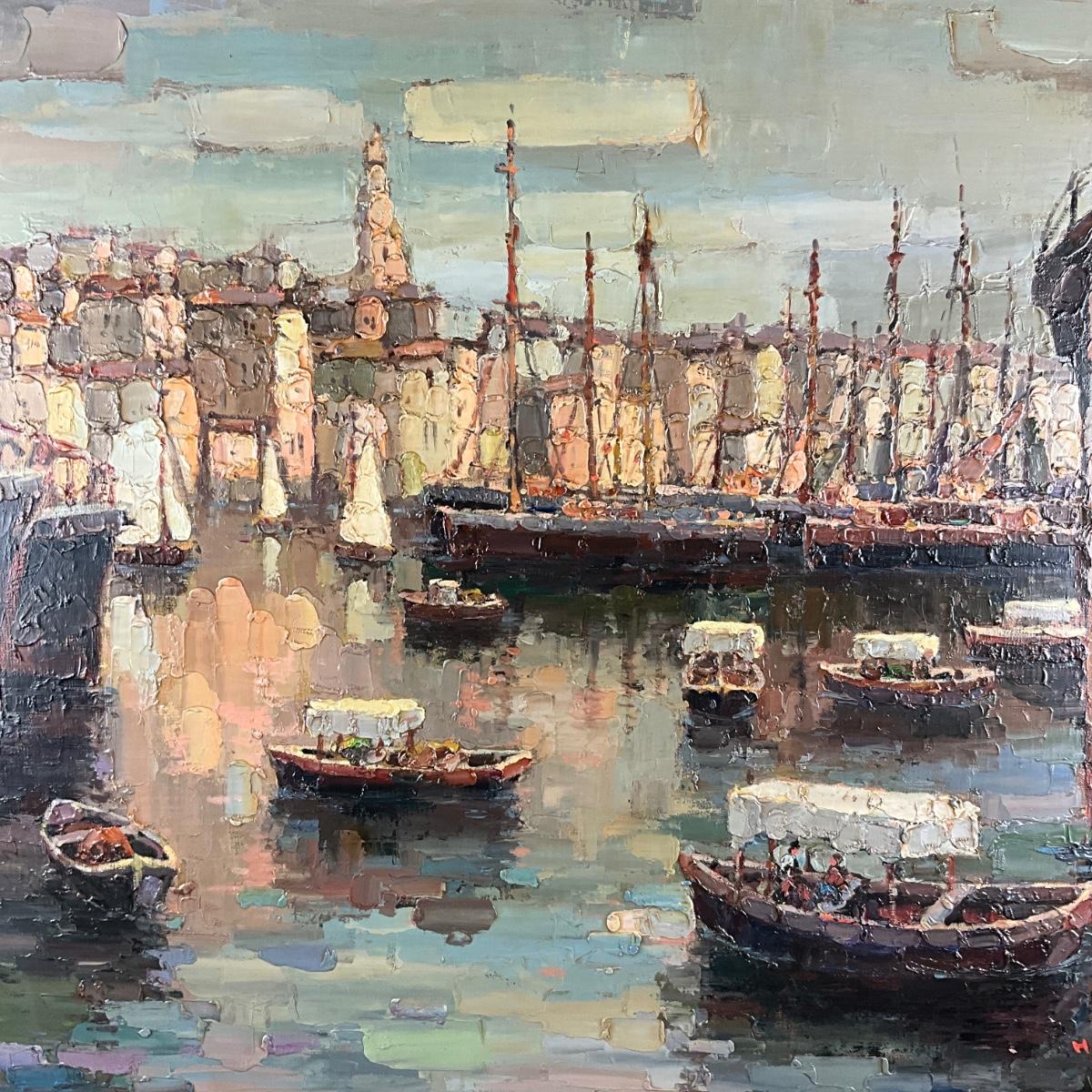 017 Harbor Scene Oil Painting By H. Chul Sung