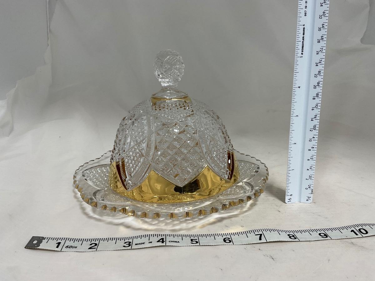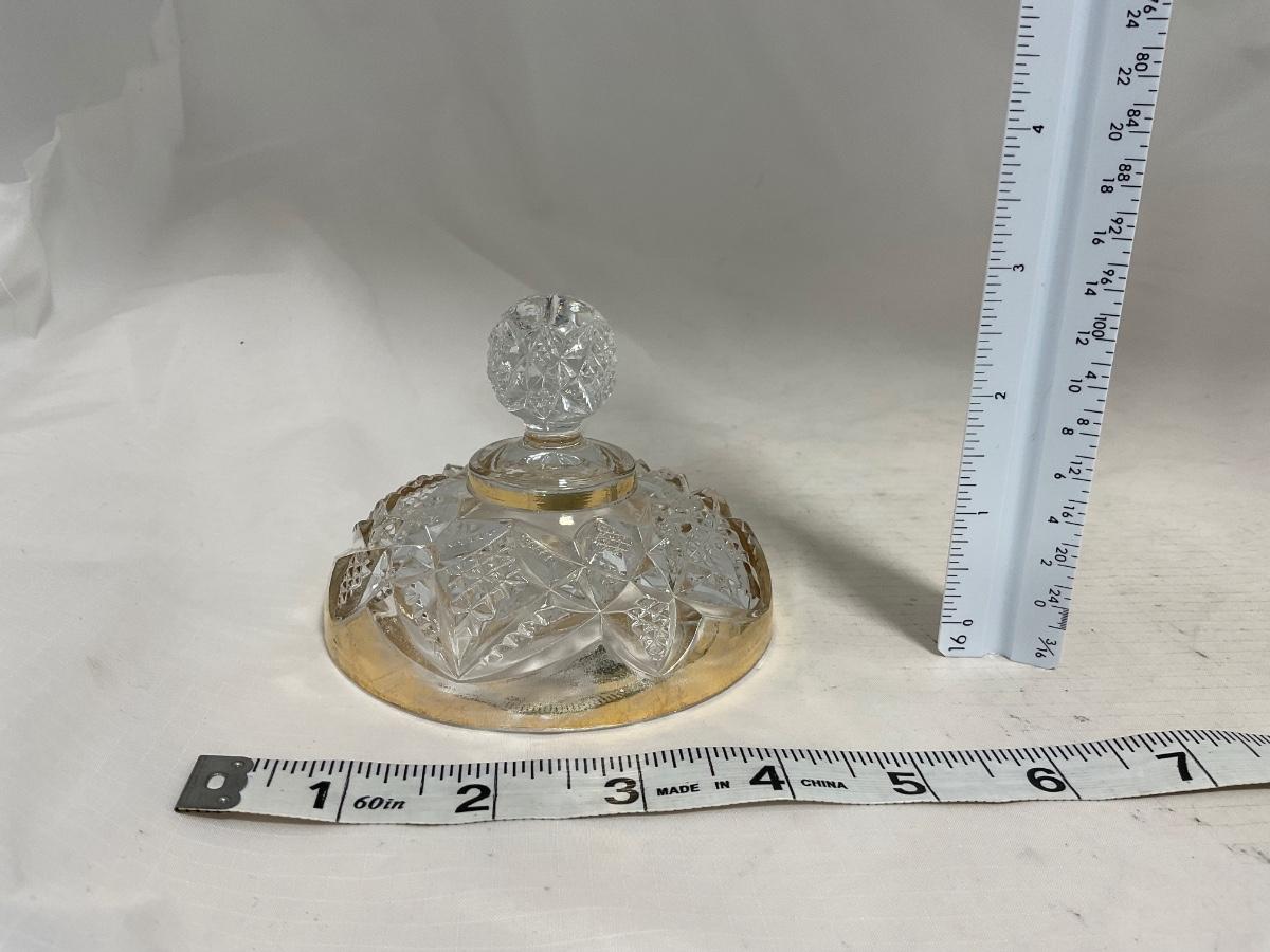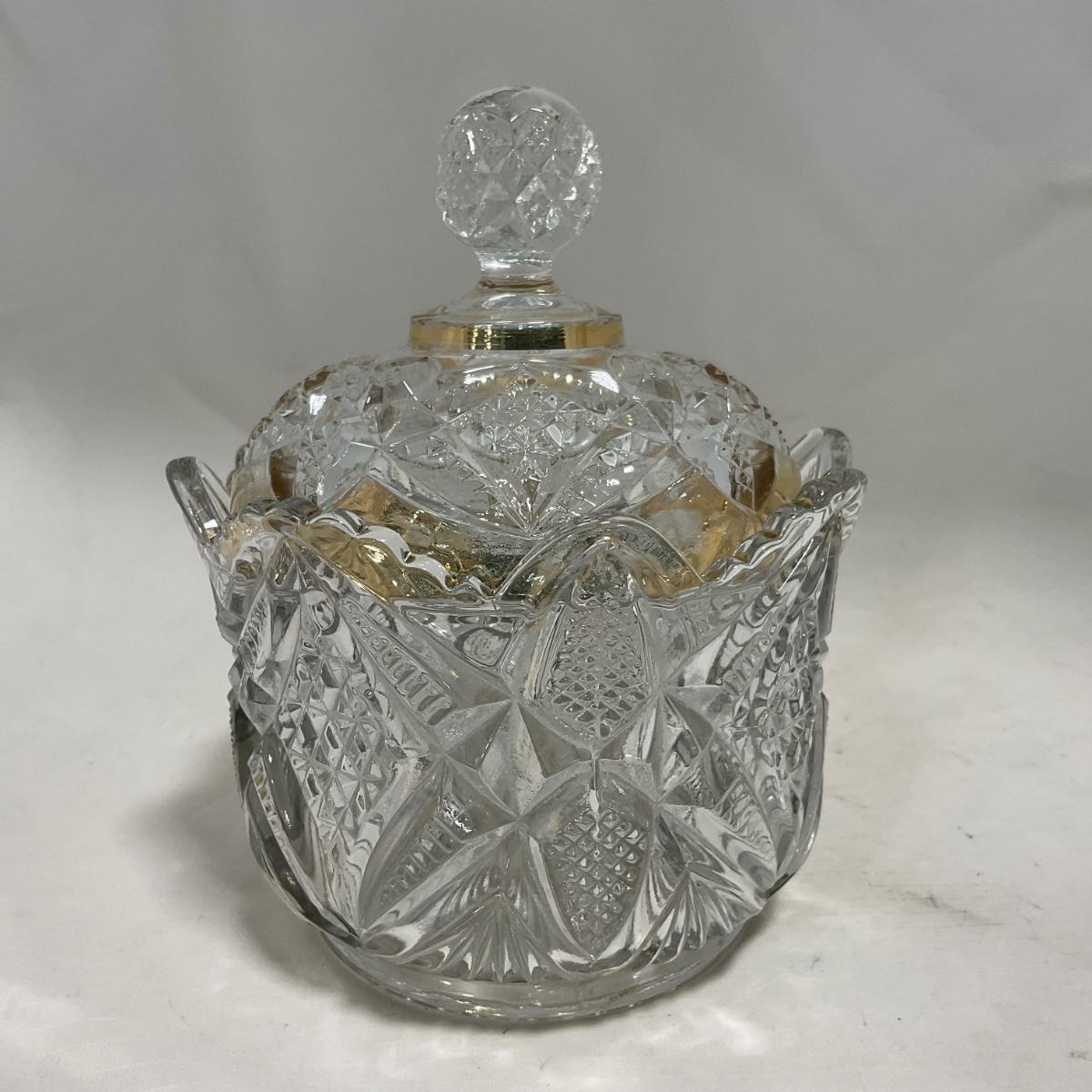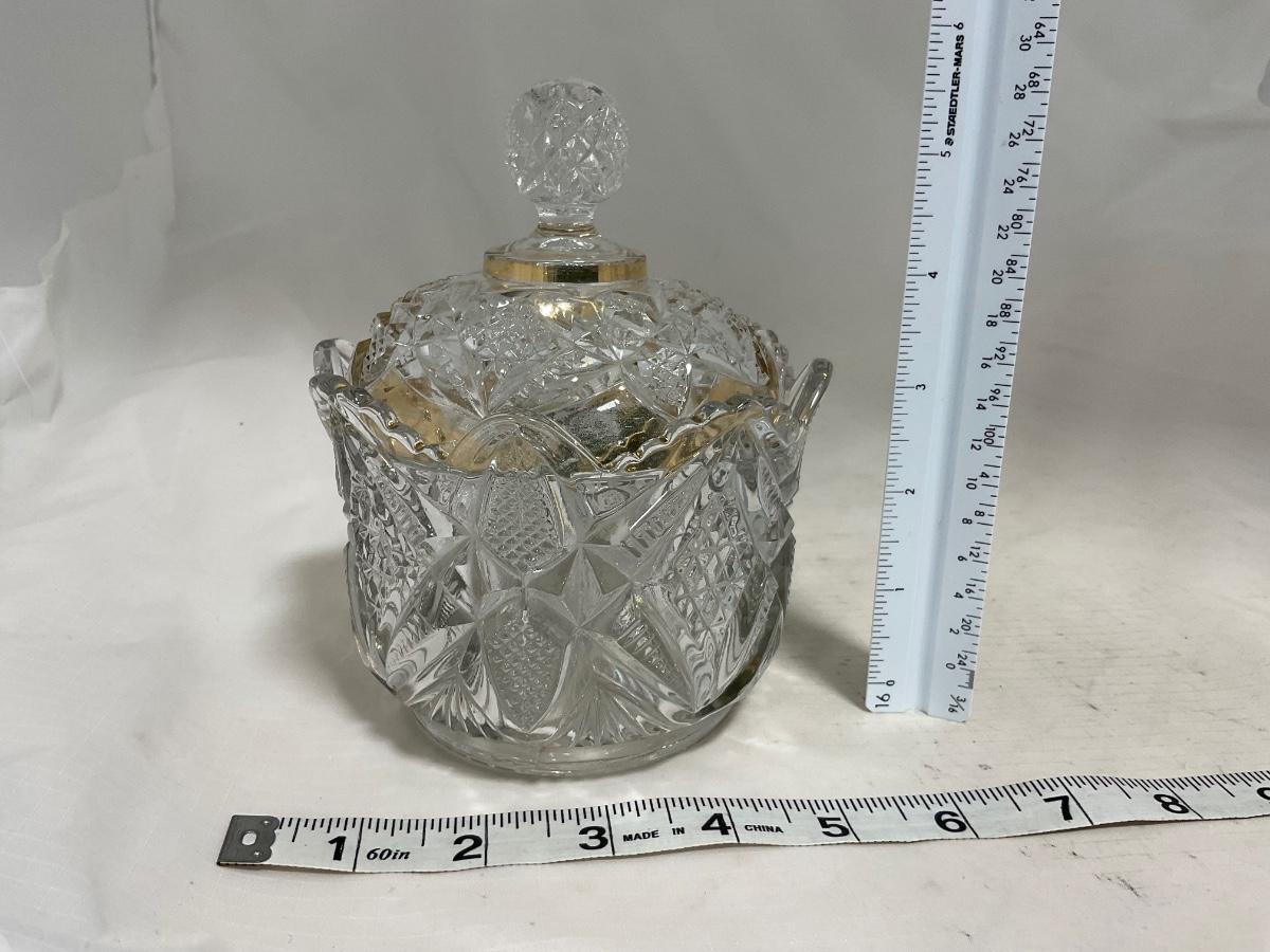 -116- Heavy Clear with Gold Accents | Covered Butter Dish | Lidded Jar | Jar | Creamer & Sugar