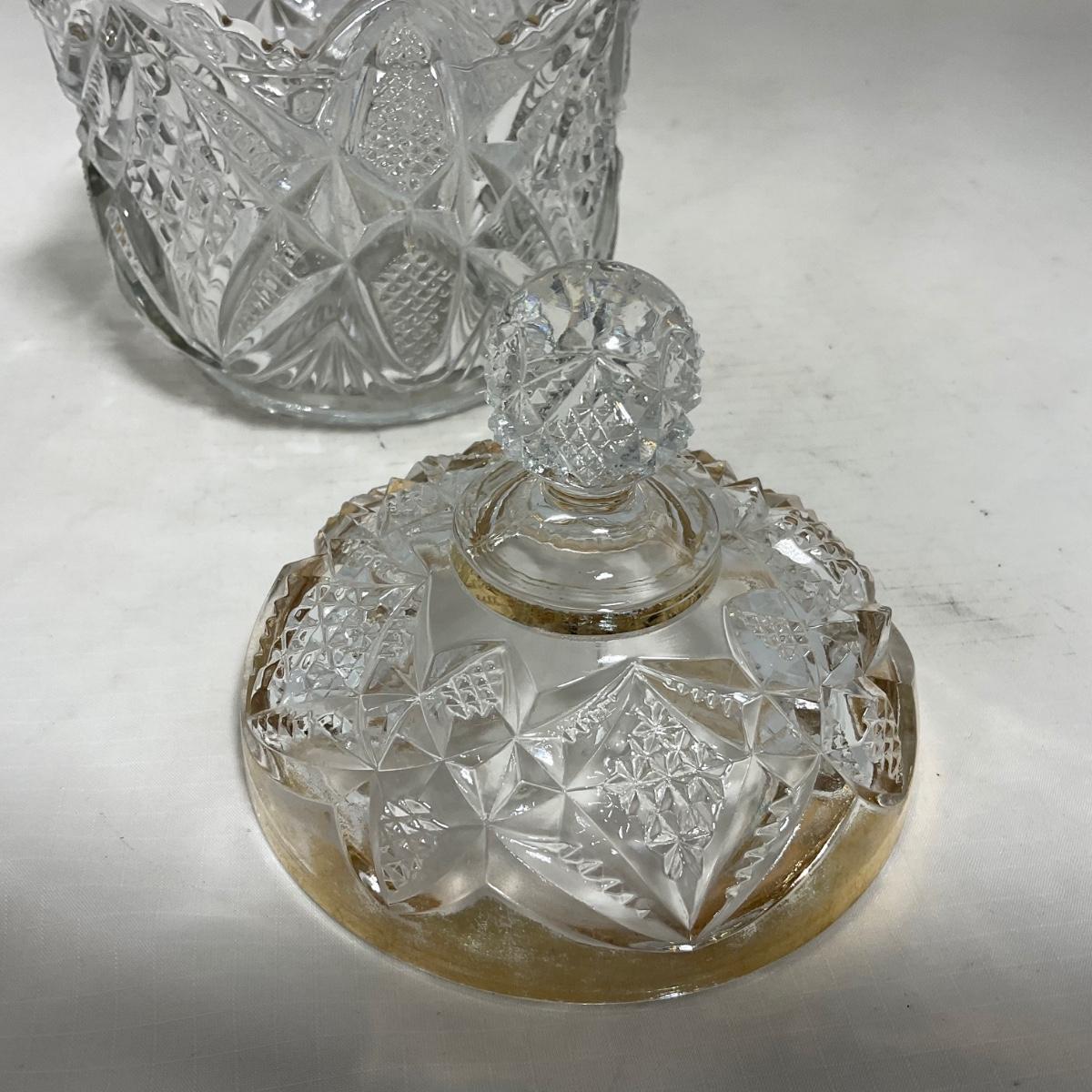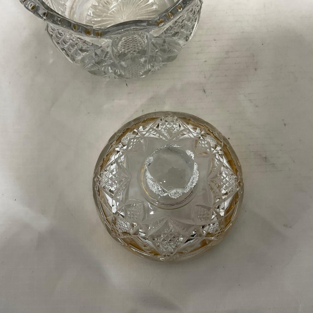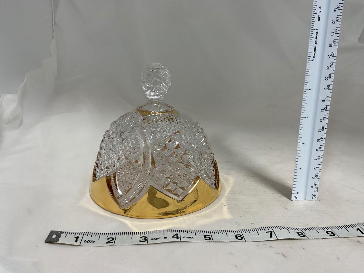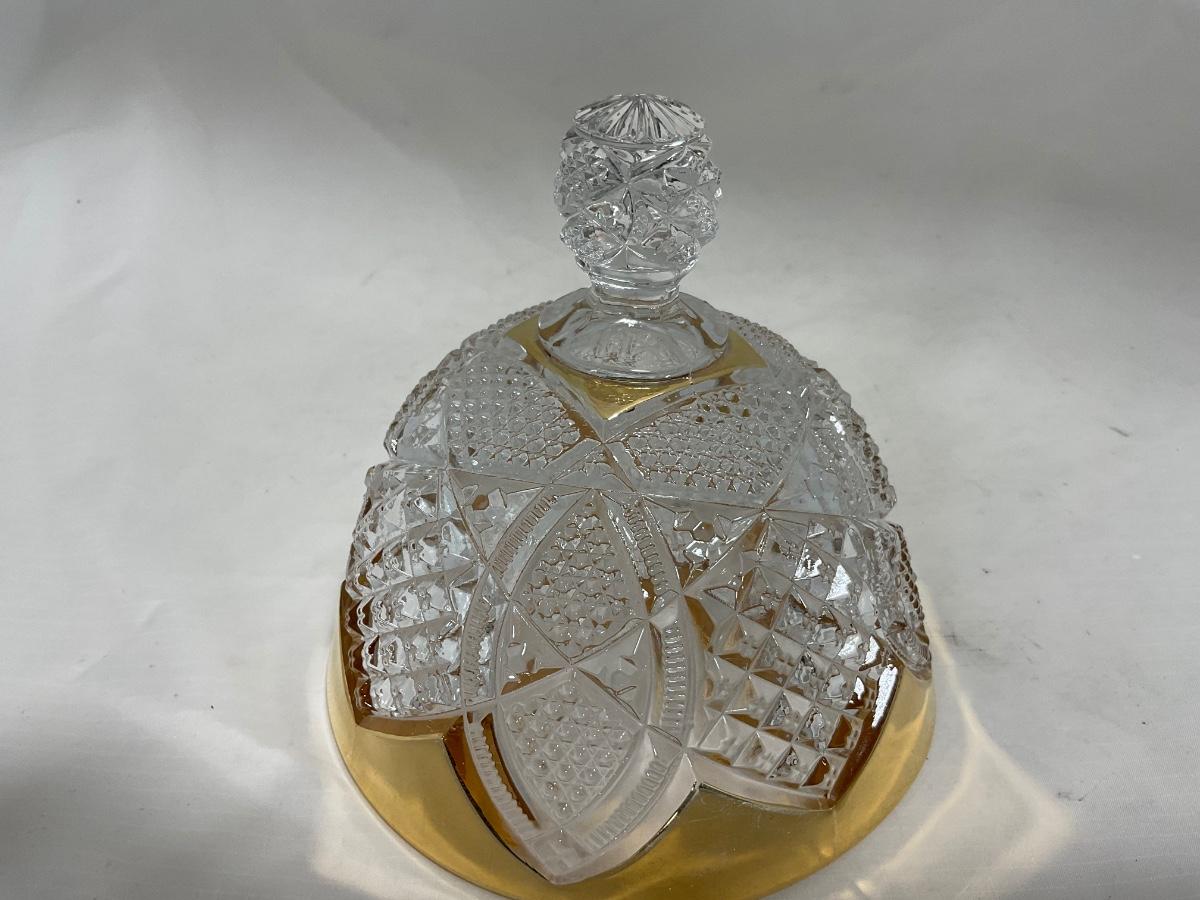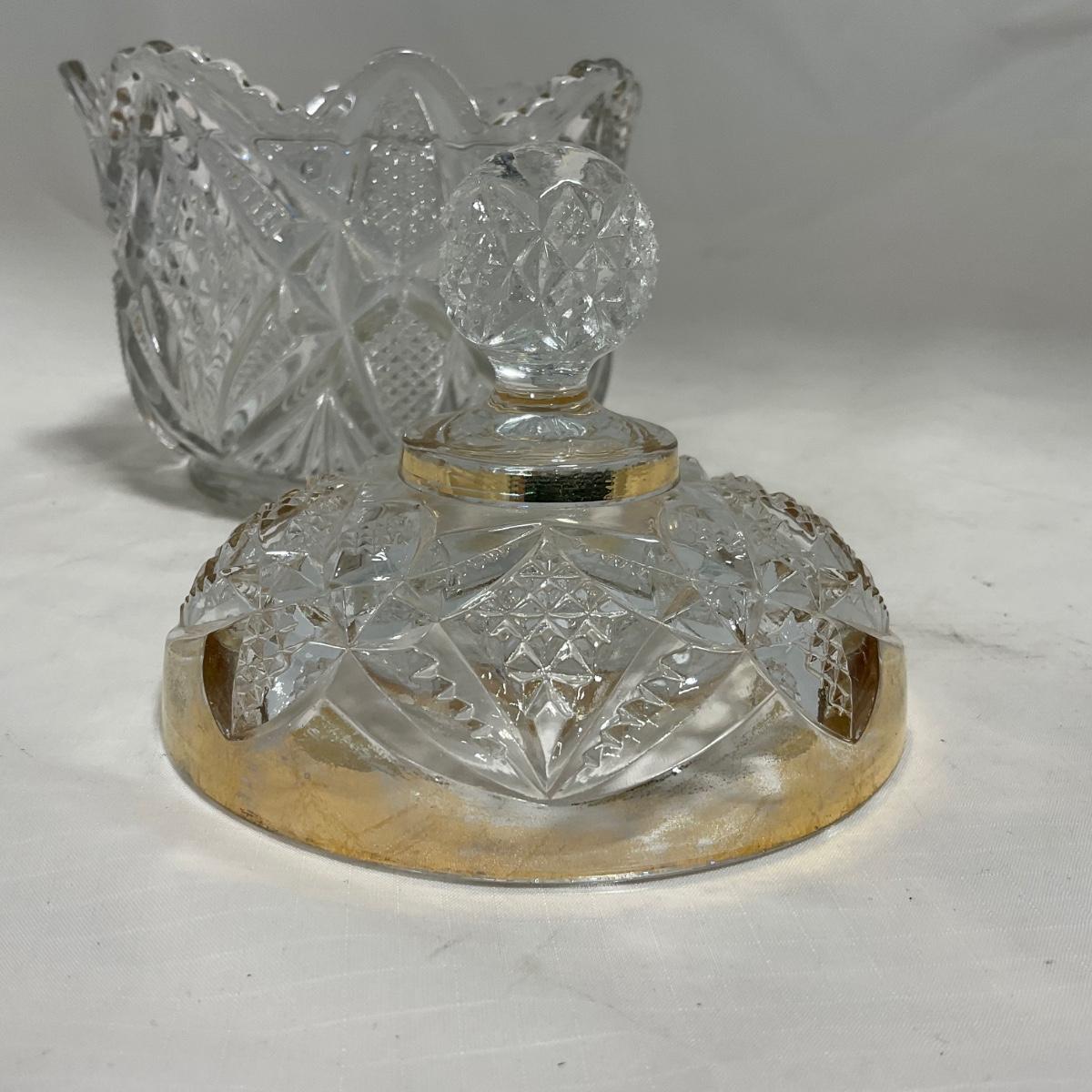 -116- Heavy Clear with Gold Accents | Covered Butter Dish | Lidded Jar | Jar | Creamer & Sugar