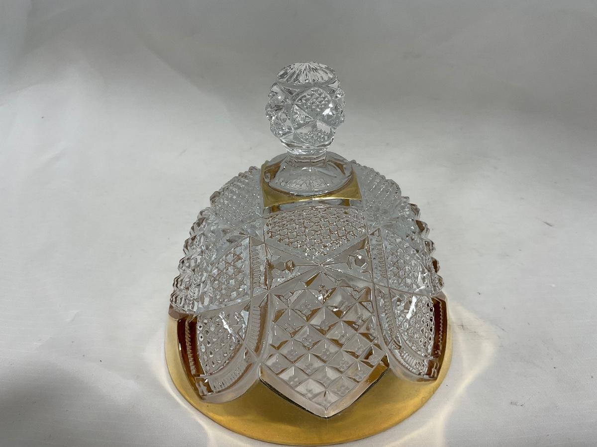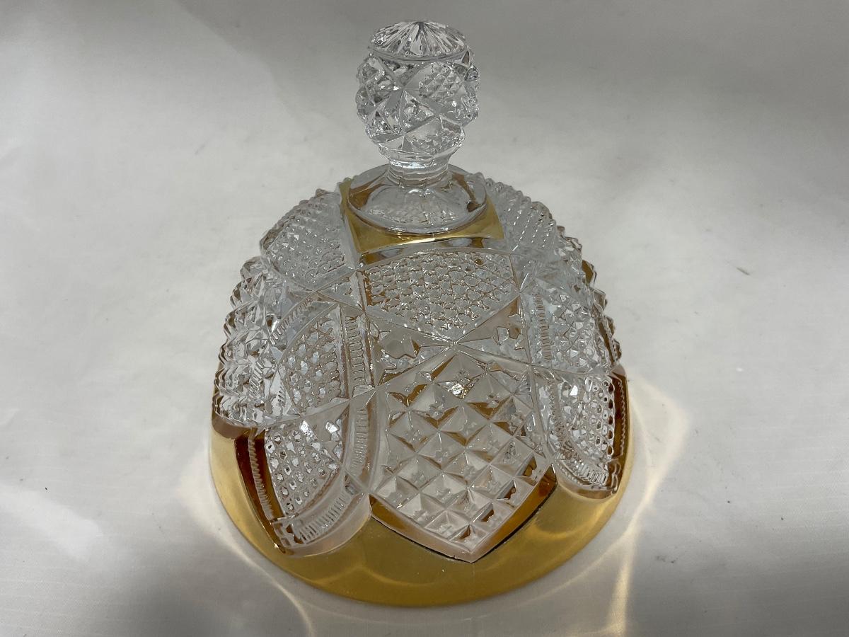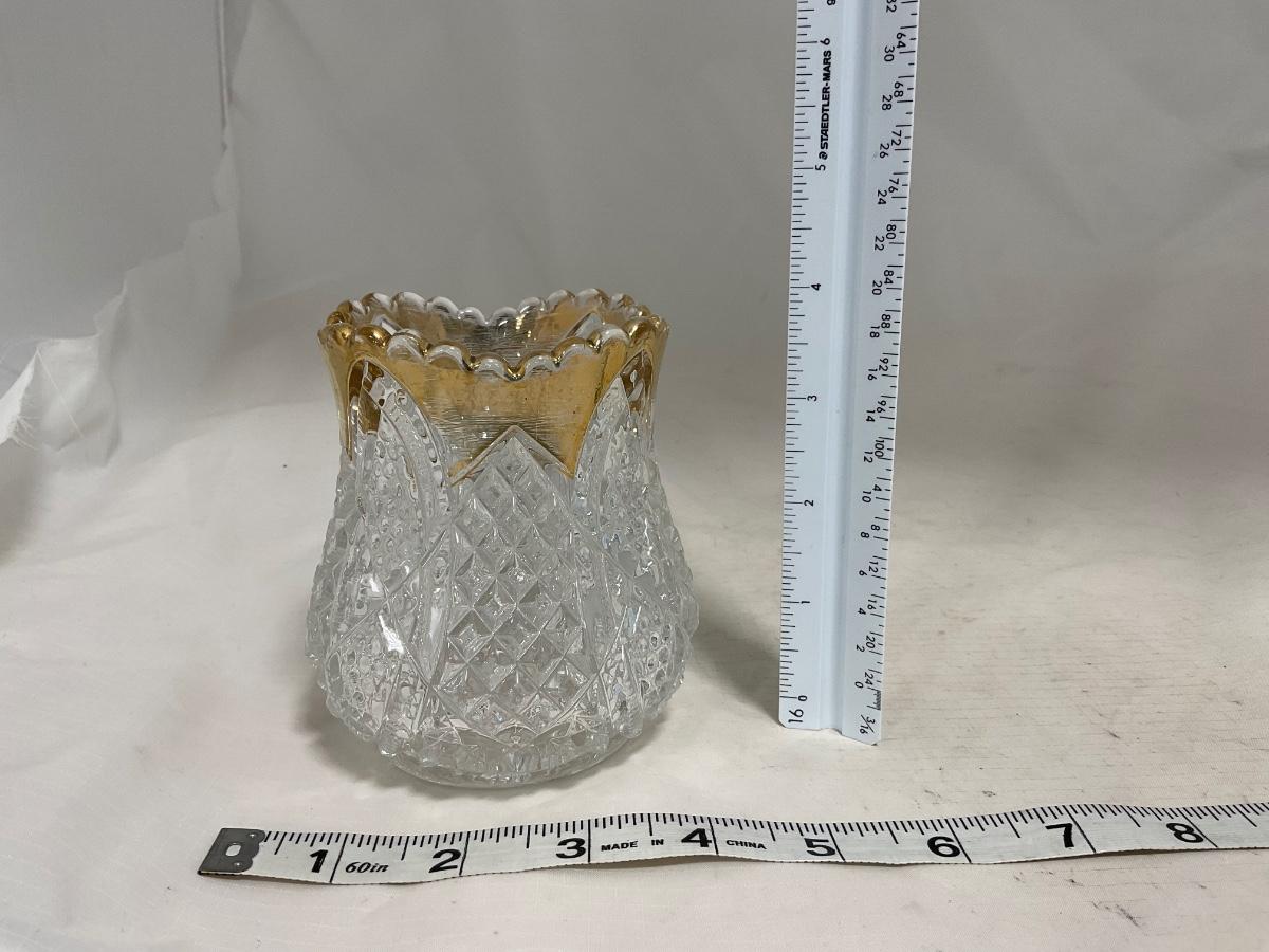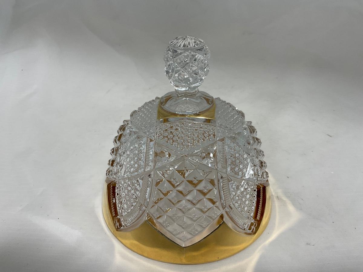 -116- Heavy Clear with Gold Accents | Covered Butter Dish | Lidded Jar | Jar | Creamer & Sugar