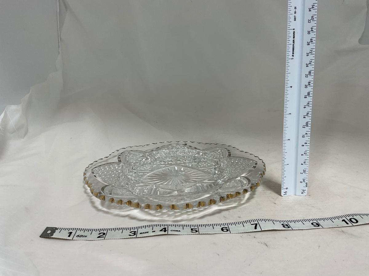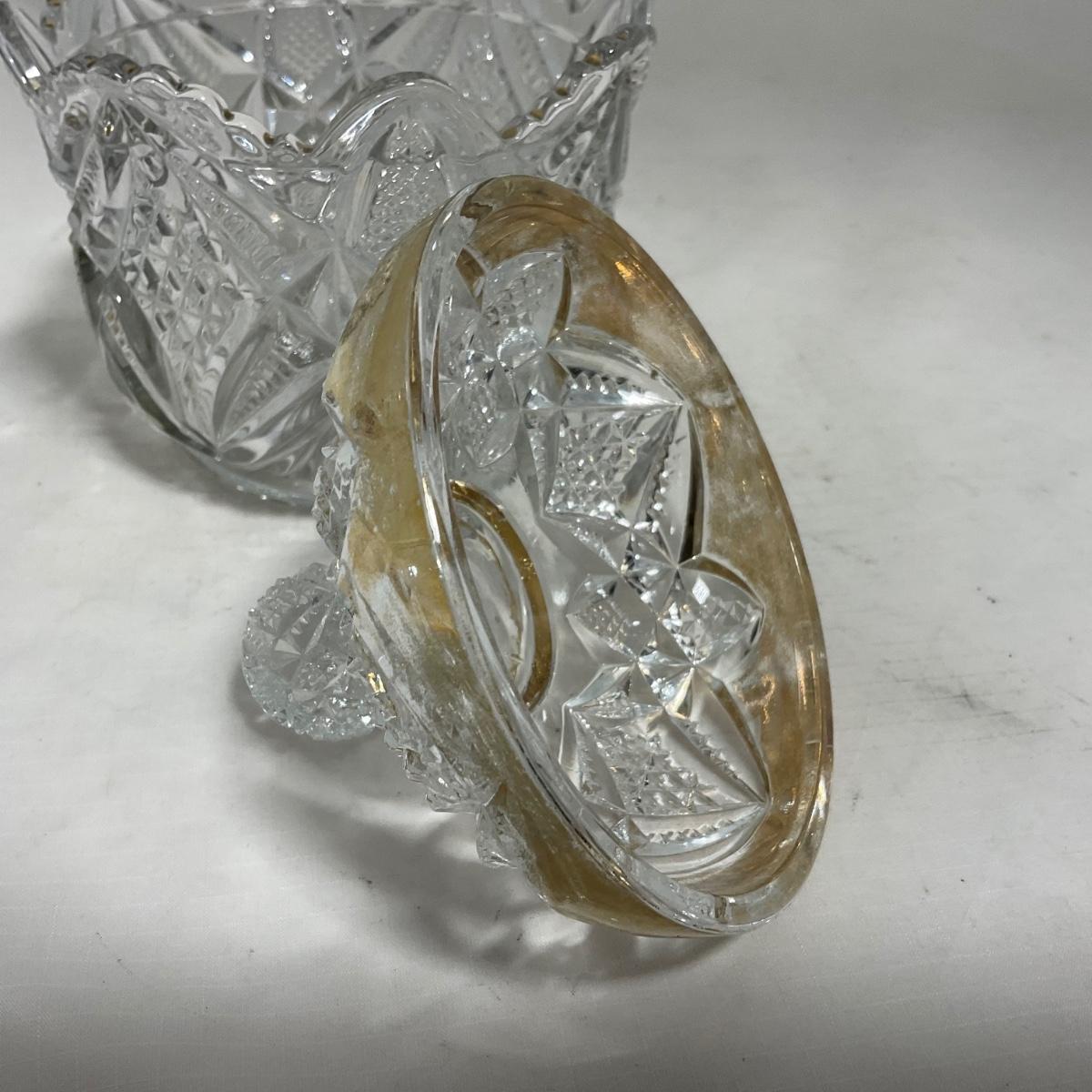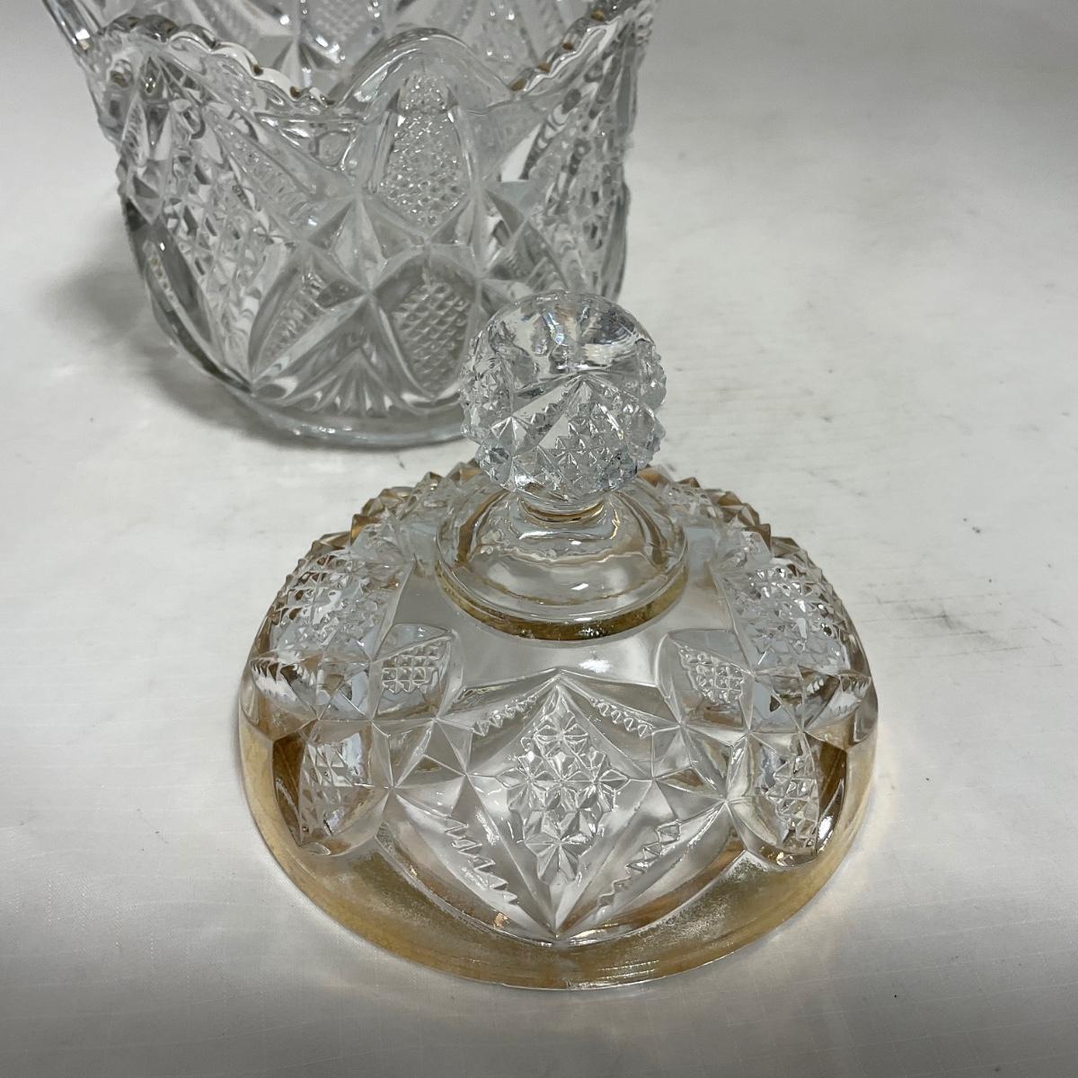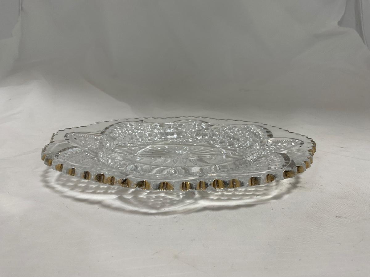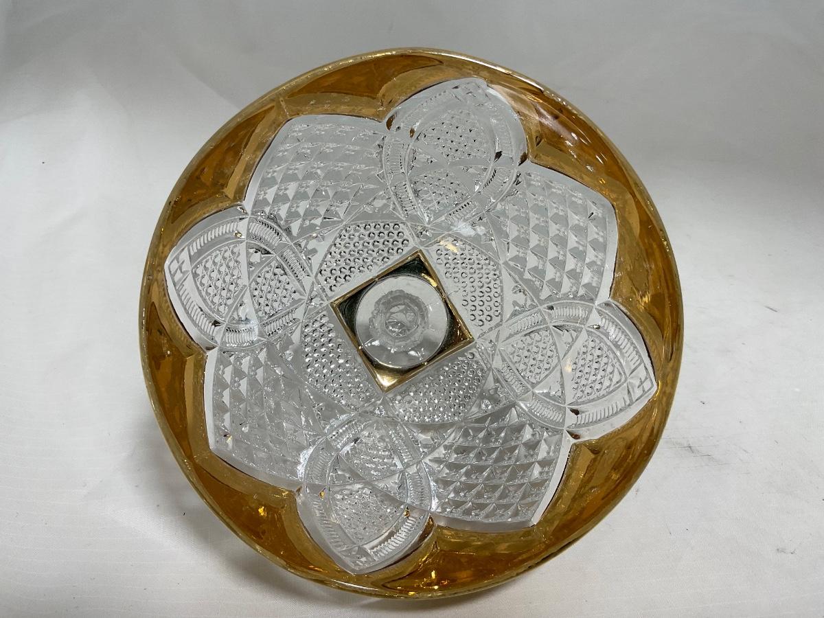 Heavy clear glass with gold accents covered butter dish, lidded jar, jar, and creamer and sugar set. Stunning set perfect for any family table this holiday season. Please see photos for details and condition. ::: Shipping is available on this lot. If you require shipping you must let us know at the close of the auction. We will coordinate with you after the item has been won. Shipping fees will include insurance up to or exceeding the value of all items being mailed. If you have any questions regarding this lot please contact the auctioneer either via this website, by direct email or by phone. PICK UP TIMES and other important information can be found in the TERMS and DESCRIPTION of the auction. Please take a look for pertinent information. Thanks!