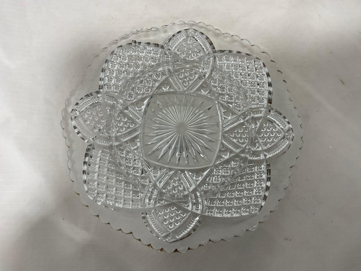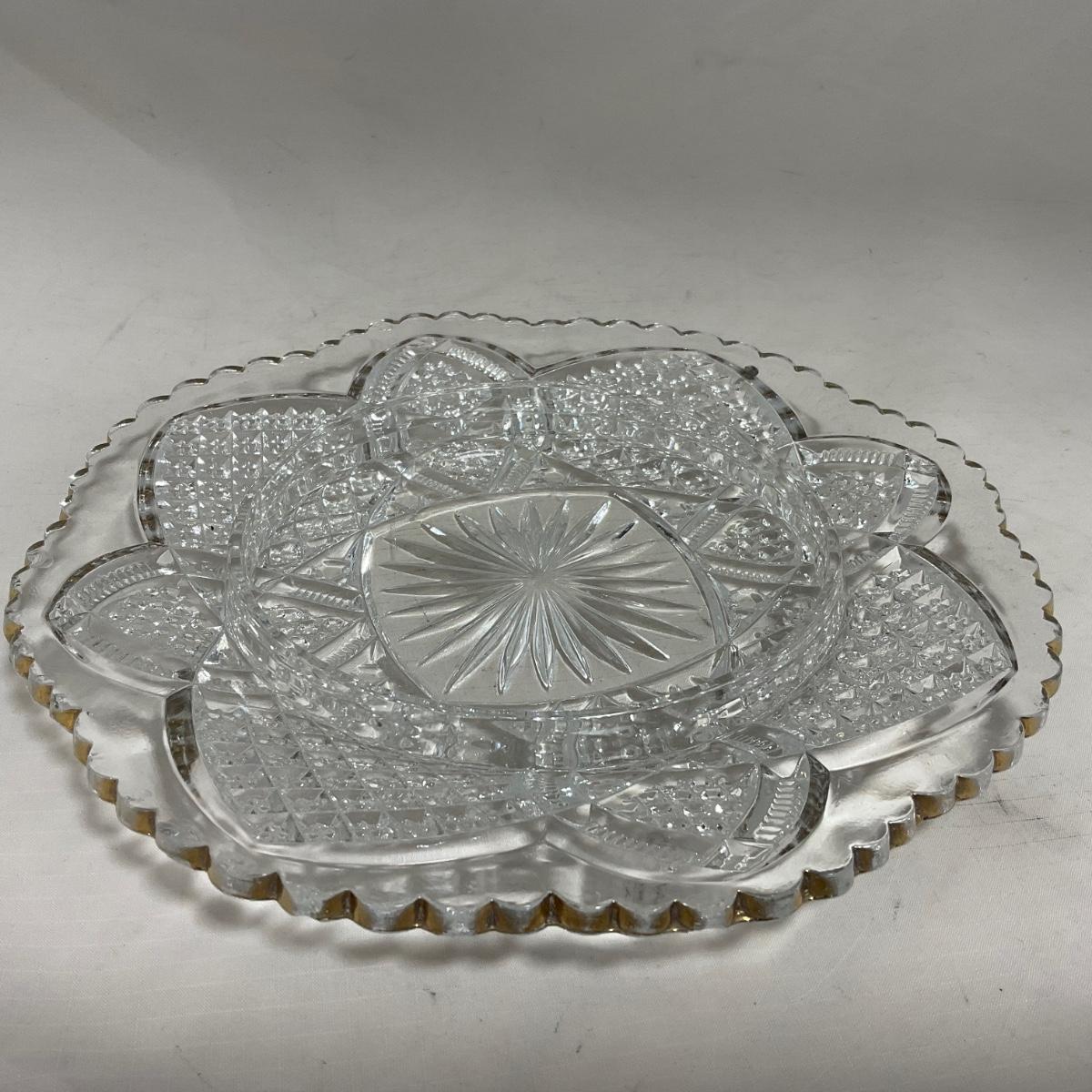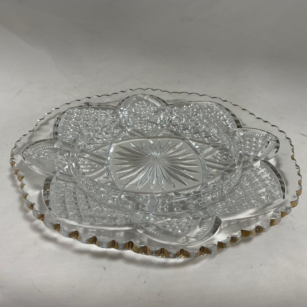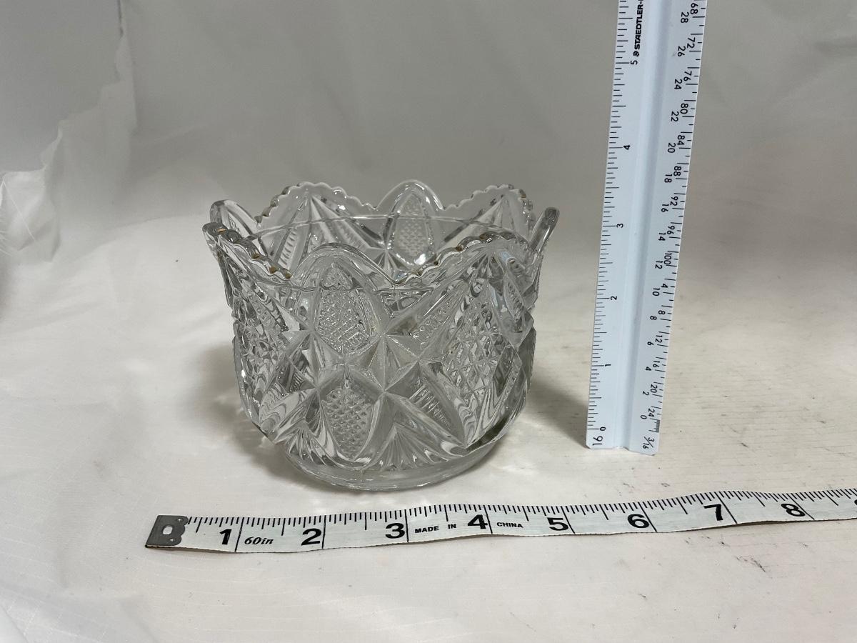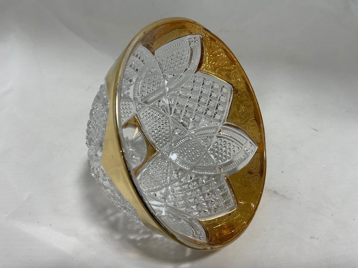 Heavy clear glass with gold accents covered butter dish, lidded jar, jar, and creamer and sugar set. Stunning set perfect for any family table this holiday season. Please see photos for details and condition. ::: Shipping is available on this lot. If you require shipping you must let us know at the close of the auction. We will coordinate with you after the item has been won. Shipping fees will include insurance up to or exceeding the value of all items being mailed. If you have any questions regarding this lot please contact the auctioneer either via this website, by direct email or by phone. PICK UP TIMES and other important information can be found in the TERMS and DESCRIPTION of the auction. Please take a look for pertinent information. Thanks!