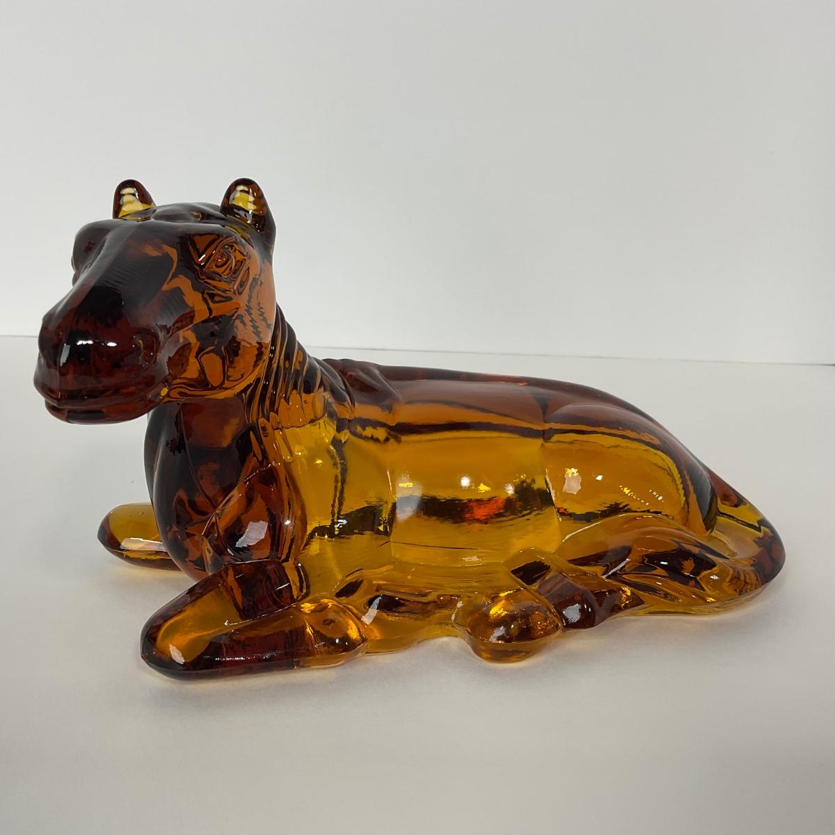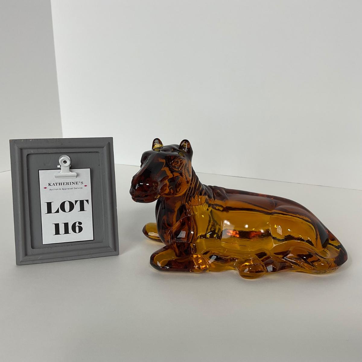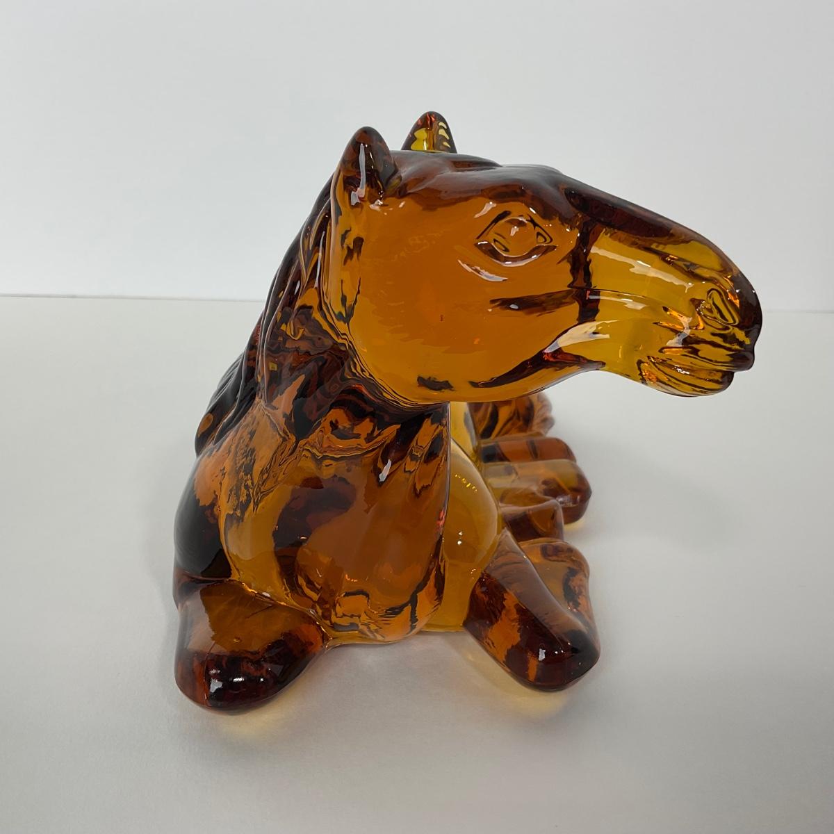 One LE Smith amber colored laying down horse figure. This piece has no damage, and appears to be in great shape with no visable chips, cracks, or broken pieces. 5 inches tall by 8 1/2 inches long. Please see photos for details and condition. Any condition statement is given as a courtesy to a client, is an opinion, and should not be treated as a statement of fact. Reference to condition written, oral or within a condition report shall not be regarded as a full account of condition and may not include all defects, alterations, or restorations. Absence of a condition report does not imply a lot is flawless or lacking imperfections or damage. Katherine’s Auction & Appraisal Service shall have no responsibility for any error or omission. Returns shall not be accepted on the basis of condition. ::: Shipping is available on this lot. If you require shipping you must let us know at the close of the auction. We will coordinate with you after the item has been won. Shipping fees will include insurance up to or exceeding the value of all items being mailed. If you have any questions regarding this lot please contact the auctioneer either via this website, by direct email or by phone. PICK UP TIMES and other important information can be found in the TERMS and DESCRIPTION of the auction. Please take a look for pertinent information. Thanks!