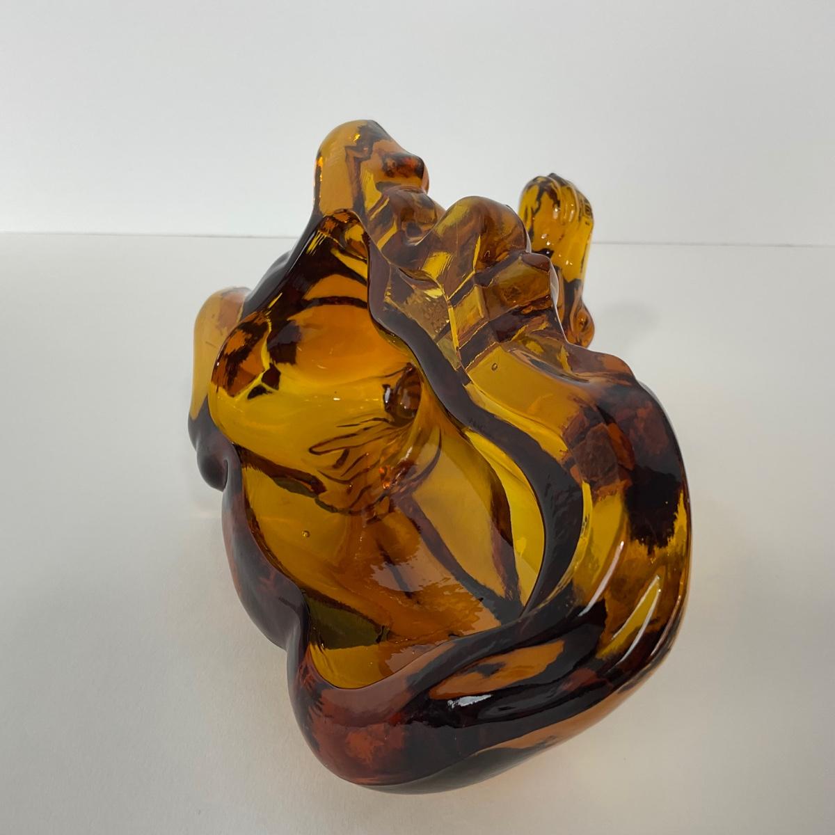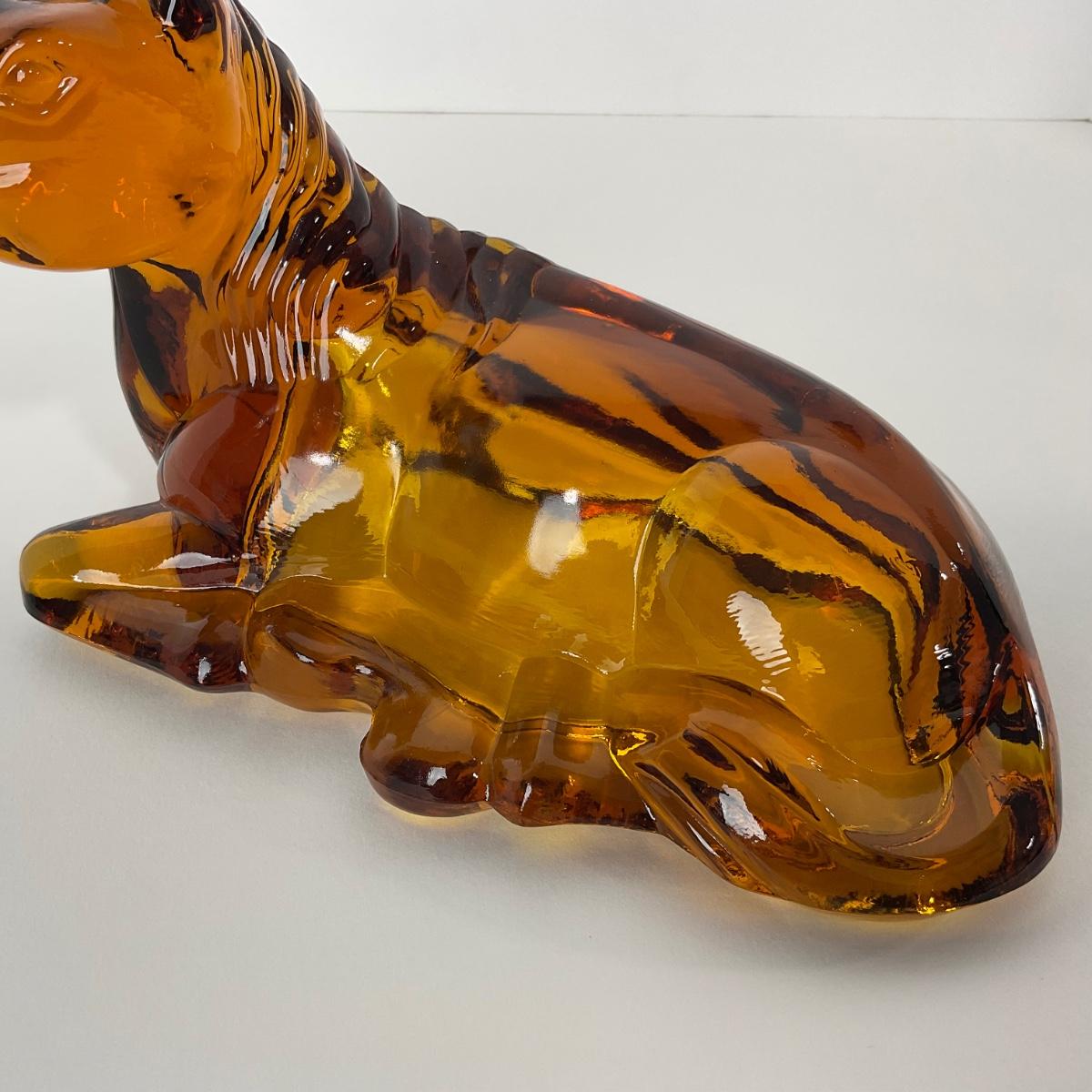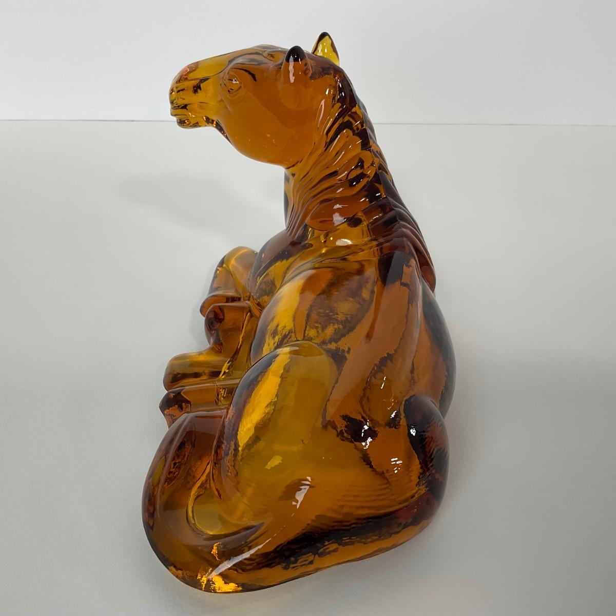 One LE Smith amber colored laying down horse figure. This piece has no damage, and appears to be in great shape with no visable chips, cracks, or broken pieces. 5 inches tall by 8 1/2 inches long. Please see photos for details and condition. Any condition statement is given as a courtesy to a client, is an opinion, and should not be treated as a statement of fact. Reference to condition written, oral or within a condition report shall not be regarded as a full account of condition and may not include all defects, alterations, or restorations. Absence of a condition report does not imply a lot is flawless or lacking imperfections or damage. Katherine’s Auction & Appraisal Service shall have no responsibility for any error or omission. Returns shall not be accepted on the basis of condition. ::: Shipping is available on this lot. If you require shipping you must let us know at the close of the auction. We will coordinate with you after the item has been won. Shipping fees will include insurance up to or exceeding the value of all items being mailed. If you have any questions regarding this lot please contact the auctioneer either via this website, by direct email or by phone. PICK UP TIMES and other important information can be found in the TERMS and DESCRIPTION of the auction. Please take a look for pertinent information. Thanks!