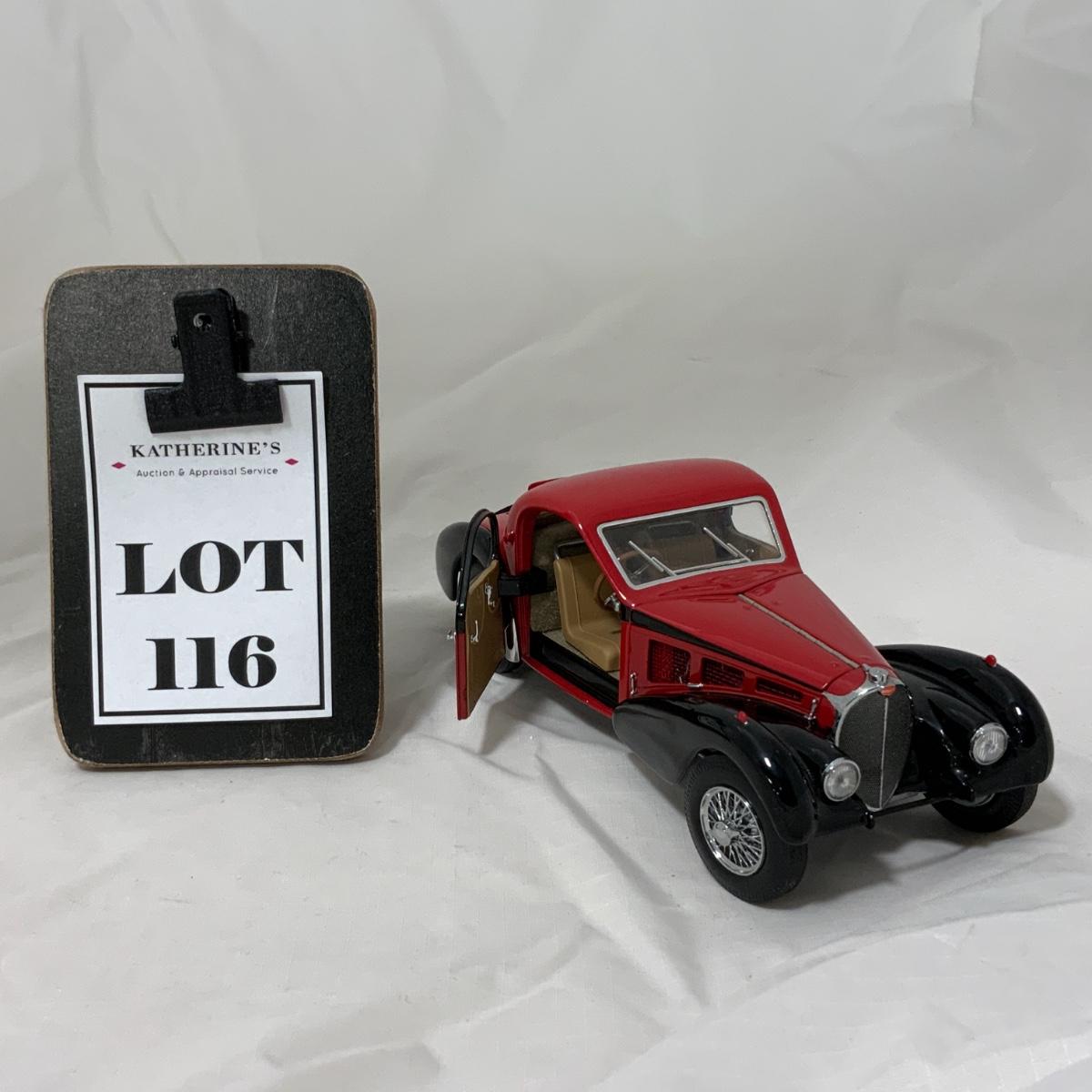 From the Estate of Peter Radovanovich: Franklin Mint Die-Cast 1936 Bugatti Type 57SC. Car appears to be complete and looks excellent! Car does not come with original box. Please see photos for details and condition. ::: Shipping is available on this lot. If you require shipping you must let us know at the close of the auction. We will coordinate with you after the item has been won. Shipping fees will include insurance up to or exceeding the value of all items being mailed. If you have any questions regarding this lot please contact the auctioneer either via this website, by direct email or by phone. PICK UP TIMES and other important information can be found in the TERMS and DESCRIPTION of the auction. Please take a look for pertinent information. Thanks!