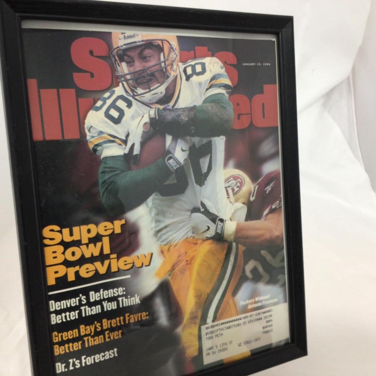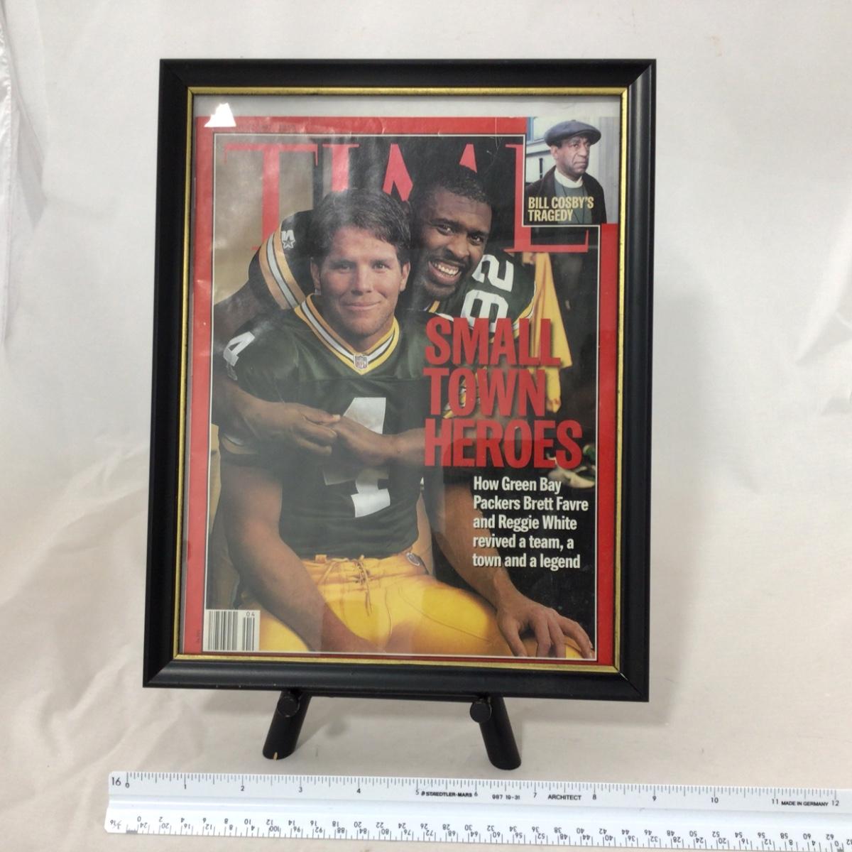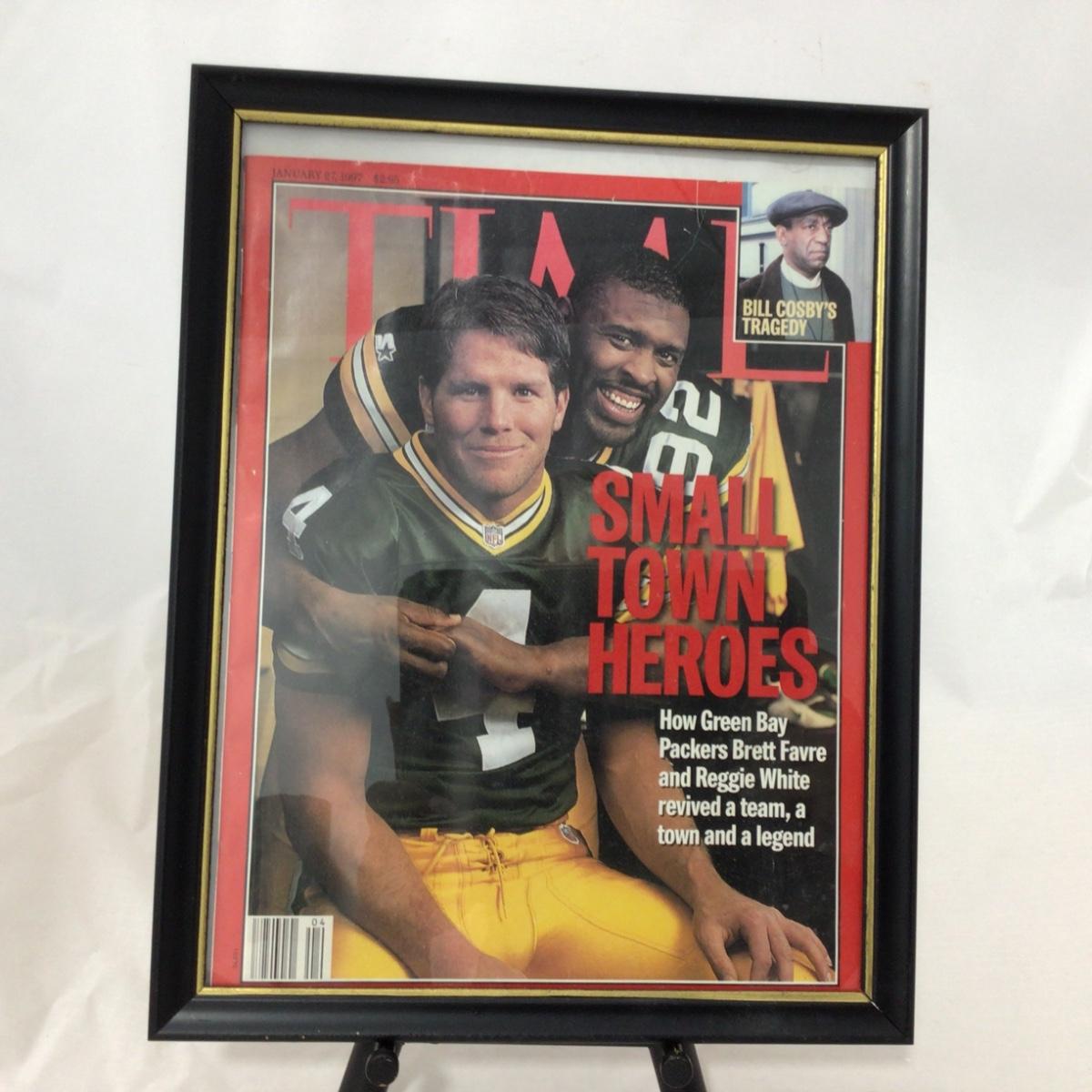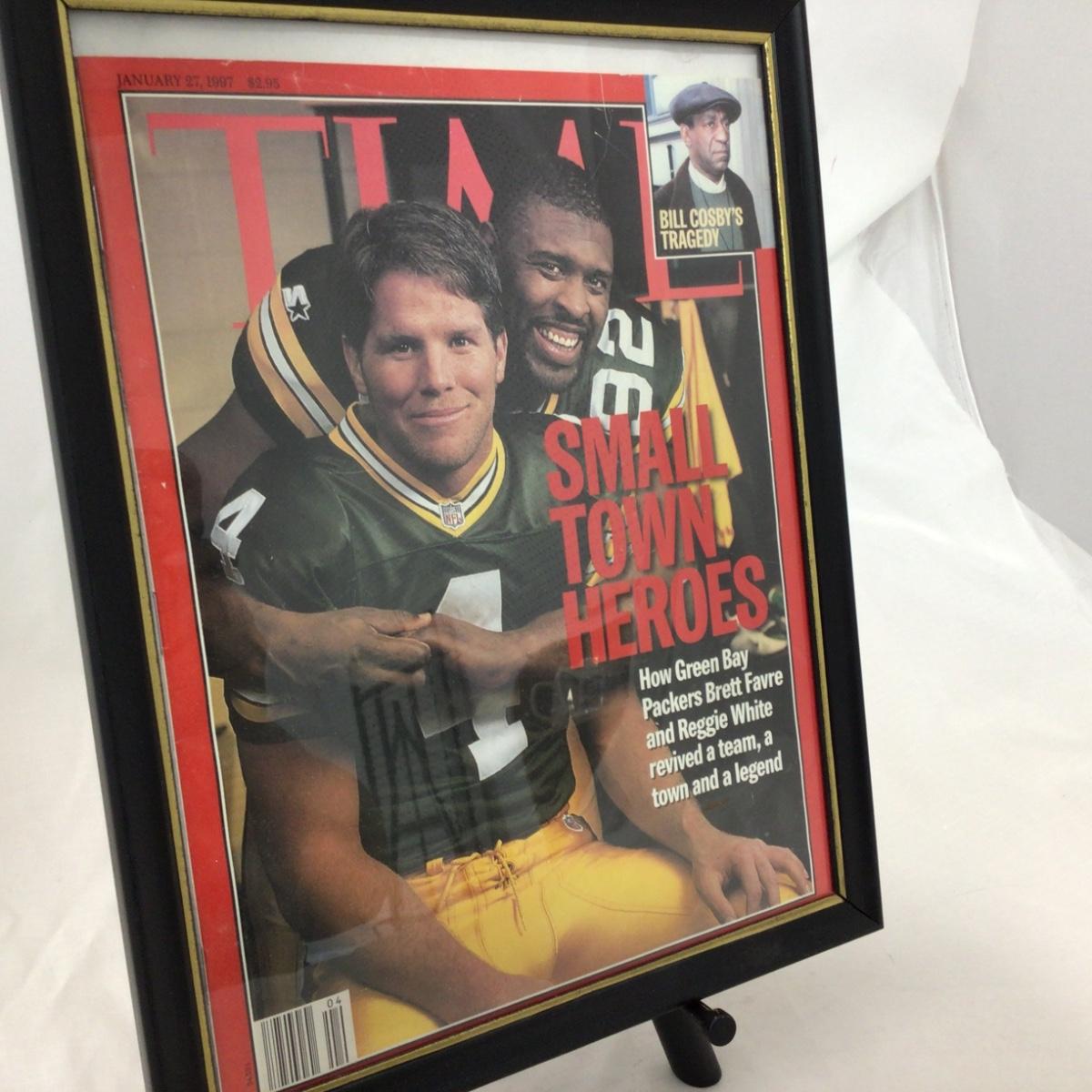 Two framed magazines one time magazine with Reggie White and Brett Favre. One Sports Illustrated Antonio Freeman. Both 9 inches by 11.5 inches. Please see photos for details and condition. ::: Shipping is available on this lot. If you require shipping you must let us know at the close of the auction. We will coordinate with you after the item has been won. Shipping fees will include insurance up to or exceeding the value of all items being mailed. If you have any questions regarding this lot please contact the auctioneer either via this website, by direct email or by phone. PICK UP TIMES and other important information can be found in the TERMS and DESCRIPTION of the auction. Please take a look for pertinent information. Thanks!