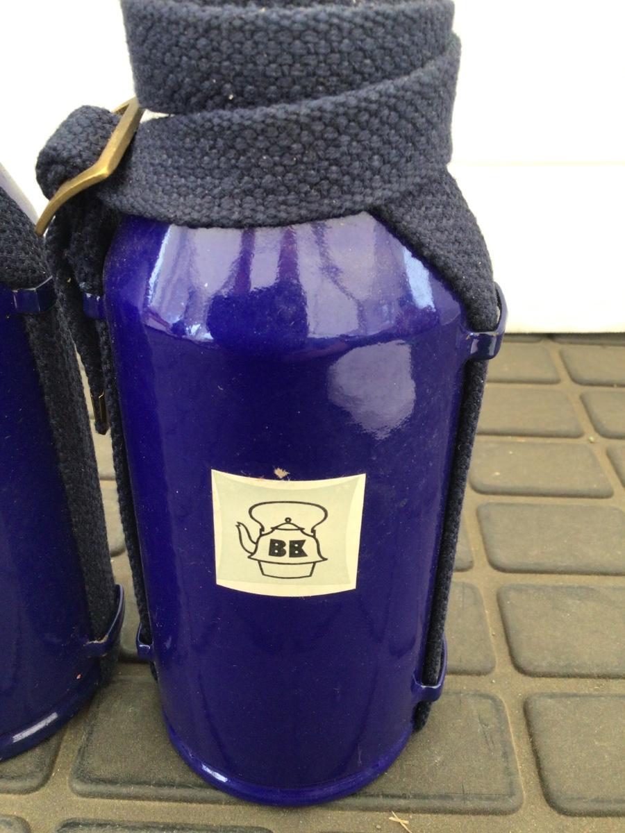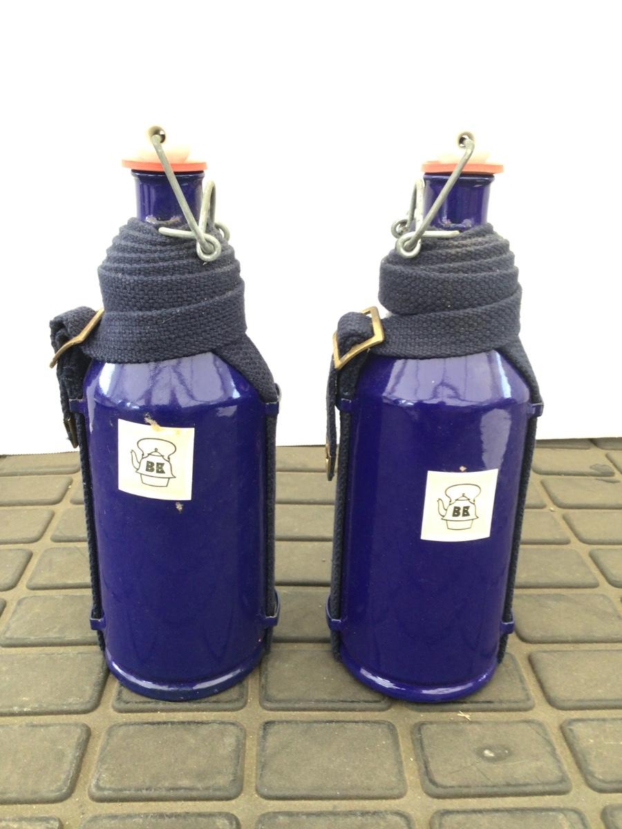 Pair of Dutch WW11 P. W. Canteen Cobalt Blue Enameled Water Bottles. ATB Reproduction
