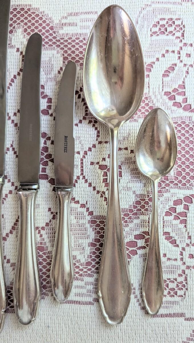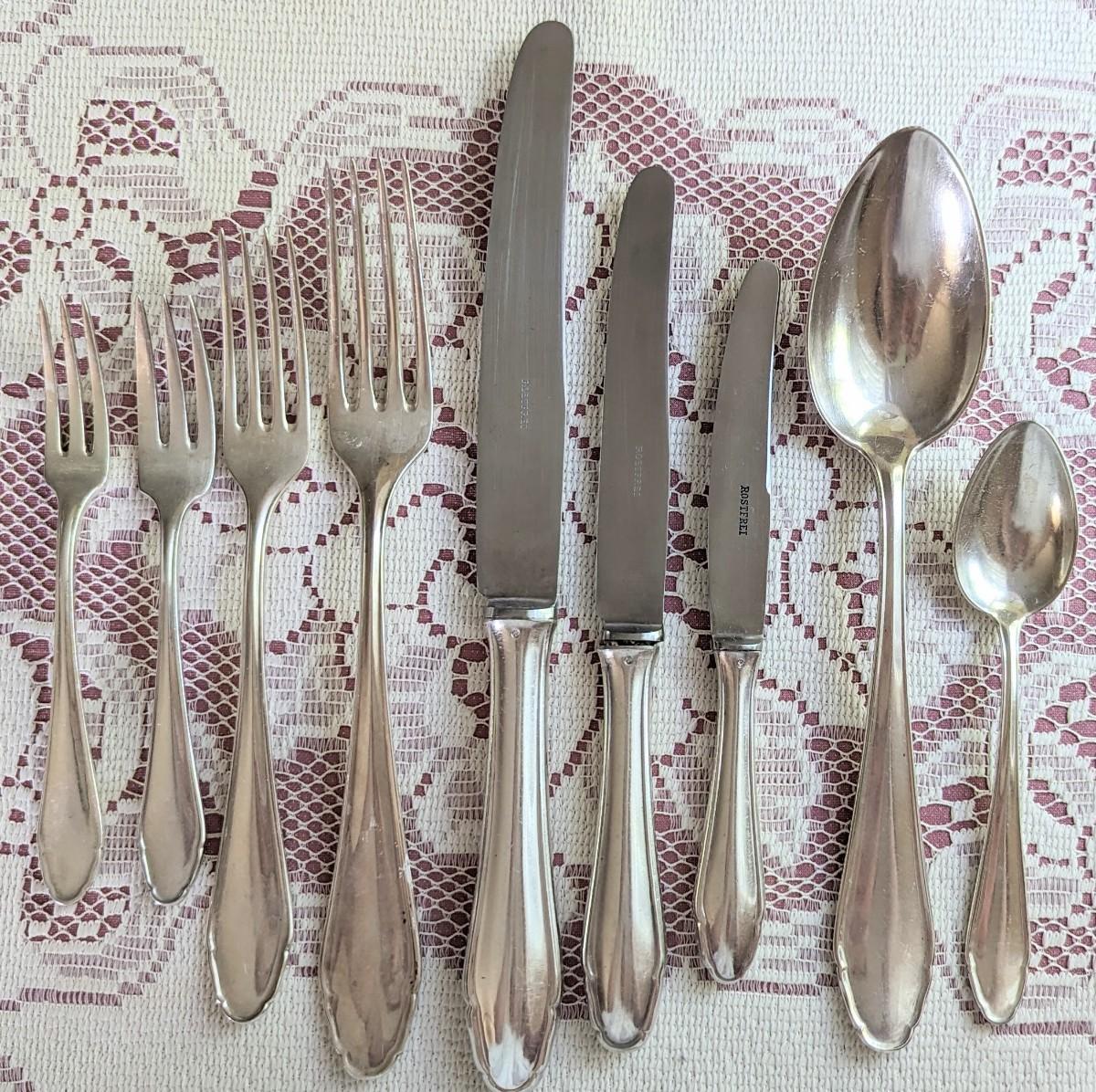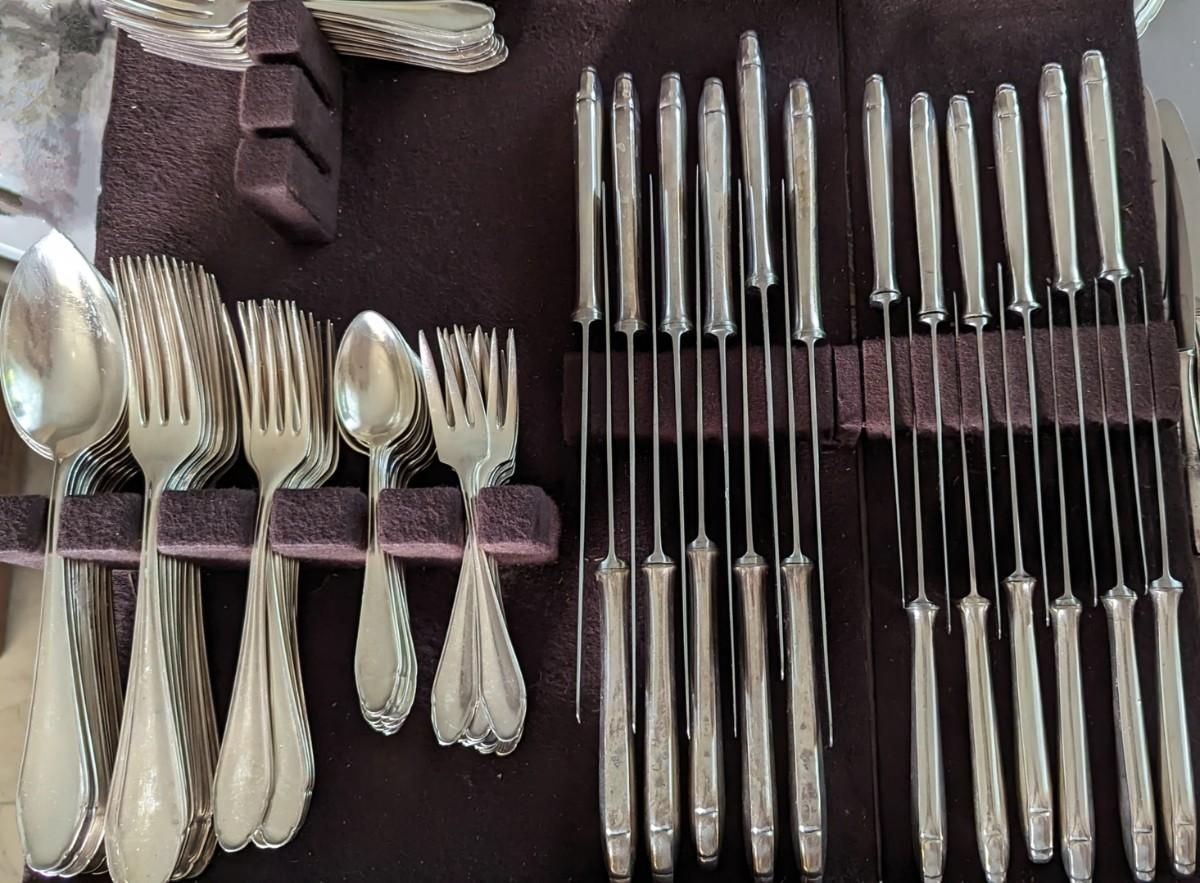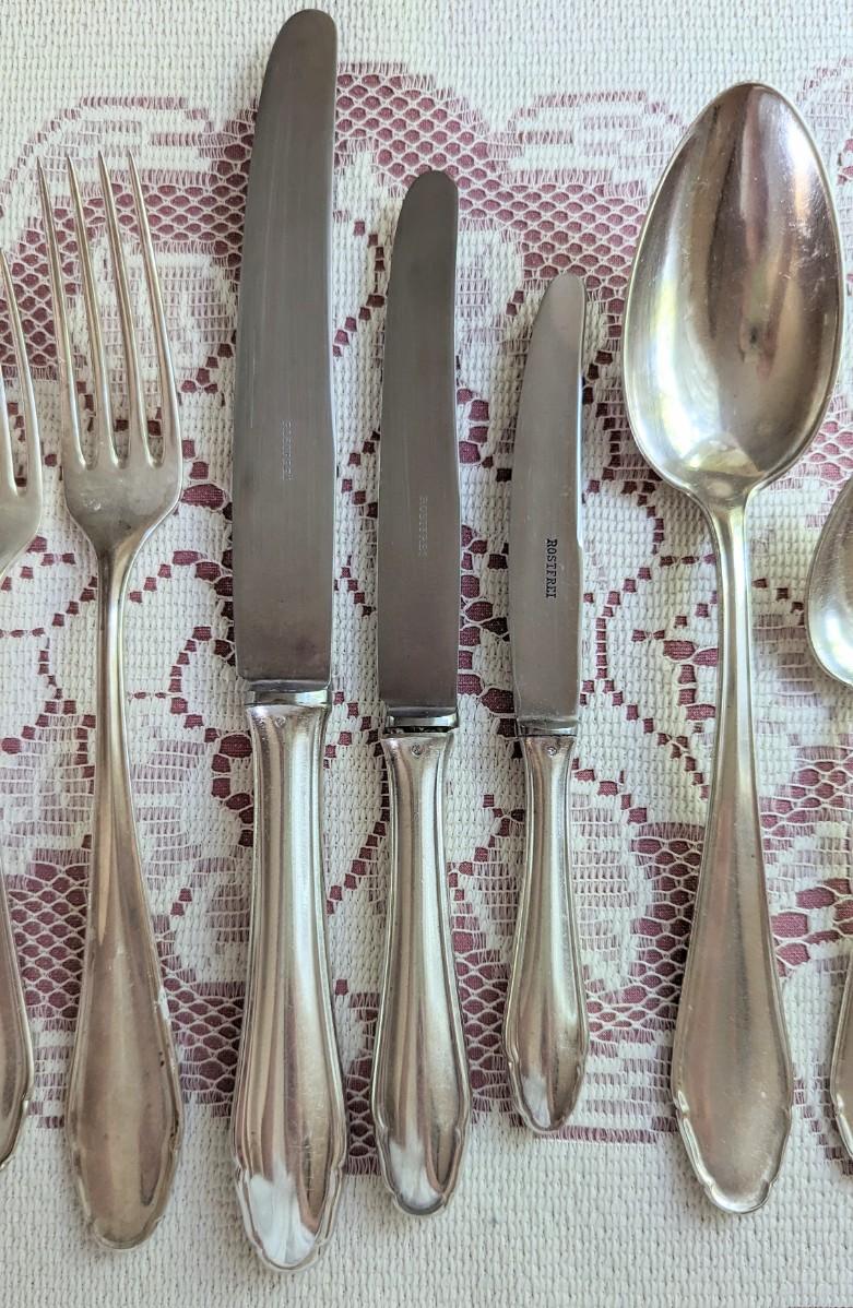 115 pc set for 12 of Elegant Art Nouveau Koch & Bergfeld 100 silverplate Rostfrei stainless steel blades and hostess completers