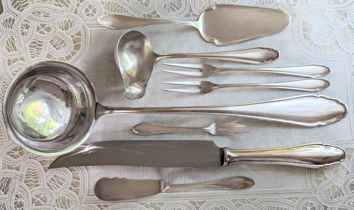 115 pc set of Elegant Art Nouveau Koch & Bergfeld 100 silverplate Rostfrei stainless steel blades and hostess completers from Germany