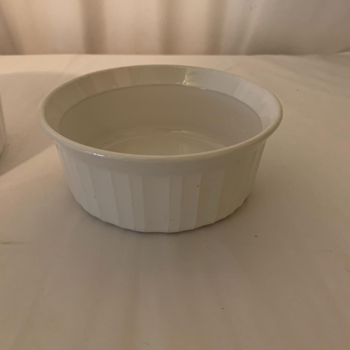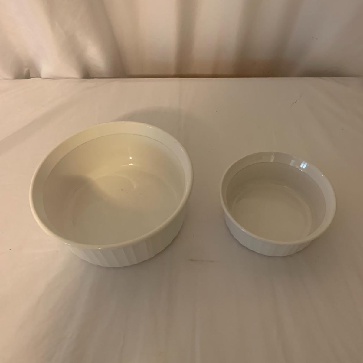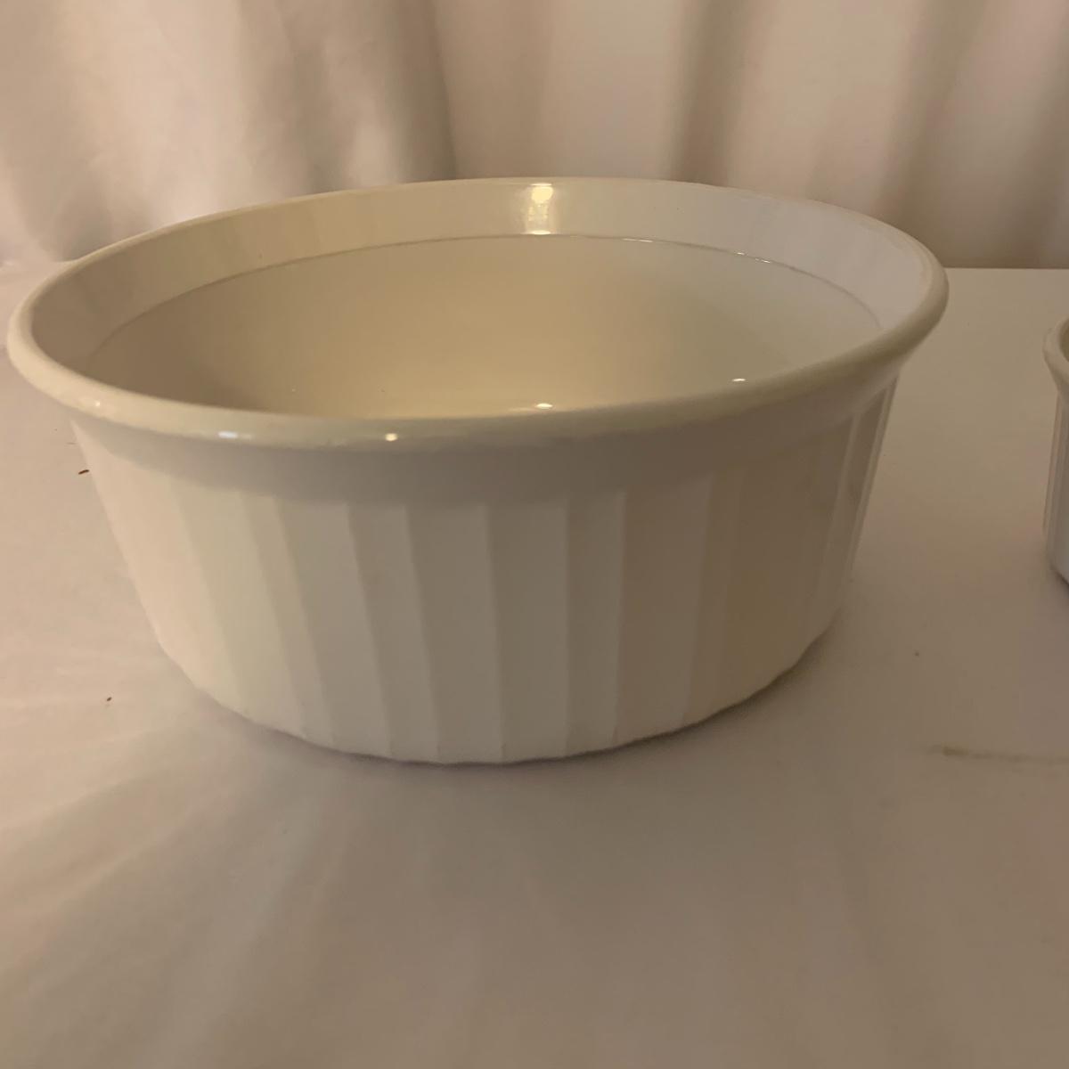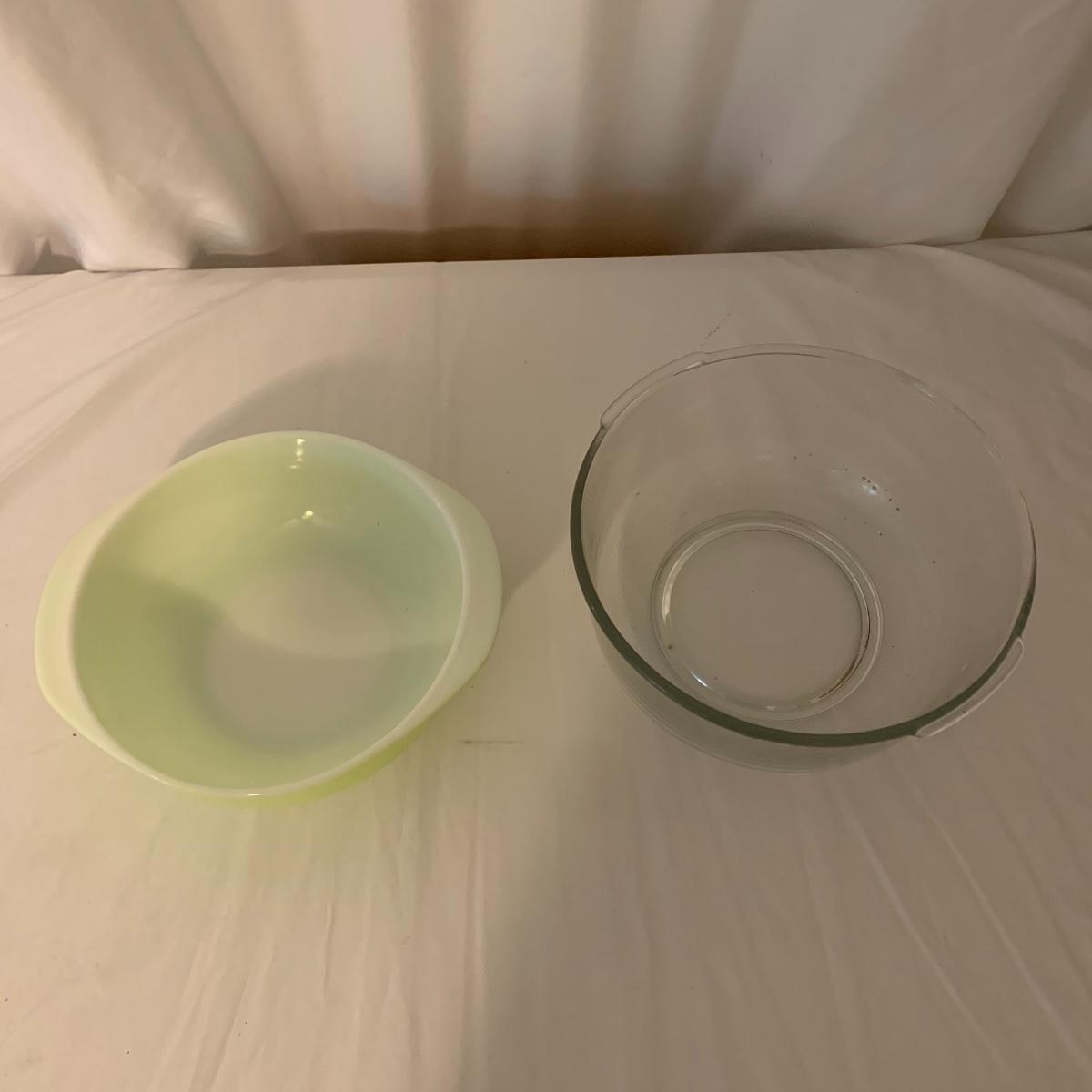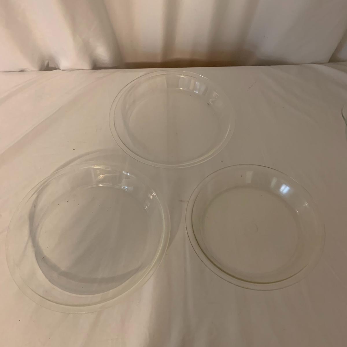 Add durable Pyrex to your kitchen collection. This lot includes three rectangle casserole dishes one of which comes with a fitted wicker basket. Also featured are two clear glass bowls and one green. Three pie bowls are included as well as two Corning Ware bowls.
