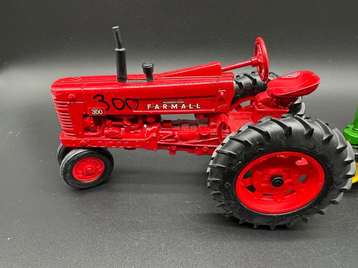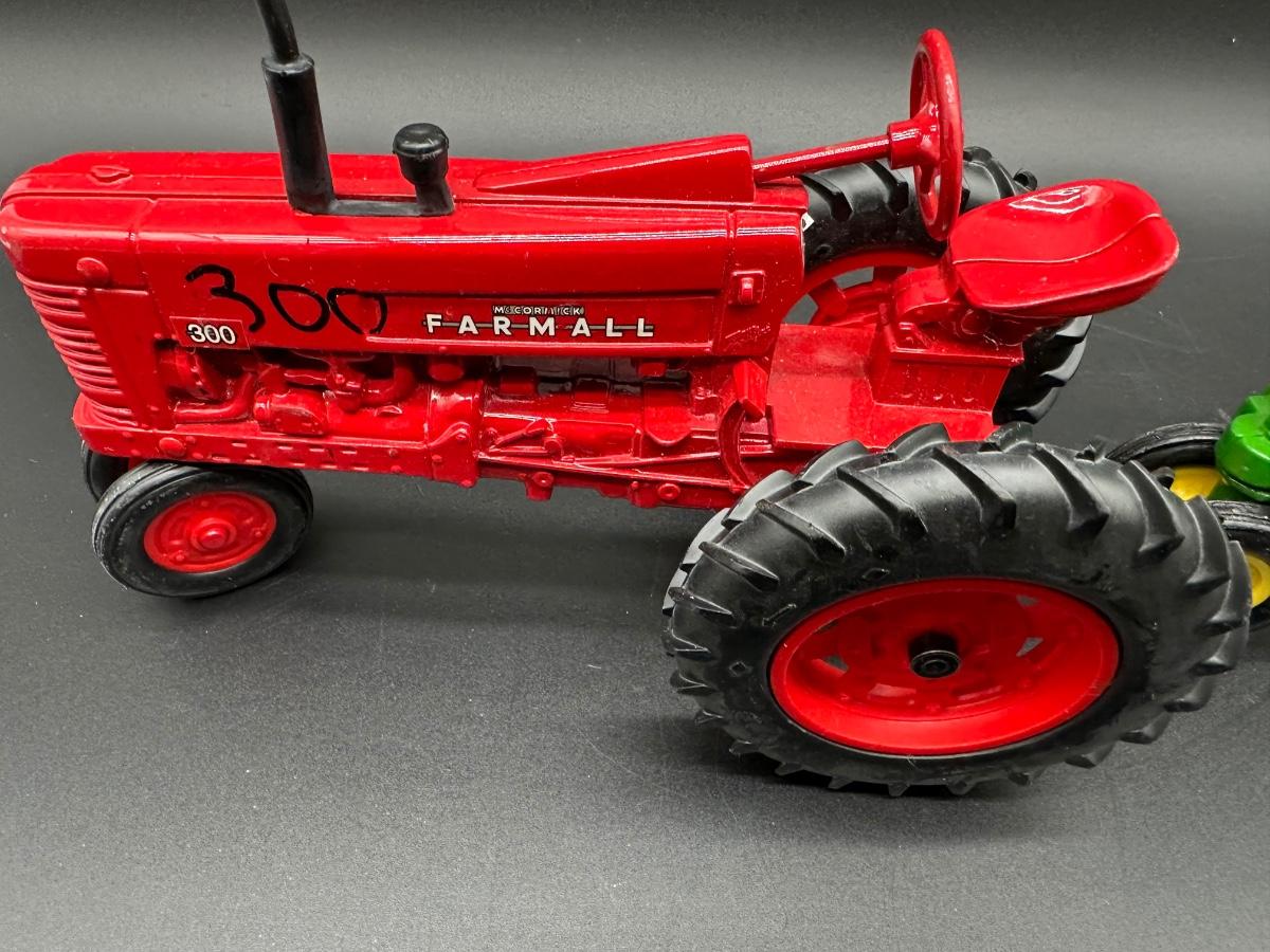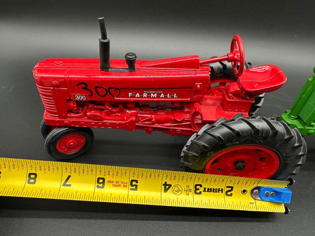 Good display condition. Minor paint wear and light handling marks. No boxes included. Tires appear intact and wheels roll freely. Farmall has “300” handwritten on hood (see photos).