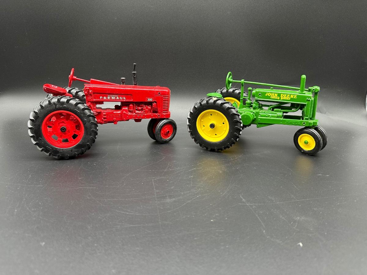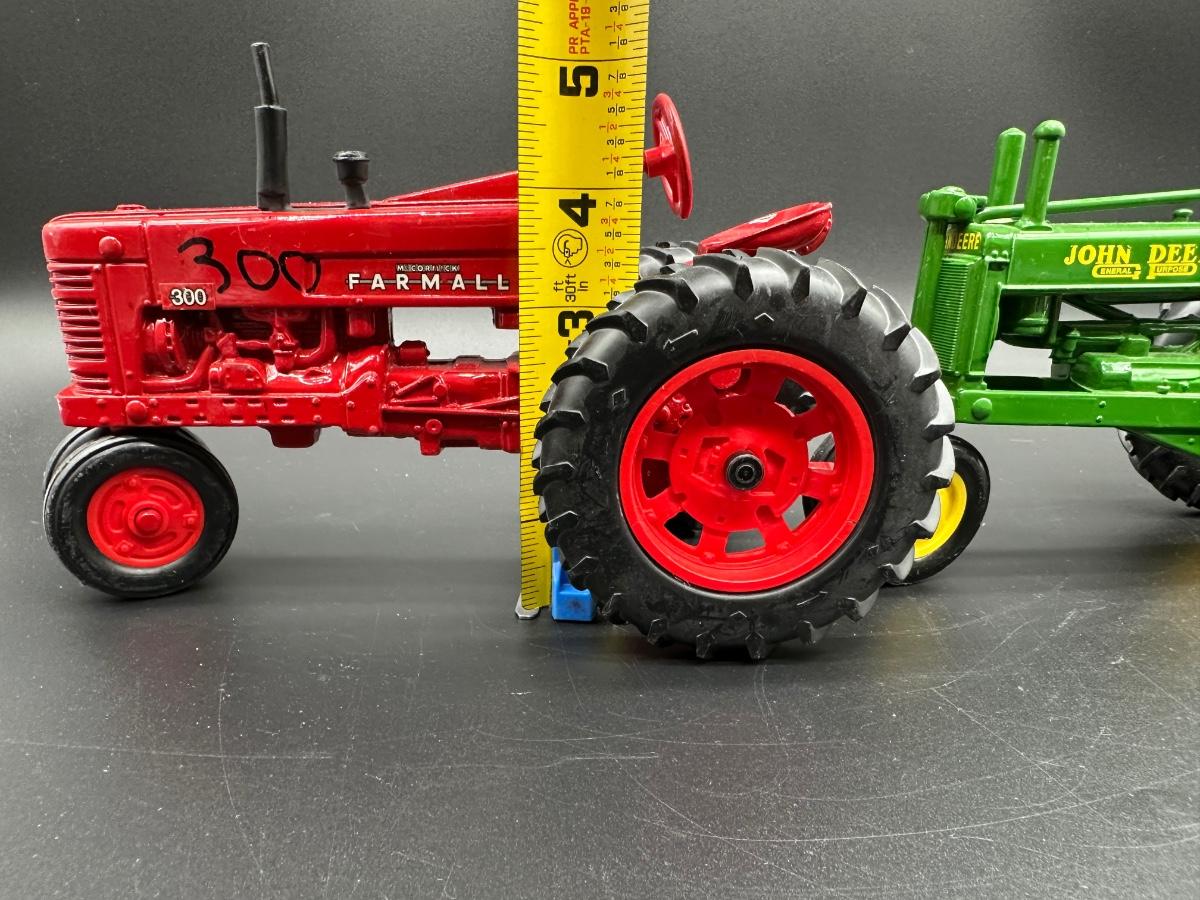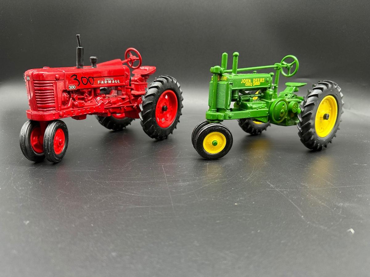 1:16 Scale Diecast Farm Tractor Models – Farmall 300 & John Deere GP – Ertl Style – Lot of 2