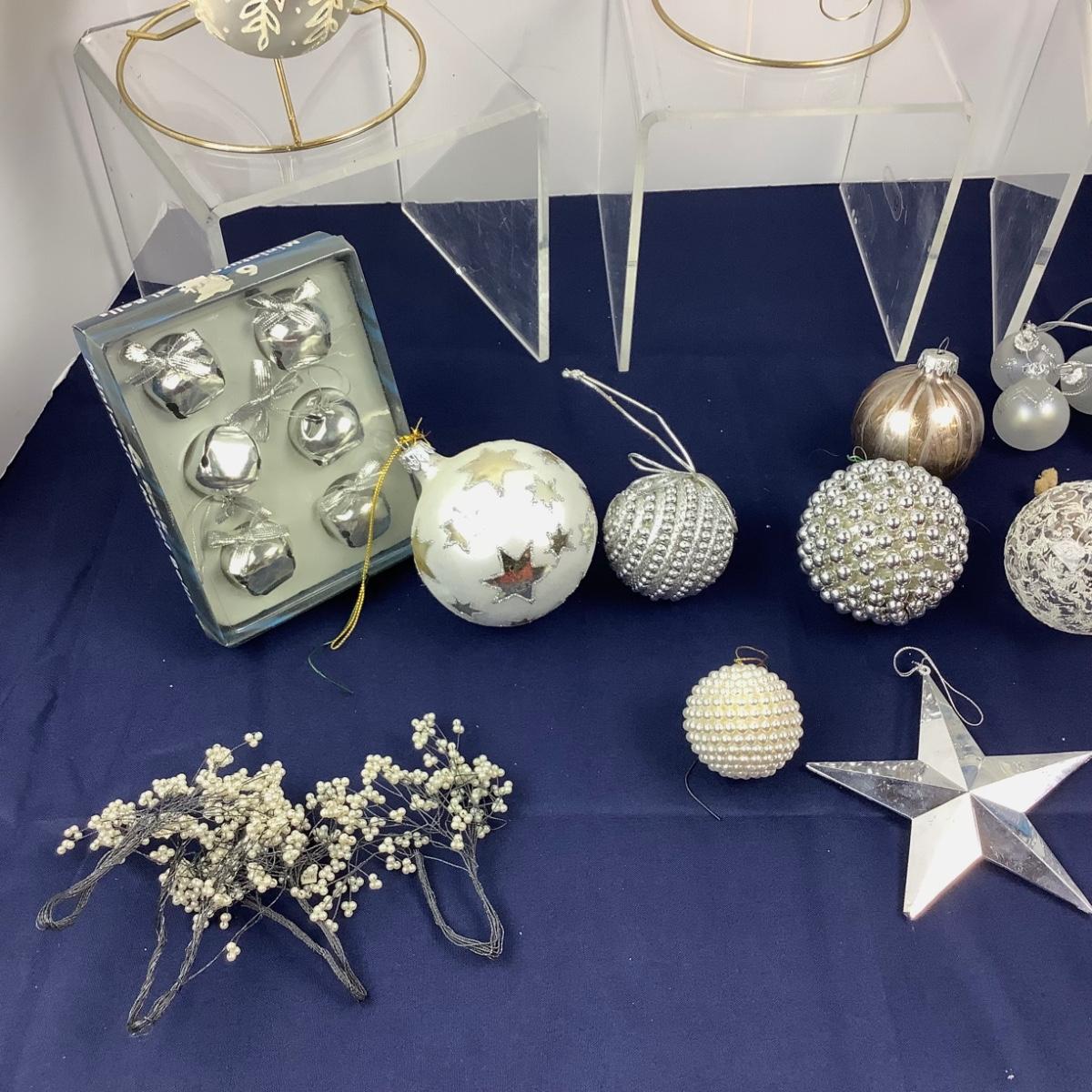 116 Silver & White Christmas Ornament Lot